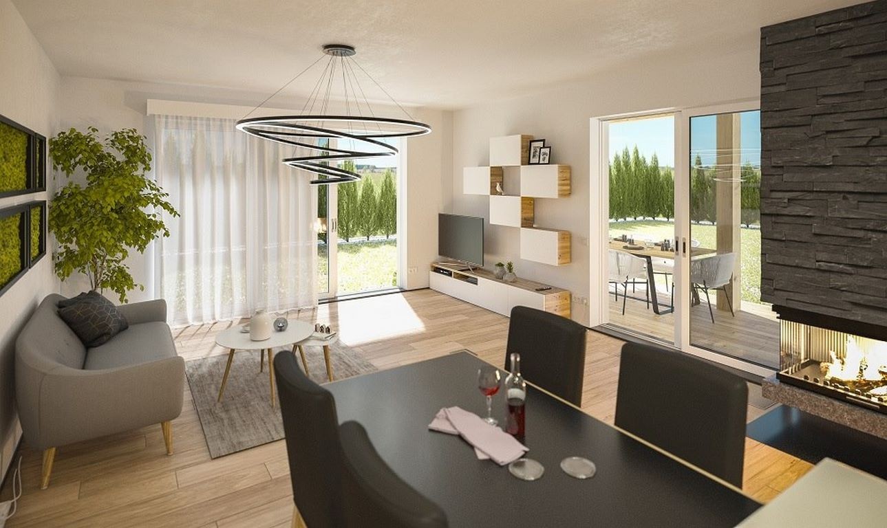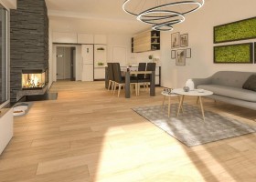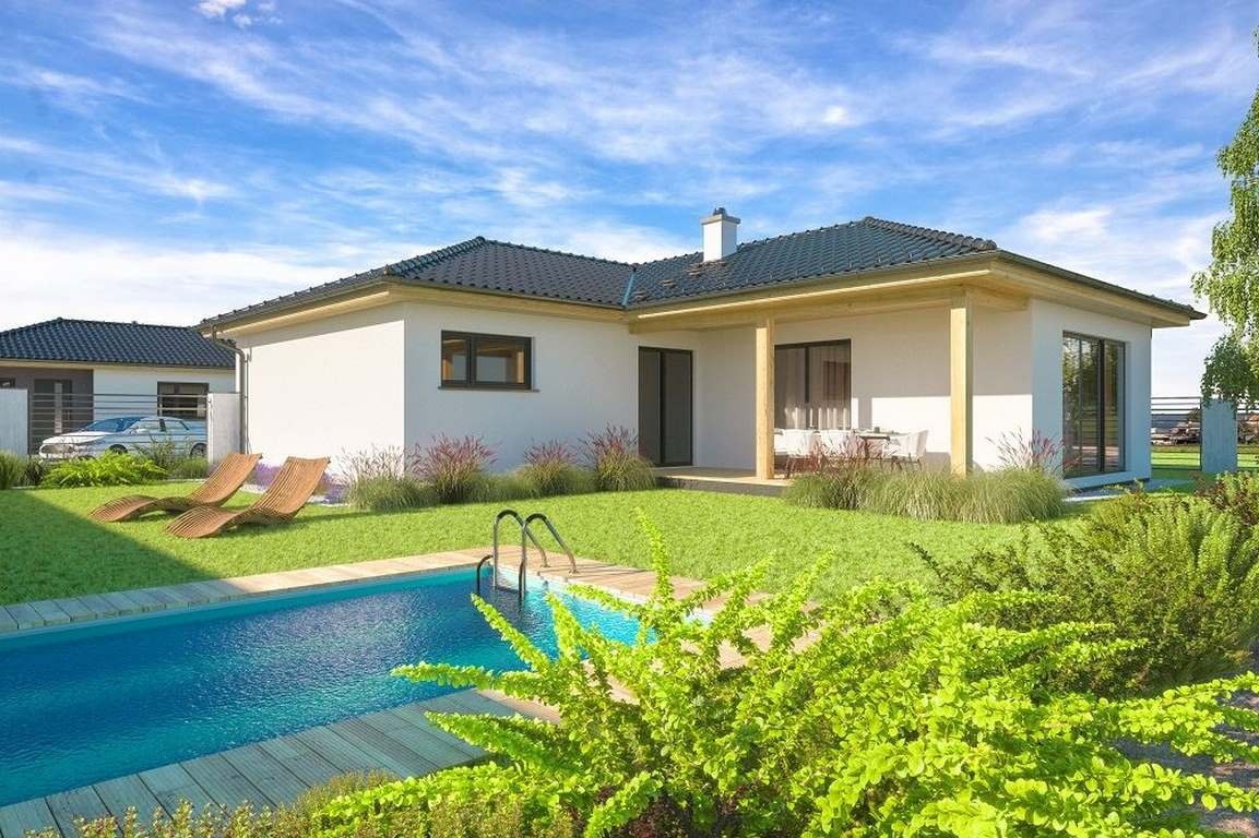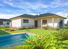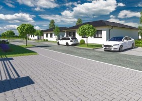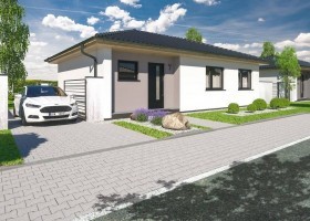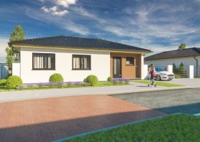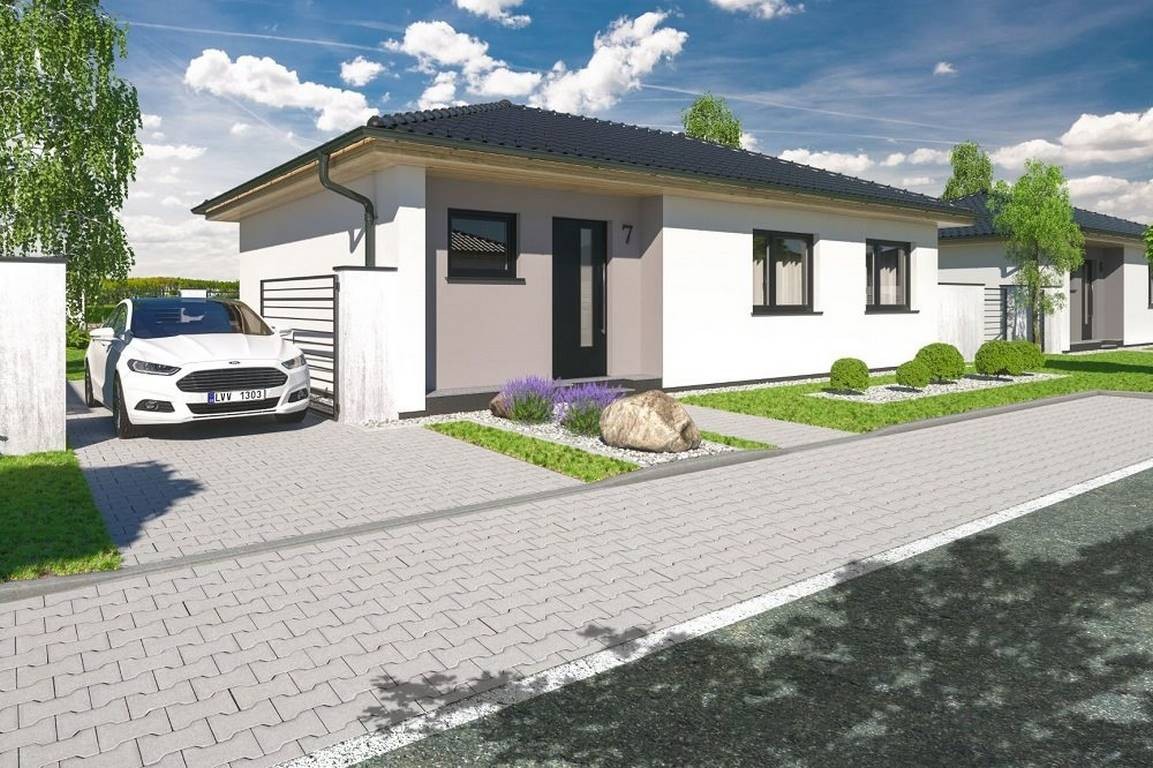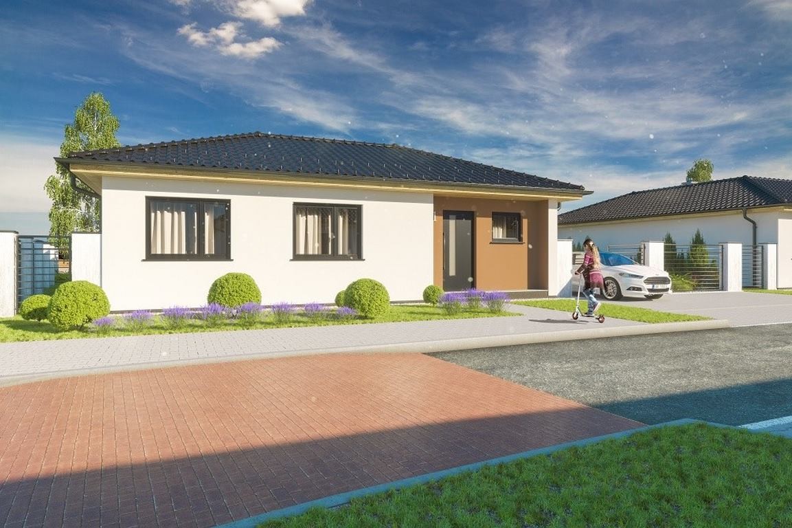 Jedná se o přízemní dům / bungalov, ideální pro čtyřčlennou rodinu s nízkými provozními náklady. Dům nabízí prosvětlený obývací pokoj s širokými francouzskými okny, komfortní kuchyň a sklad potravin. Dále disponuje třemi ložnicemi, prostornou koupelnou a technickou místností s WC a oblíbenou krytou terasu.