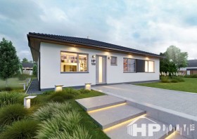Moderní bungalov HP133 o celkové vnitřní užitné ploše 133,15m2 s dispozicí 5+kk vám nabídne dostatek prostoru i pro větší rodinu. Je vhodný na středně široké pozemky od již 17,2m. Tento dům vám nabídne velký obytný prostor, dva větší pokoje, spoustu úložných prostor (spíž, technické místnosti) a díky dobře umístěnému krbu se může teplo šířit celým domem.