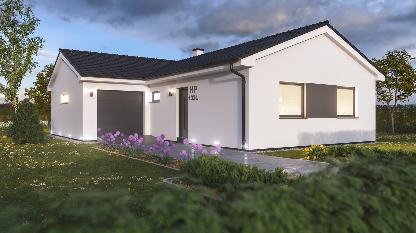 Atraktivní 4-pokojový bungalov s garáží. Tento dům nabízí prosvětlený obývací pokoj s kuchyní, jídelnou a skladem potravin, prostornou ložnici, dva dětské pokoje, koupelnu, WC a technickou místnost.