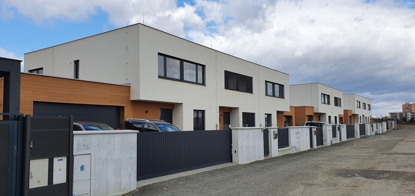 Sedm rodinných domů tvoří dva trojbloky a jeden dvojblok. Domy mají dispozici 5+kk+garáž, užitná plocha 160 - 200 m2.