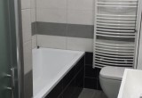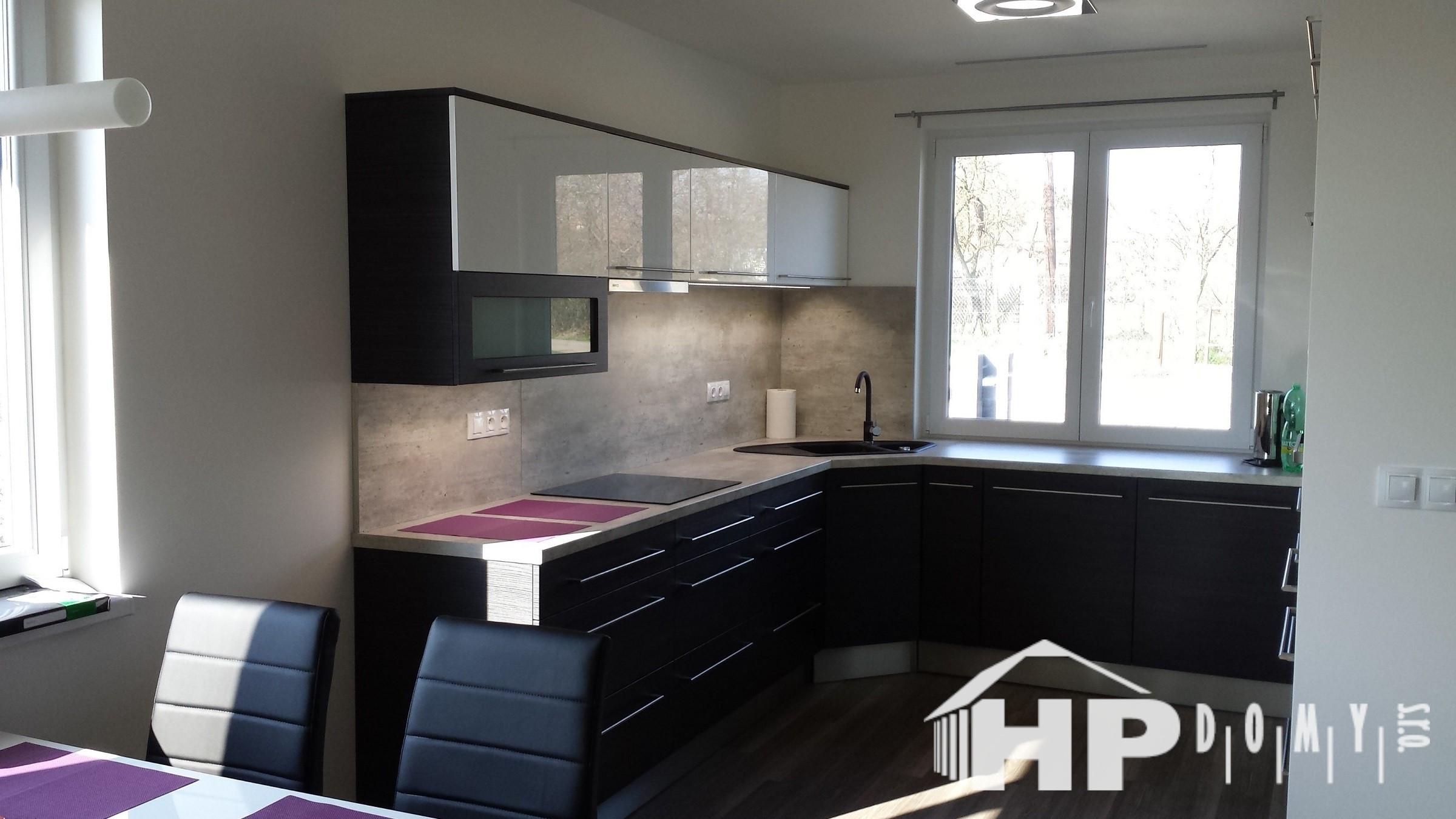 Užitná plocha 104m2 a přistavěná garáž o velikosti cca 21m2. Dům prošel klientskými změnami a byla upravena i okna do ulice oproti původnímu návrhu. Moderně pojatý interiér i exteriér dělají z této stavby komfortní bydlení za přijatelnou cenu. Podlahy jsou v celém domě vinylové a v obývacím pokoji je krbová vložka, která má zadní plnění z technické místnosti, ve které je dále pračka se sušičkou.