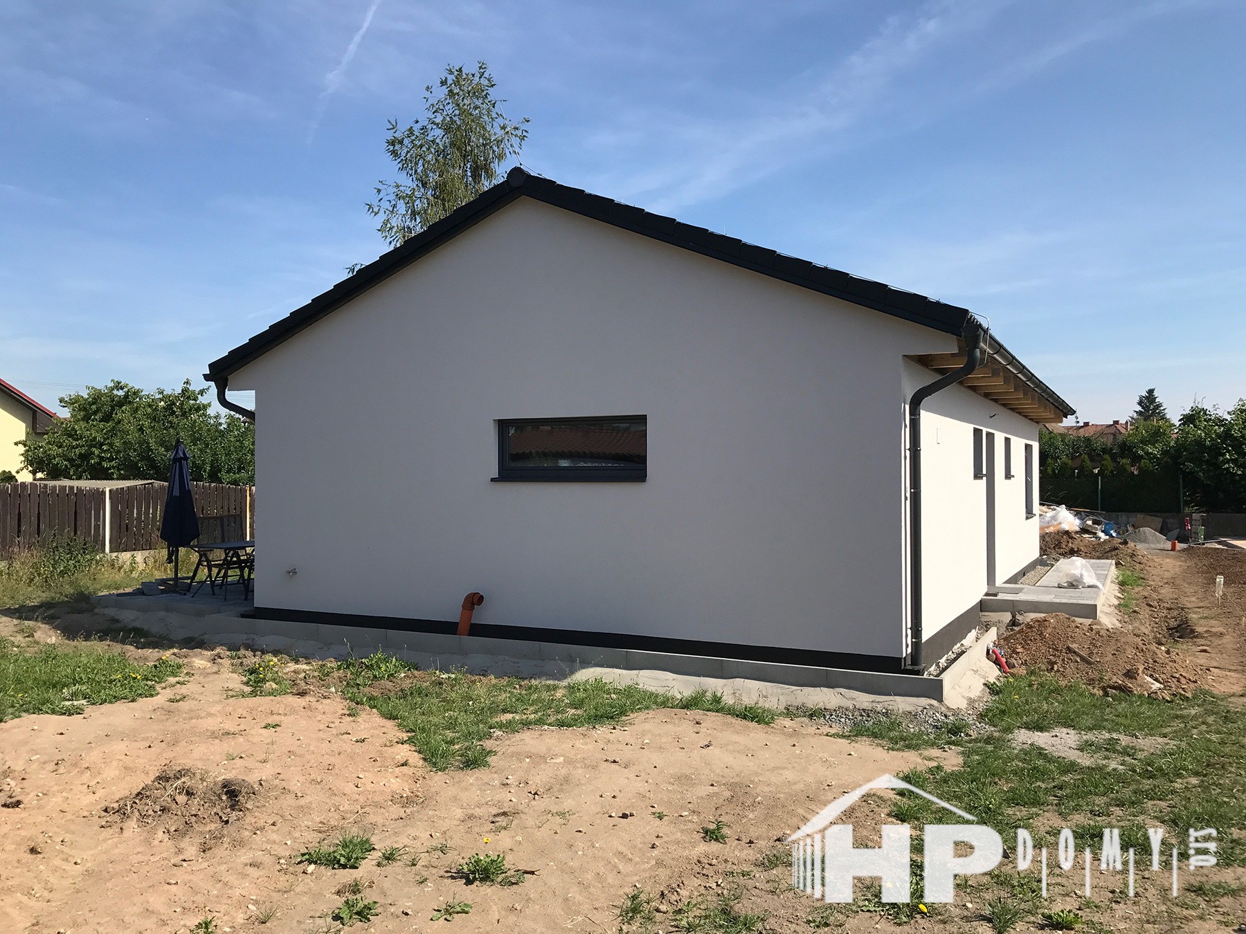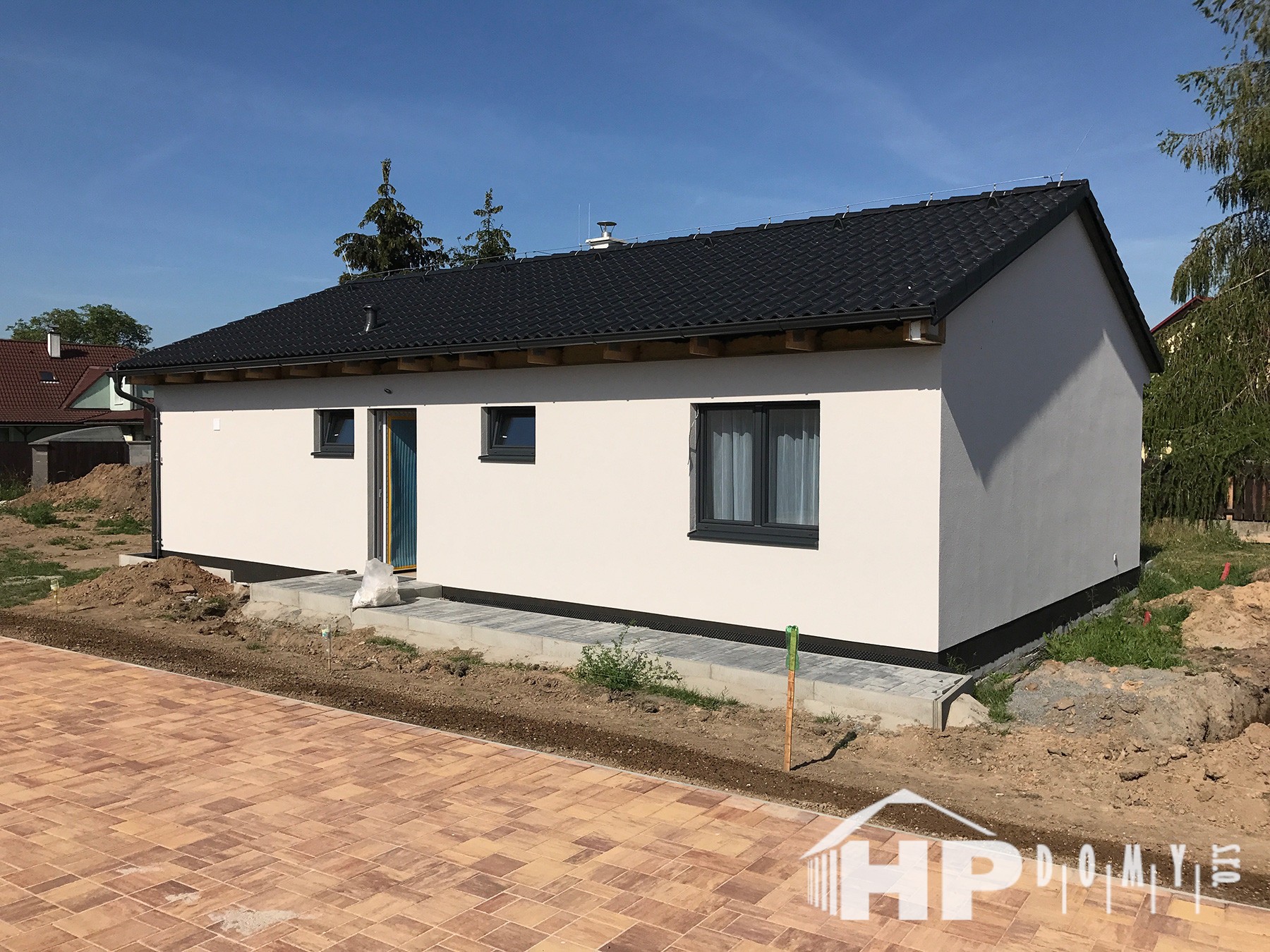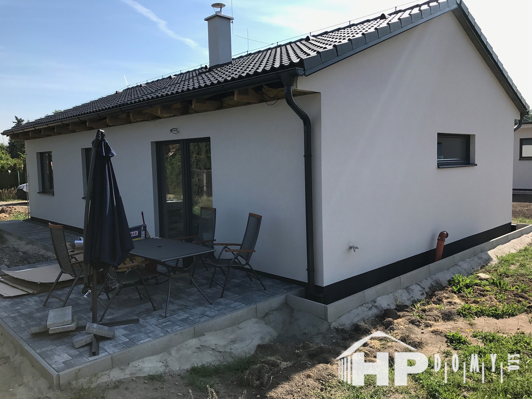 Dokončená realizace našeho oblíbeného typového bungalovu HP90 v obci Benátky nad Jizerou. Difuzně uzavřená dřevostavba s dispozicí 4+kk a užitnou plochou 90 m2 je ideální pro 4člennou rodinu. Propracovaná studie rodinného domu HP90 zaručuje vysokou kvalitu provedení spolu s ekonomicky přijatelným řešením – díky tomu je dům cenově dostupný opravdu pro každého. Dům nabízí prostorný obývací pokoj s kuchyňským koutem a spíží, kde je použito podlahové vytápění; ložnici, 2 dětské pokoje, prostornou koupelnu s vanou a sprchovým koutem, komfortní zádveří a technickou místnost se samostatným WC. Velké francouzské okno v obývacím pokoji zajistí dostatečné množství světla a pohodlný vstup na zahradu.