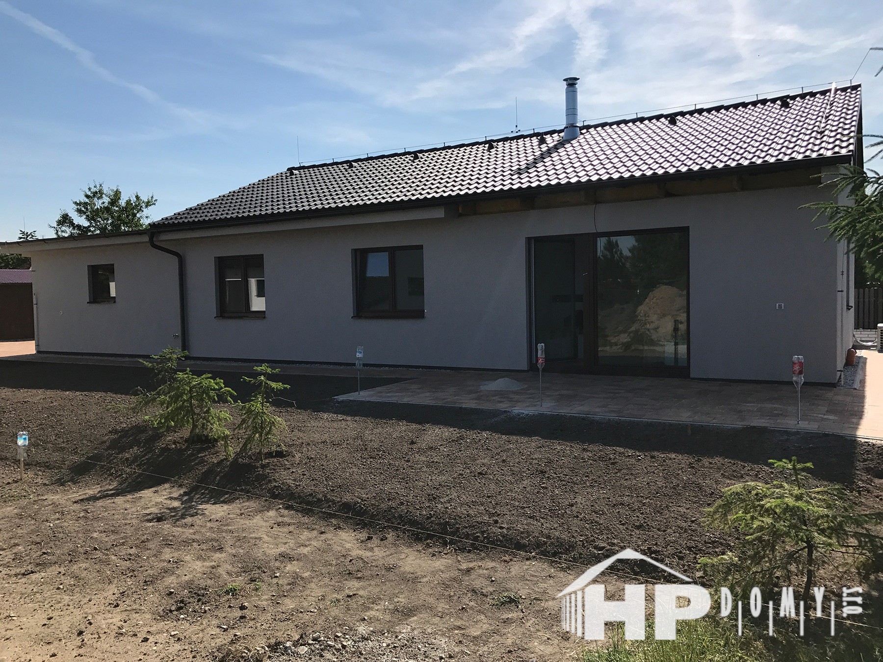 Dokončená realizace našeho oblíbeného typového bungalovu HP90 v obci Benátky nad Jizerou. Difuzně uzavřená dřevostavba s dispozicí 4+kk a užitnou plochou 90 m2 je ideální pro 4člennou rodinu. Propracovaná studie rodinného domu HP90 zaručuje vysokou kvalitu provedení spolu s ekonomicky přijatelným řešením – díky tomu je dům cenově dostupný opravdu pro každého. Dům nabízí prostorný obývací pokoj s kuchyňským koutem a spíží, kde je použito podlahové vytápění; ložnici, 2 dětské pokoje, prostornou koupelnu s vanou a sprchovým koutem, komfortní zádveří a technickou místnost se samostatným WC. Velké francouzské okno v obývacím pokoji zajistí dostatečné množství světla a pohodlný vstup na zahradu.