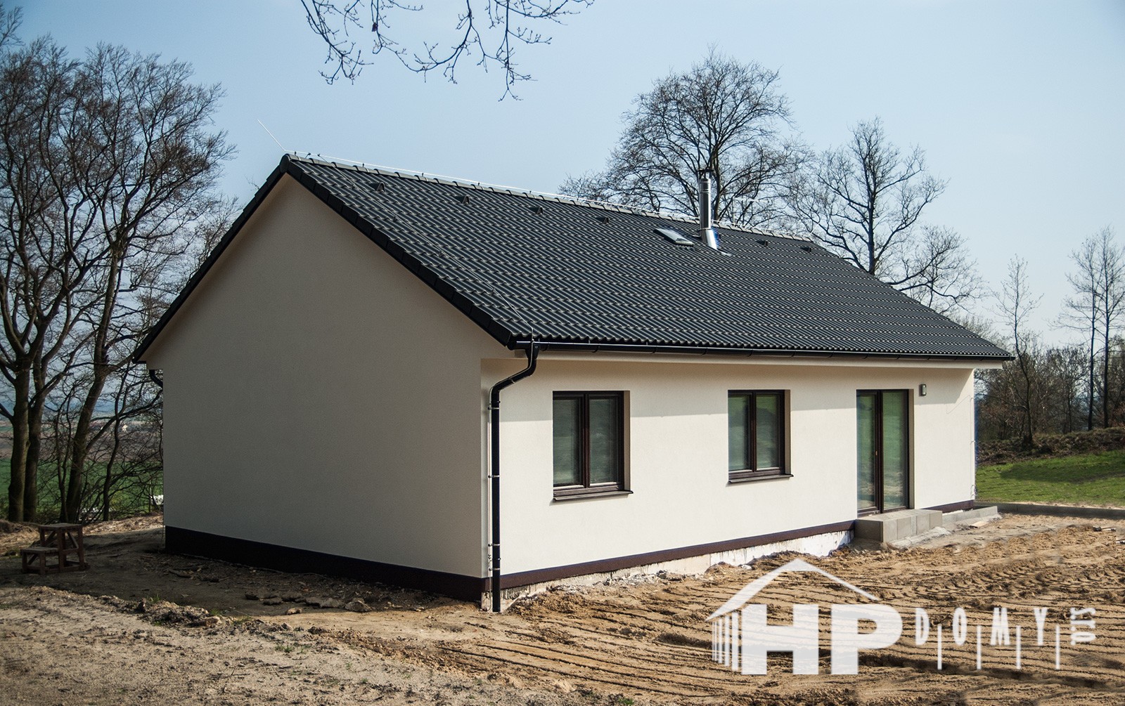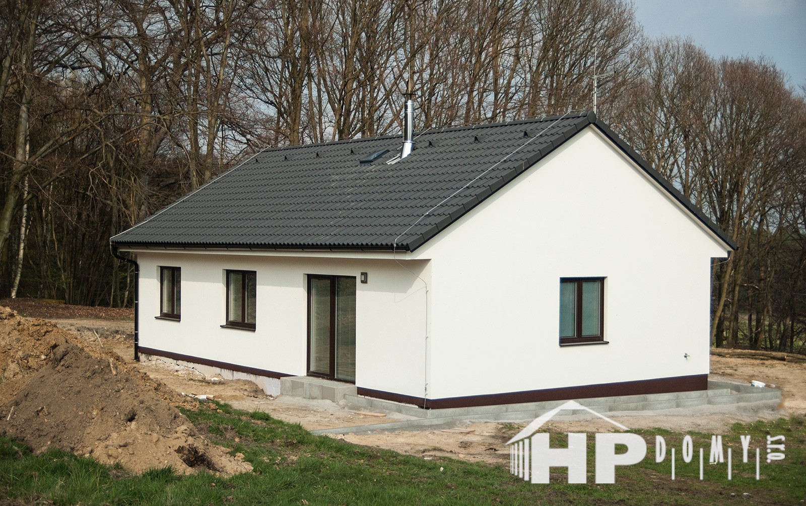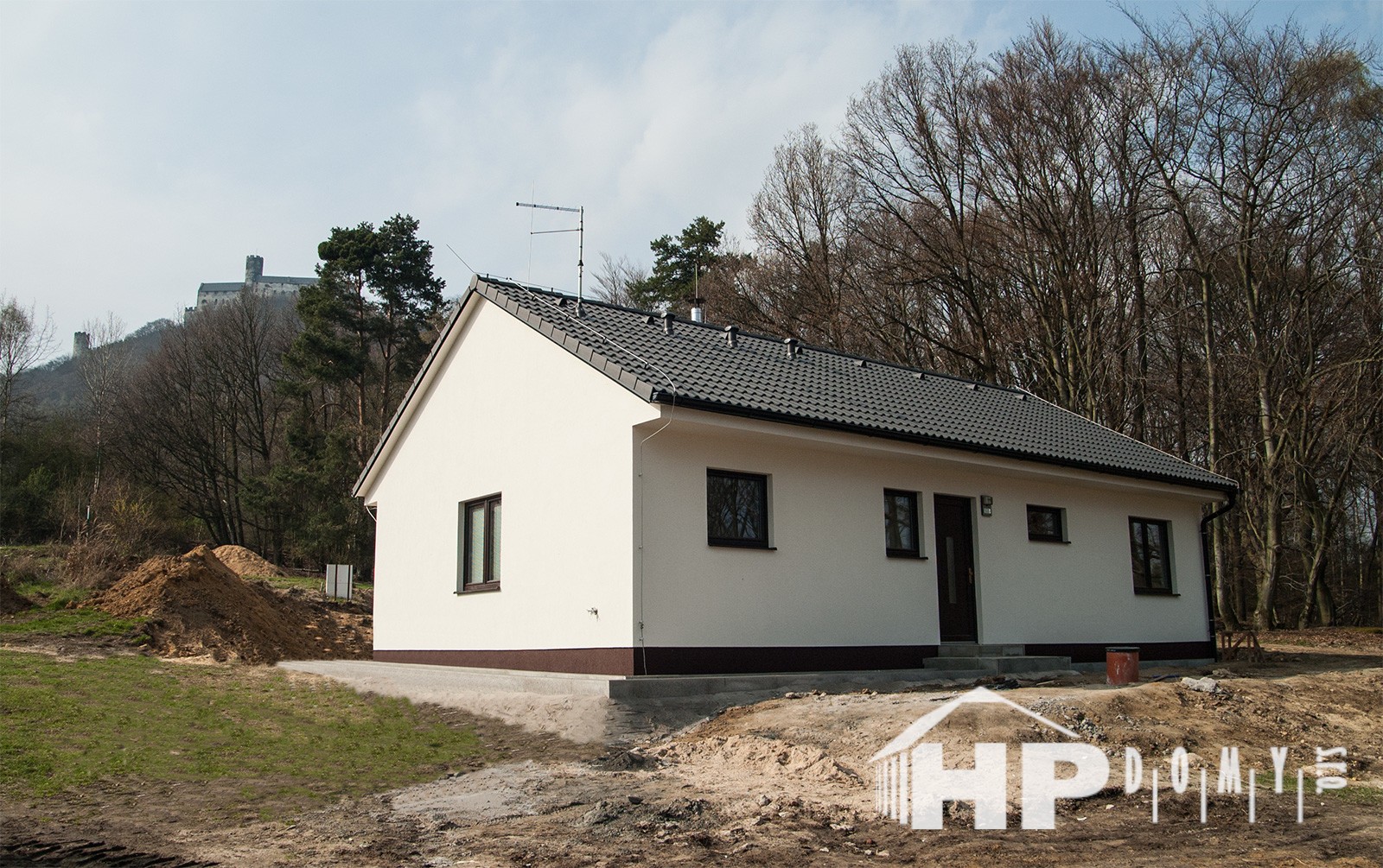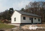 Dokončená realizace našeho oblíbeného typového bungalovu HP90 v lokalitě Bezděz. Difuzně uzavřená dřevostavba s dispozicí 4+kk a užitnou plochou 90 m2 je ideální pro 4člennou rodinu. Propracovaná studie rodinného domu HP90 zaručuje vysokou kvalitu provedení spolu s ekonomicky přijatelným řešením – díky tomu je dům cenově dostupný opravdu pro každého. Dům nabízí prostorný obývací pokoj s kuchyňským koutem a spíží, kde je použito podlahové vytápění; ložnici, 2 dětské pokoje, prostornou koupelnu s vanou a sprchovým koutem, komfortní zádveří a technickou místnost se samostatným WC. Velké francouzské okno v obývacím pokoji zajistí dostatečné množství světla a pohodlný vstup na zahradu. Na žádost památkářů byl navýšen sklon sedlové střechy.