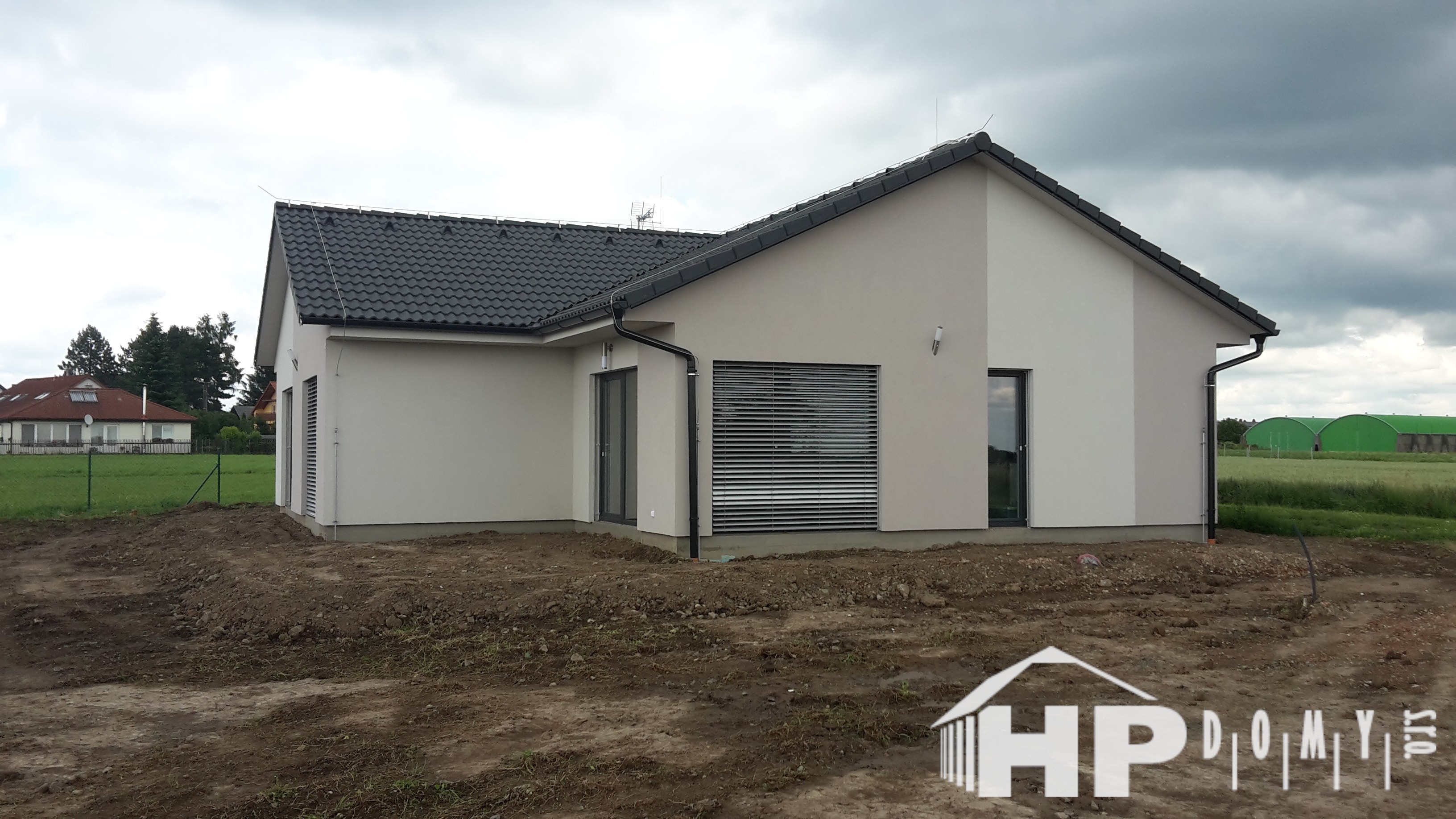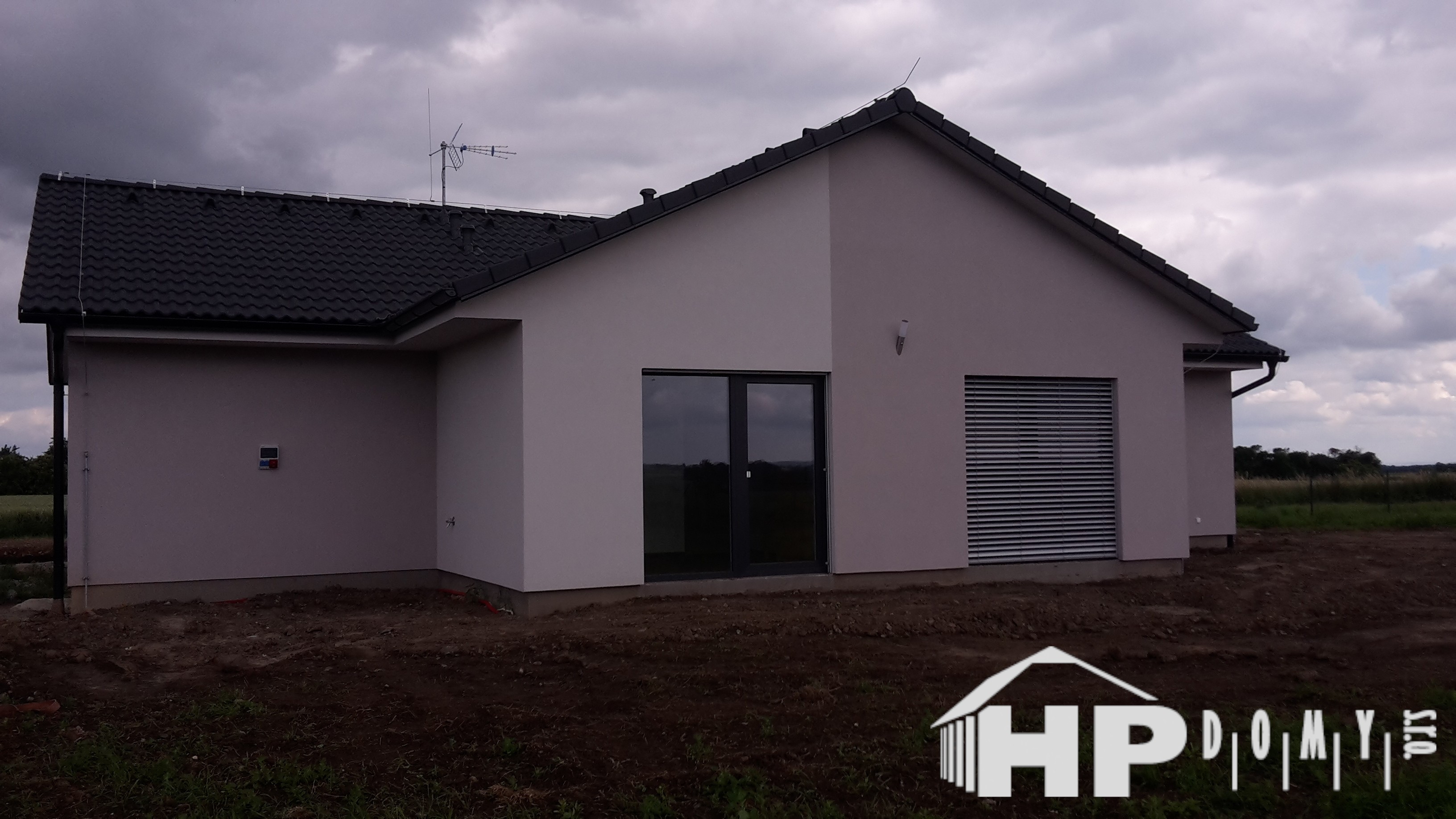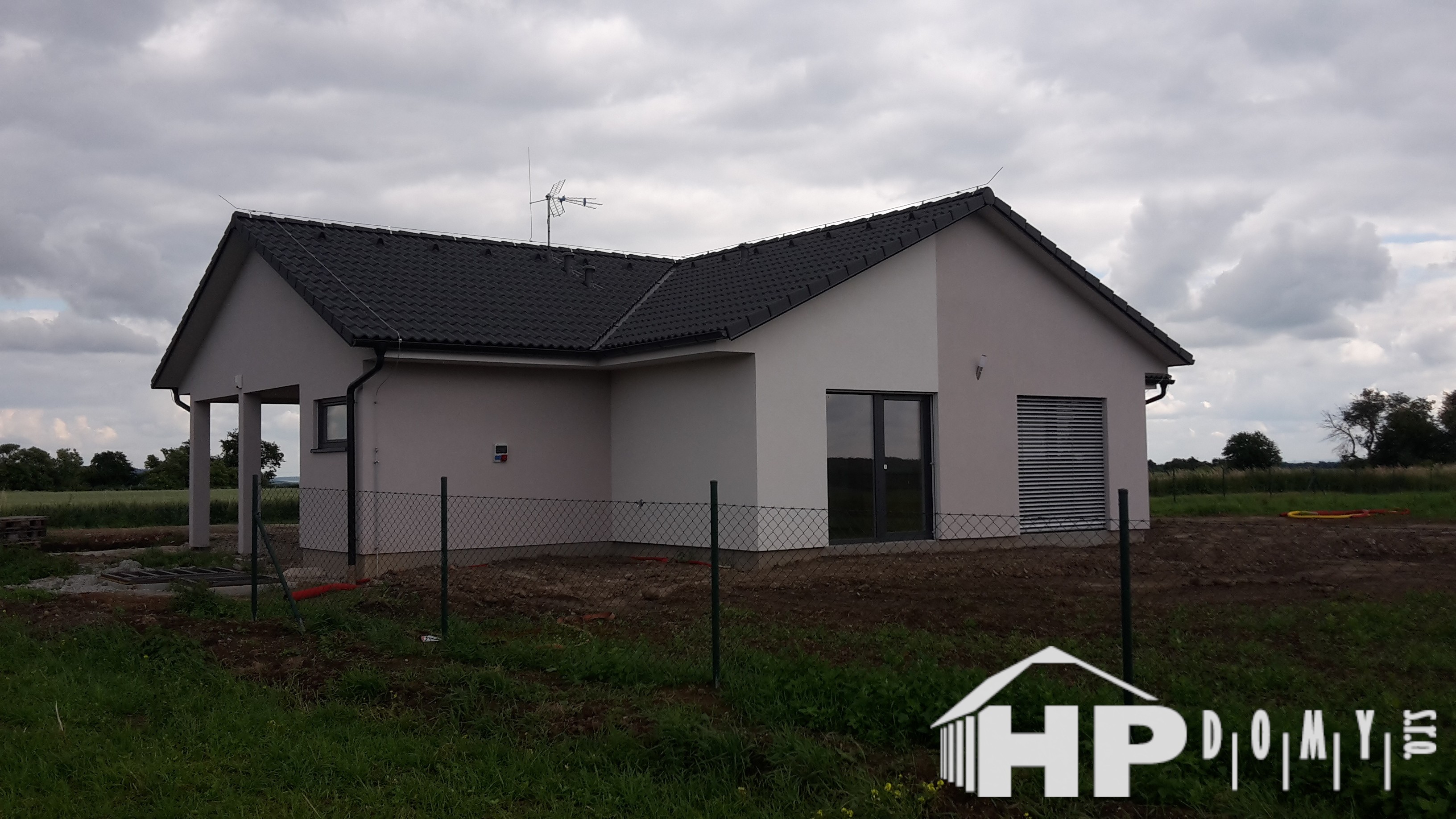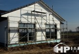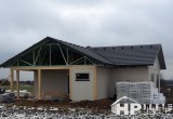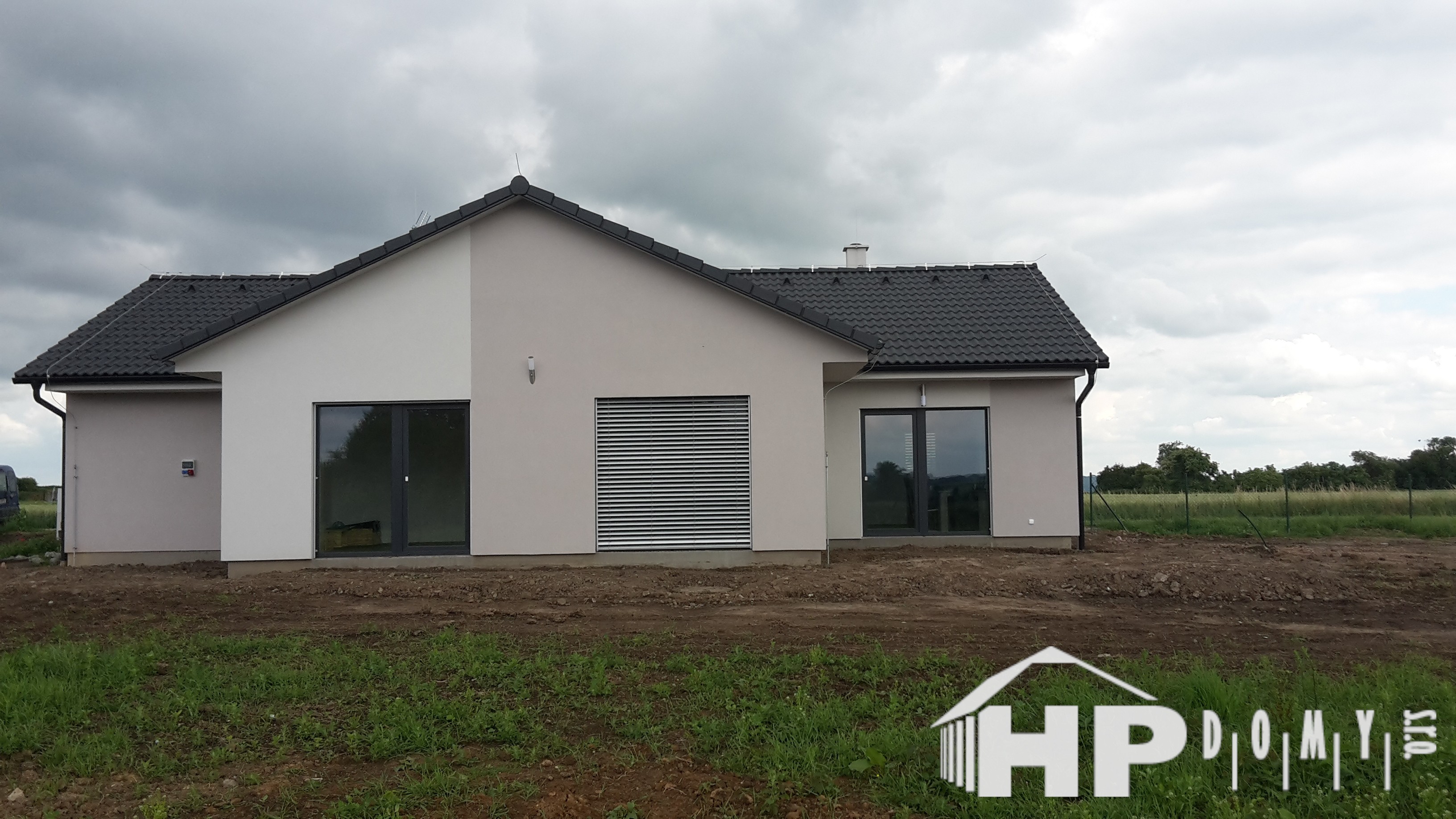 Bungalov o dispozici 5+kk o užitné ploše 130 m2 s garážovým stáním a venkovním skladem. Klienti zvolili difuzně uzavřenou dřevostavbu s teplovodním podlahovým vytápěním. Dominantu domu tvoří prostorný obývací pokoj s kuchyňským koutem o rozloze 43 m2, ze kterého lze vejít do pracovny. Dále jsou v domě dva dětské pokoje, ložnice a dvě koupelny. Velké množství francouzských oken zajišťuje příjemné oslunění domu s dostatečnými solárními zisky, doplněné elektricky ovládanými venkovními žaluziemi.
