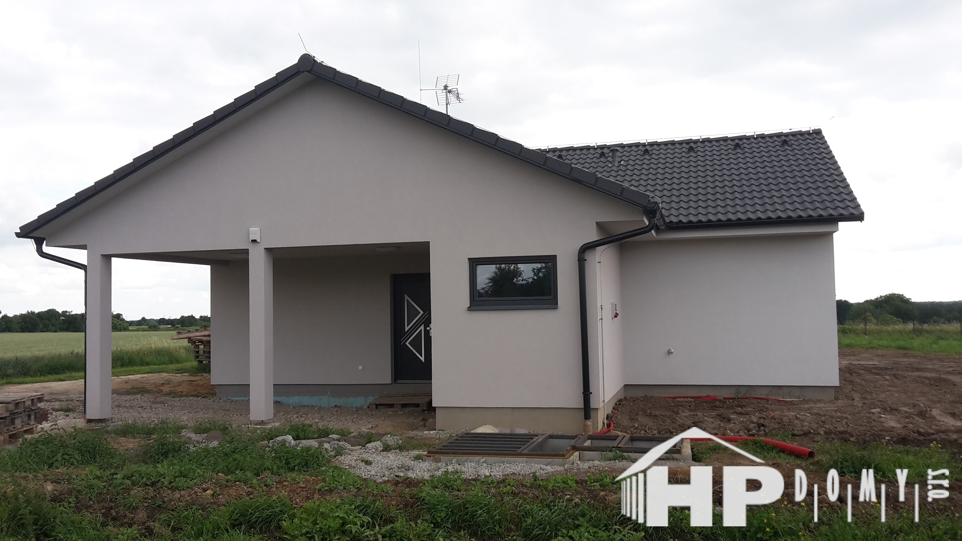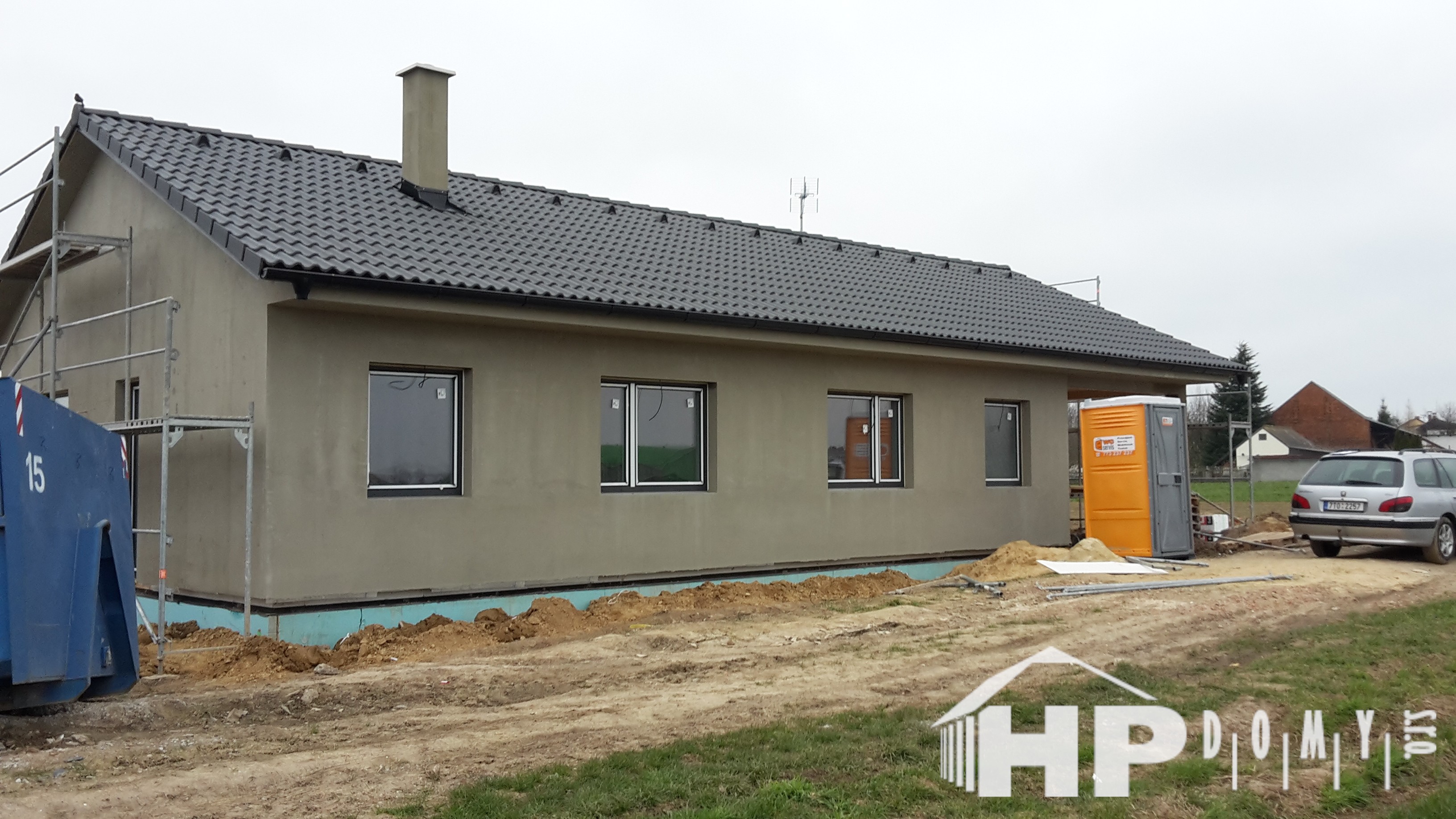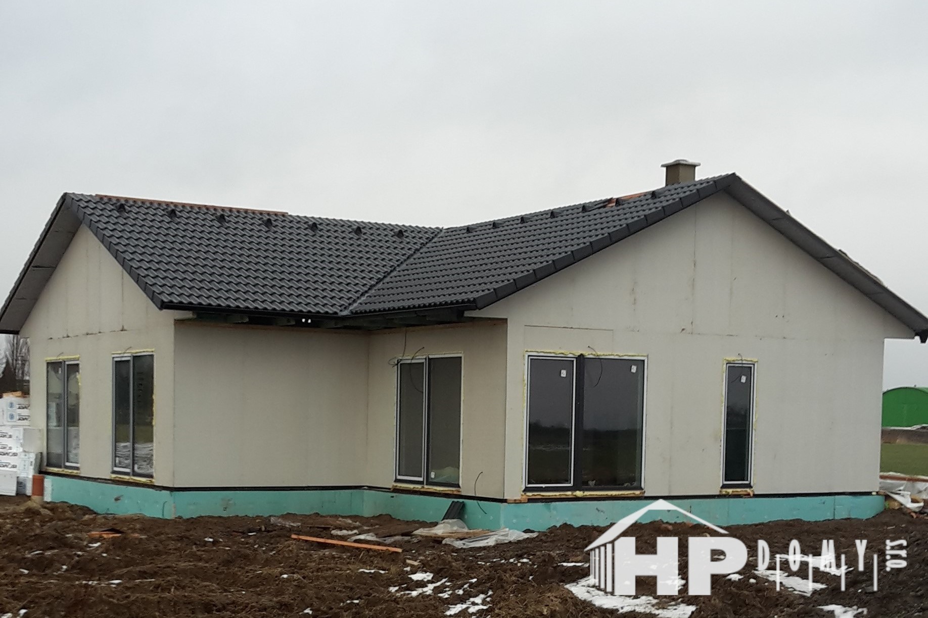 Bungalov o dispozici 5+kk o užitné ploše 130 m2 s garážovým stáním a venkovním skladem. Klienti zvolili difuzně uzavřenou dřevostavbu s teplovodním podlahovým vytápěním. Dominantu domu tvoří prostorný obývací pokoj s kuchyňským koutem o rozloze 43 m2, ze kterého lze vejít do pracovny. Dále jsou v domě dva dětské pokoje, ložnice a dvě koupelny. Velké množství francouzských oken zajišťuje příjemné oslunění domu s dostatečnými solárními zisky, doplněné elektricky ovládanými venkovními žaluziemi.