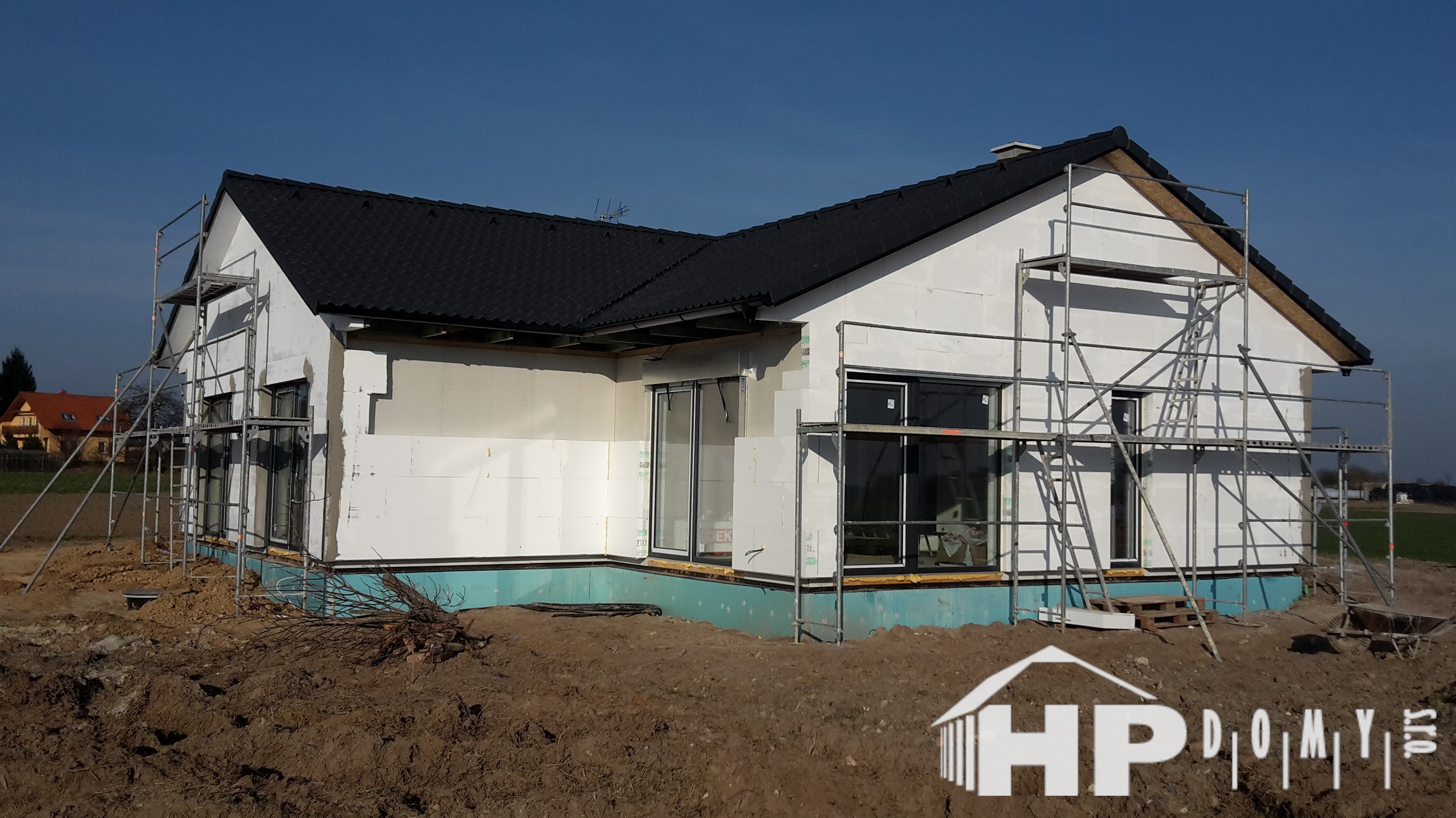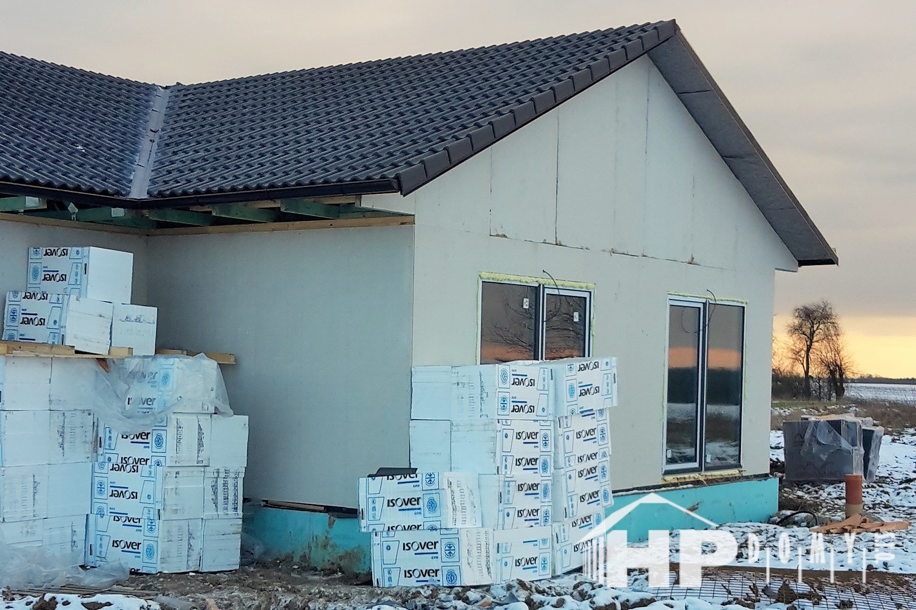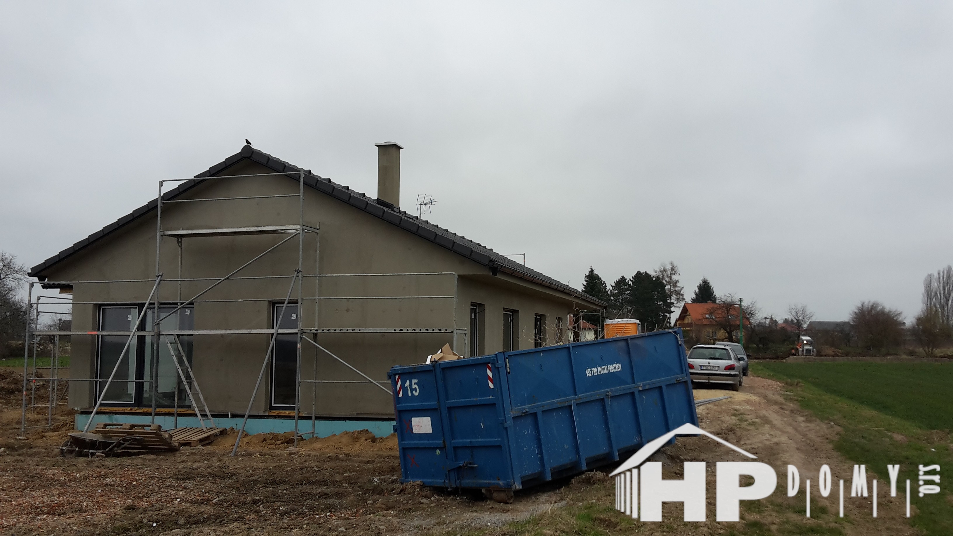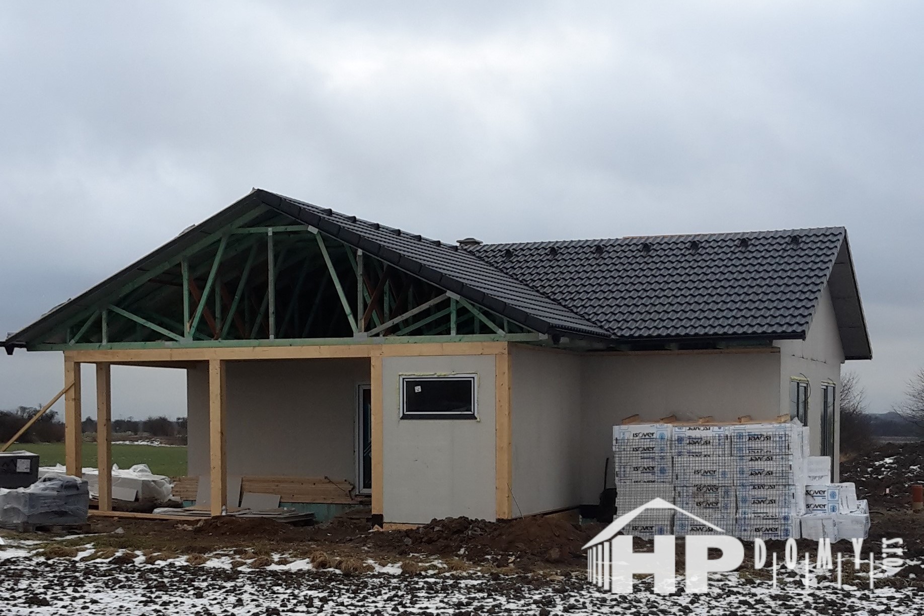 Bungalov o dispozici 5+kk o užitné ploše 130 m2 s garážovým stáním a venkovním skladem. Klienti zvolili difuzně uzavřenou dřevostavbu s teplovodním podlahovým vytápěním. Dominantu domu tvoří prostorný obývací pokoj s kuchyňským koutem o rozloze 43 m2, ze kterého lze vejít do pracovny. Dále jsou v domě dva dětské pokoje, ložnice a dvě koupelny. Velké množství francouzských oken zajišťuje příjemné oslunění domu s dostatečnými solárními zisky, doplněné elektricky ovládanými venkovními žaluziemi.