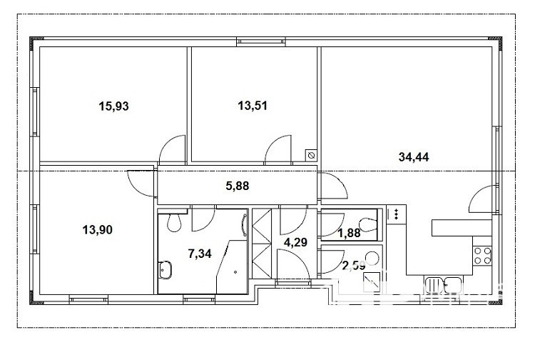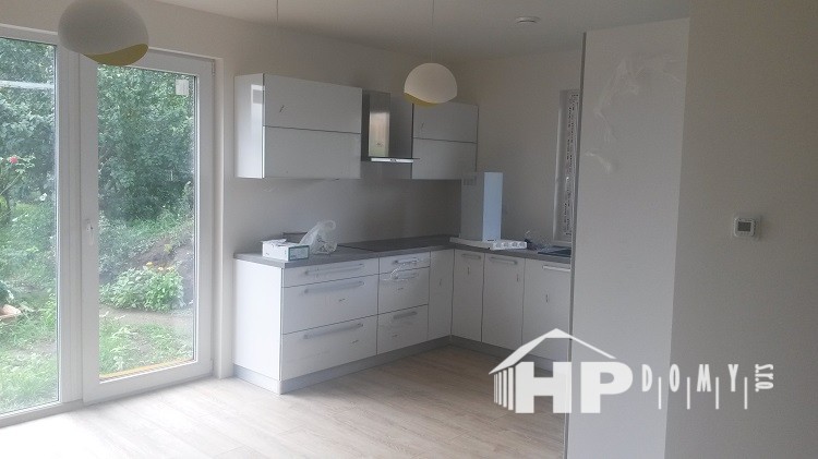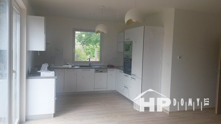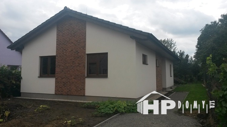 Rodinný dům 4+kk o vnitřní užitné ploše 100m2 v obci Čehovice u Prostějova. Tento dům jsme realizovali na úzkém pozemku a docílili jsme dispozice odpovídající požadavkům dnešního moderního bydlení. Velký obytný prostor s výstupem francouzským oknem do zahrady, 3 prostorné pokoje (14 až 16m2), technická místnost, samostatné WC, koupelna a zádveří s možností umístění velké vestavné skříně. Tmavá střešní krytina pálená taška, okna v dekoru ořech, světlá fasádní omítka, cihlový obklad fasády tvoří velice příjemný celek.