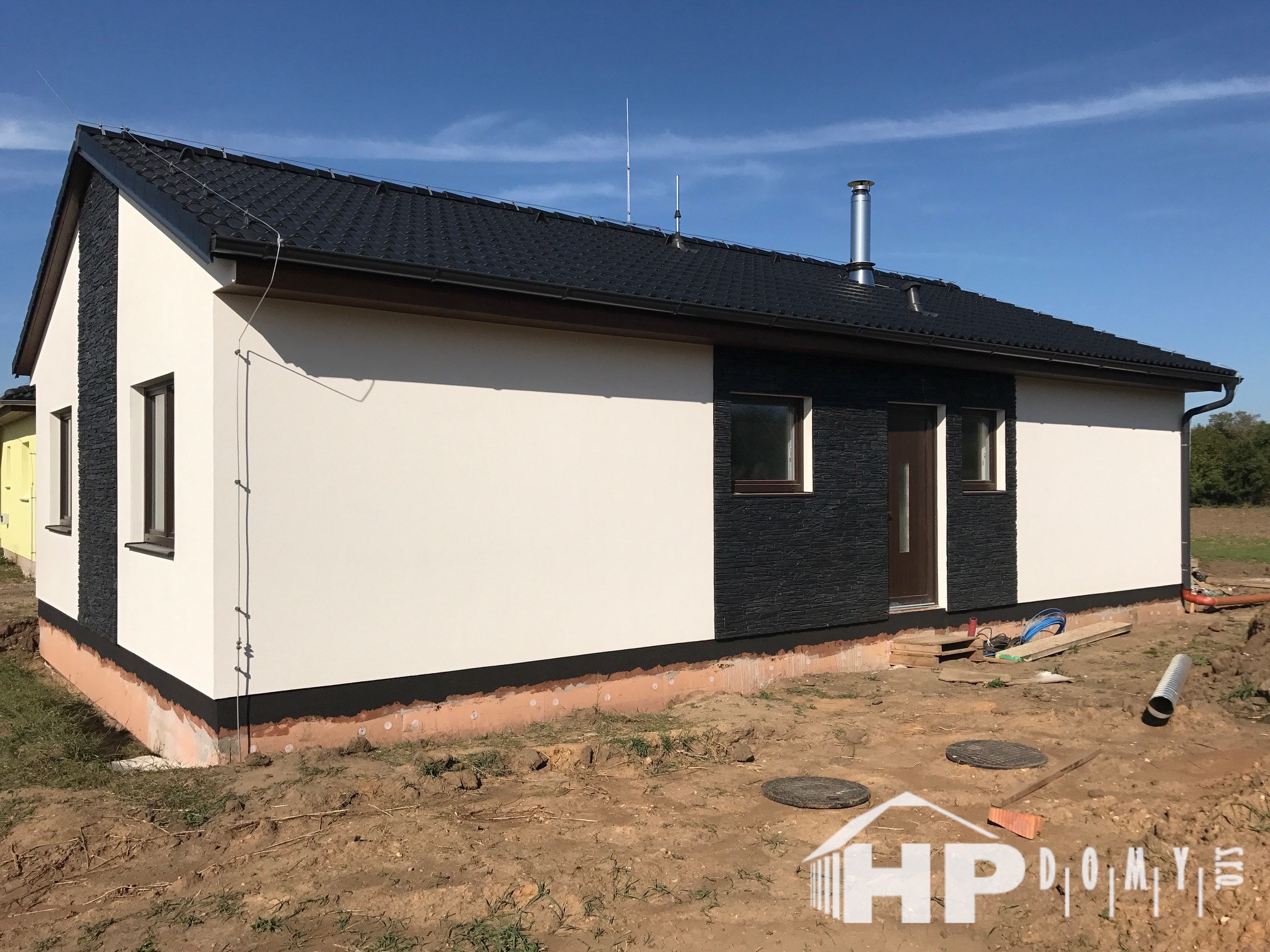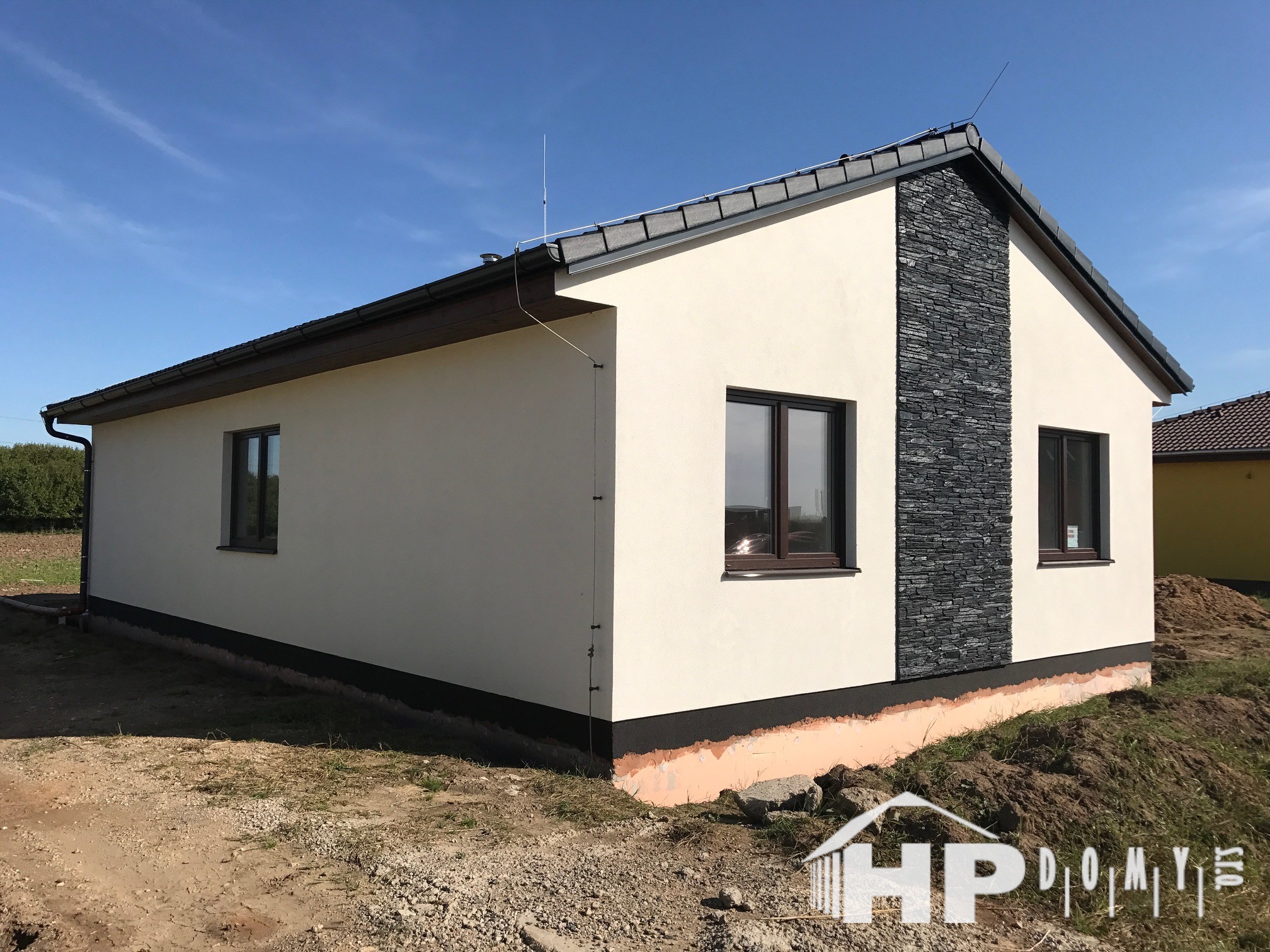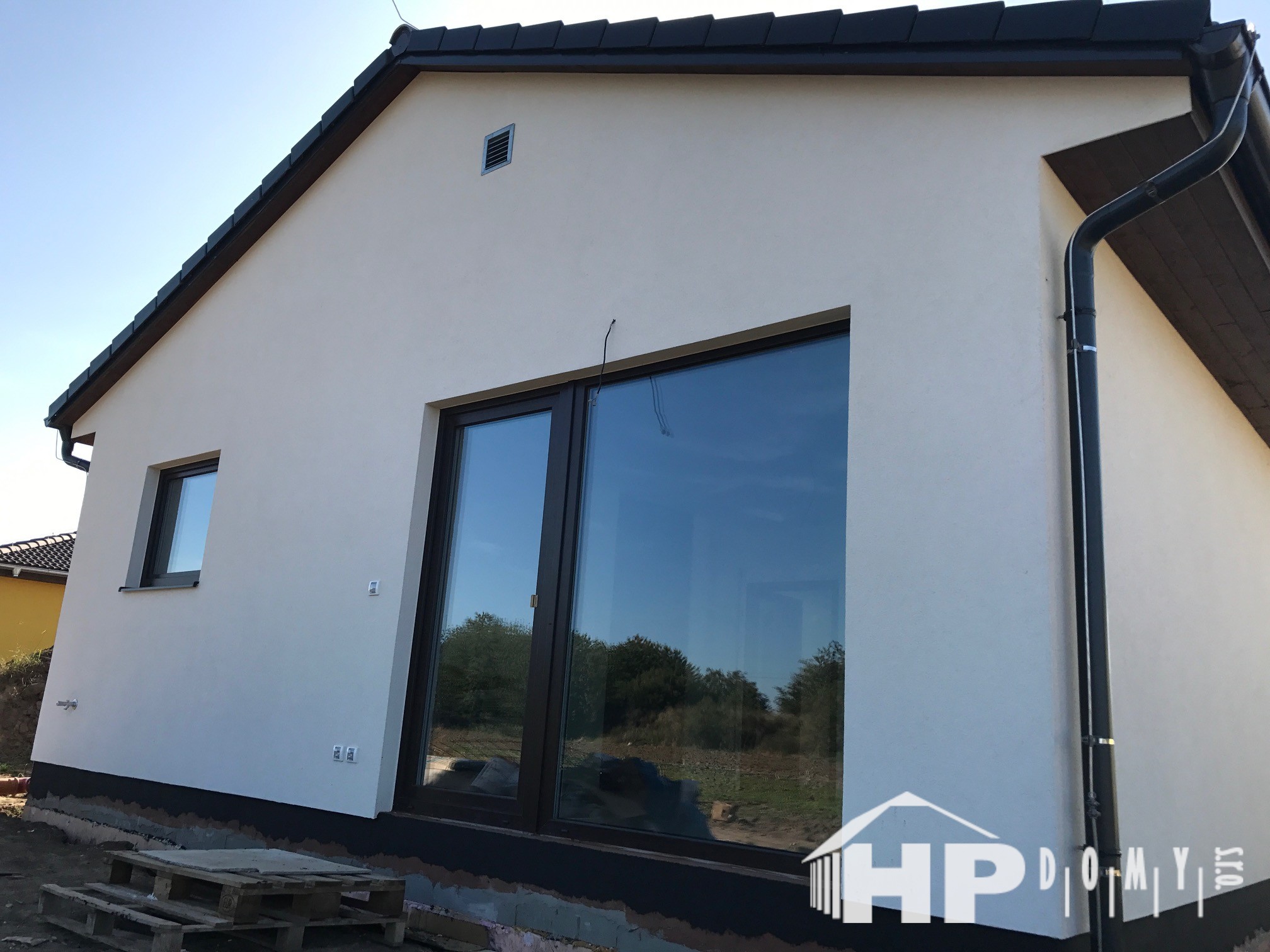 Dokončená realizace našeho oblíbeného typového bungalovu HP90 v obci Chotětov. Difuzně uzavřená dřevostavba s dispozicí 4+kk a užitnou plochou 90 m2 je ideální pro 4člennou rodinu. Propracovaná studie rodinného domu HP90 zaručuje vysokou kvalitu provedení spolu s ekonomicky přijatelným řešením – díky tomu je dům cenově dostupný opravdu pro každého. Dům nabízí prostorný obývací pokoj s kuchyňským koutem a spíží, kde je použito podlahové vytápění; ložnici, 2 dětské pokoje, prostornou koupelnu s vanou a sprchovým koutem, komfortní zádveří a technickou místnost se samostatným WC. Velké francouzské okno v obývacím pokoji zajistí dostatečné množství světla a pohodlný vstup na zahradu.