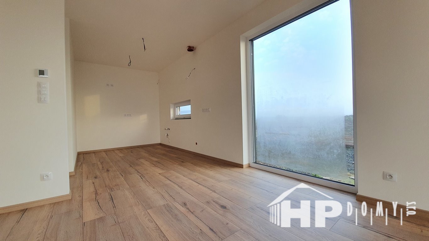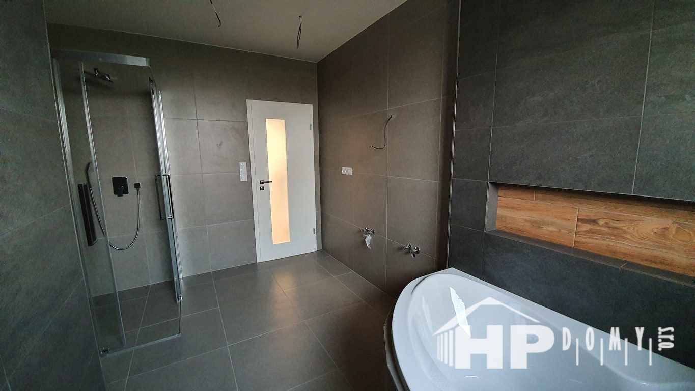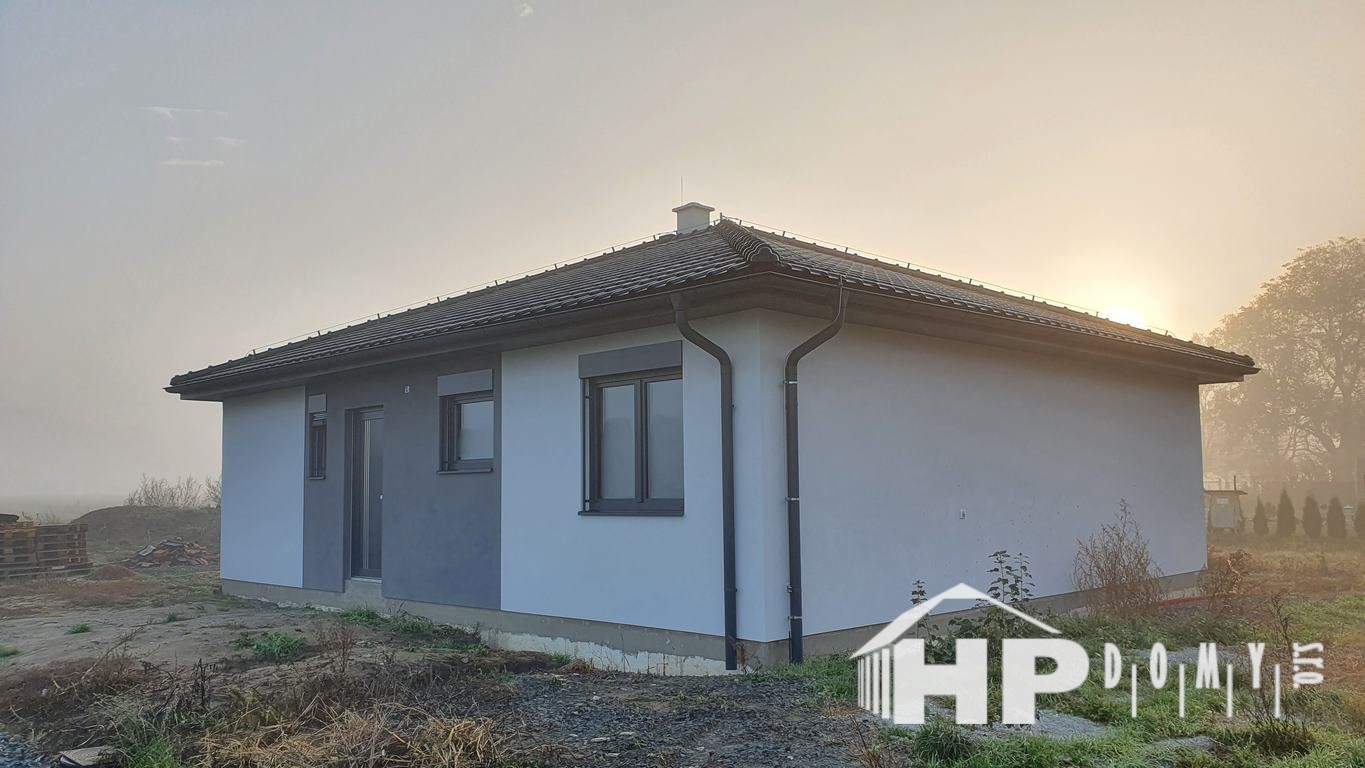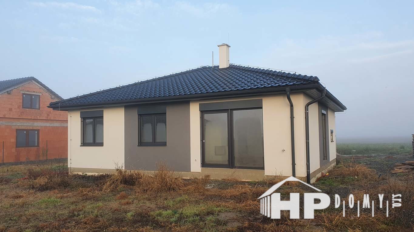 Dokončená stavba bungalovu o rozloze 99 metrů čtverečních a dispozici 4+kk v Dluhonicích.