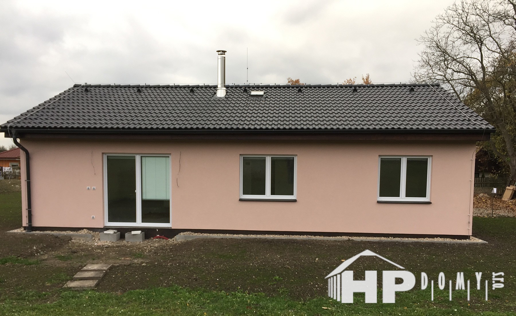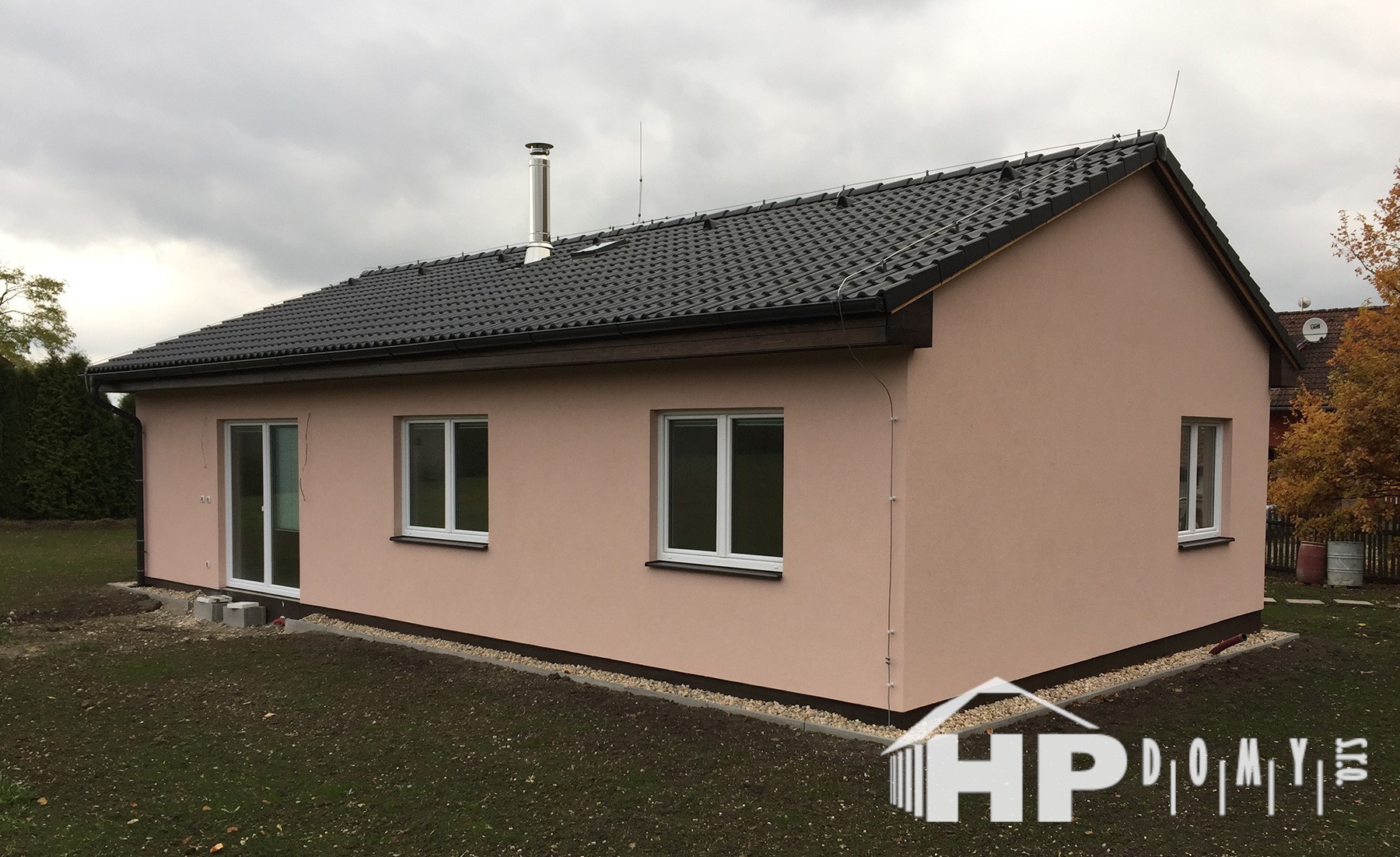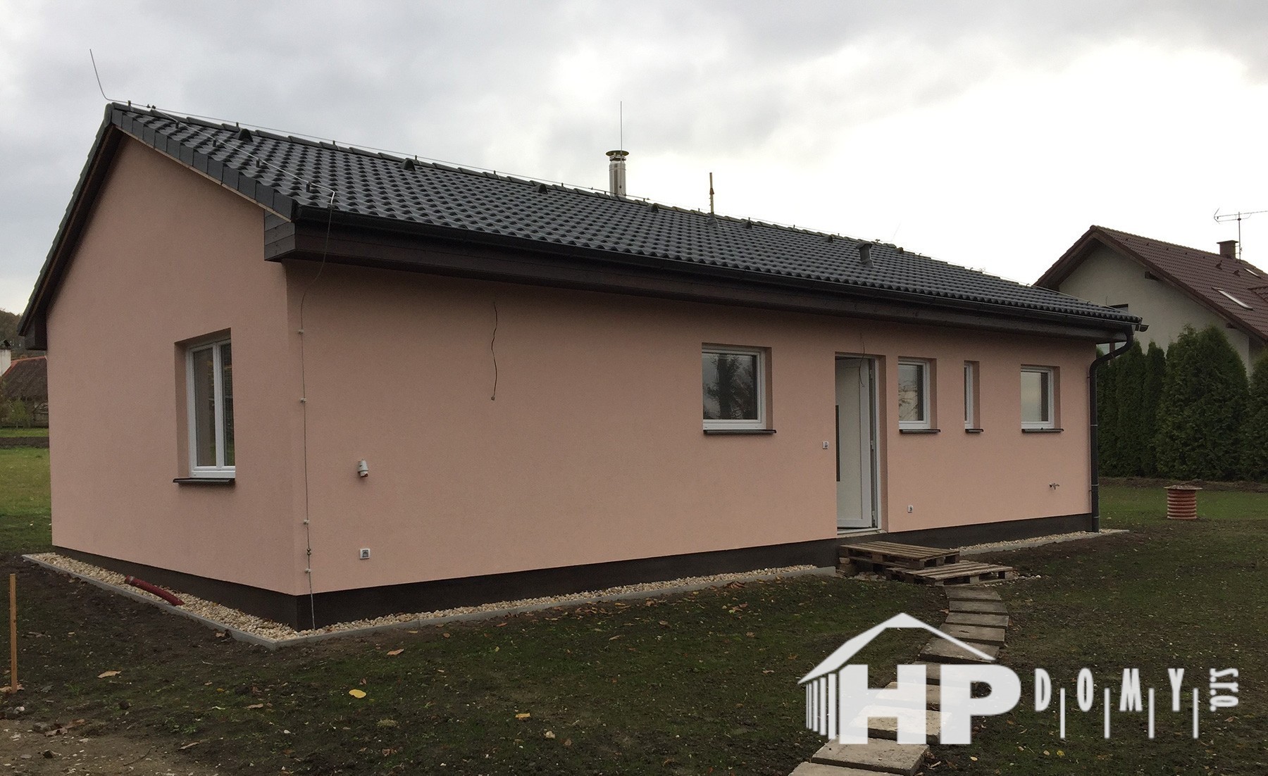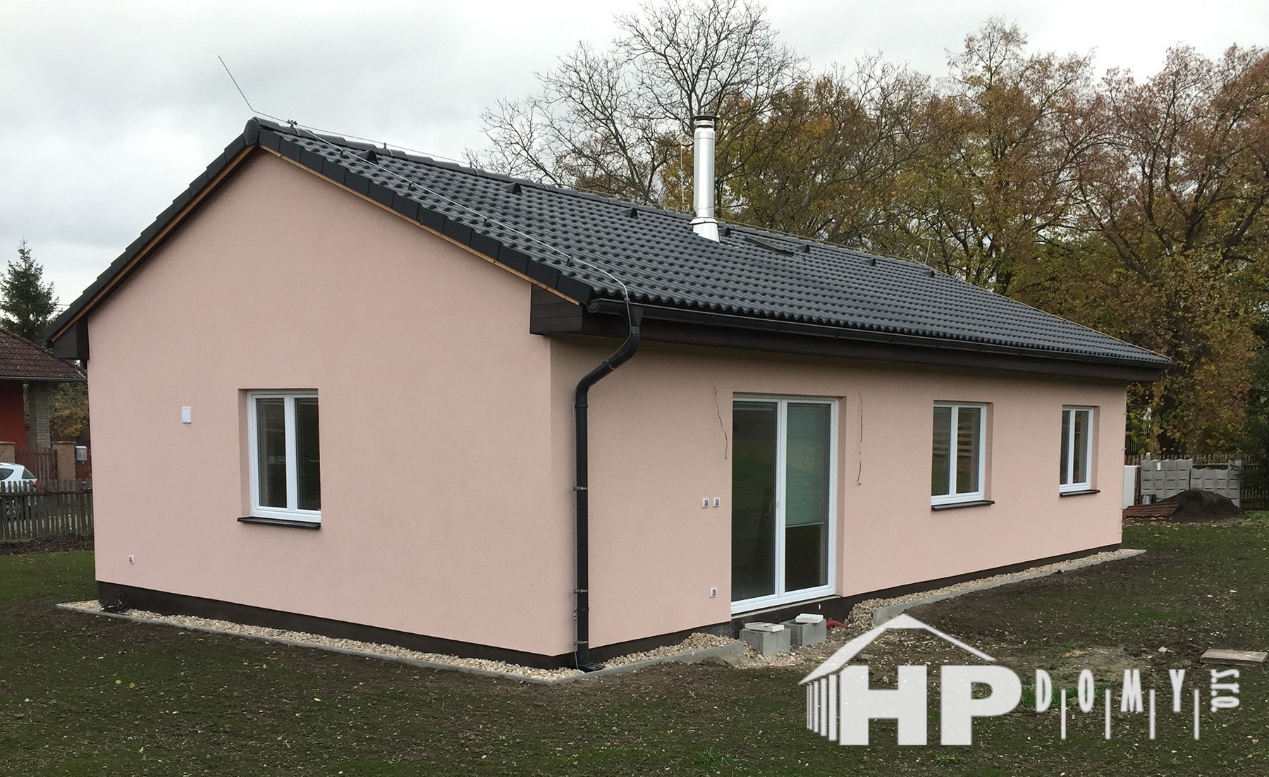 Dokončená realizace našeho oblíbeného typového bungalovu HP90 v obci Dolánky u Mladé Boleslavi. Difuzně uzavřená dřevostavba s dispozicí 4+kk a užitnou plochou 90 m2 je ideální pro 4člennou rodinu. Propracovaná studie rodinného domu HP90 zaručuje vysokou kvalitu provedení spolu s ekonomicky přijatelným řešením – díky tomu je dům cenově dostupný opravdu pro každého. Dům nabízí prostorný obývací pokoj s kuchyňským koutem a spíží, kde je použito podlahové vytápění; ložnici, 2 dětské pokoje, prostornou koupelnu s vanou a sprchovým koutem, komfortní zádveří a technickou místnost se samostatným WC. Velké francouzské okno v obývacím pokoji zajistí dostatečné množství světla a pohodlný vstup na zahradu.