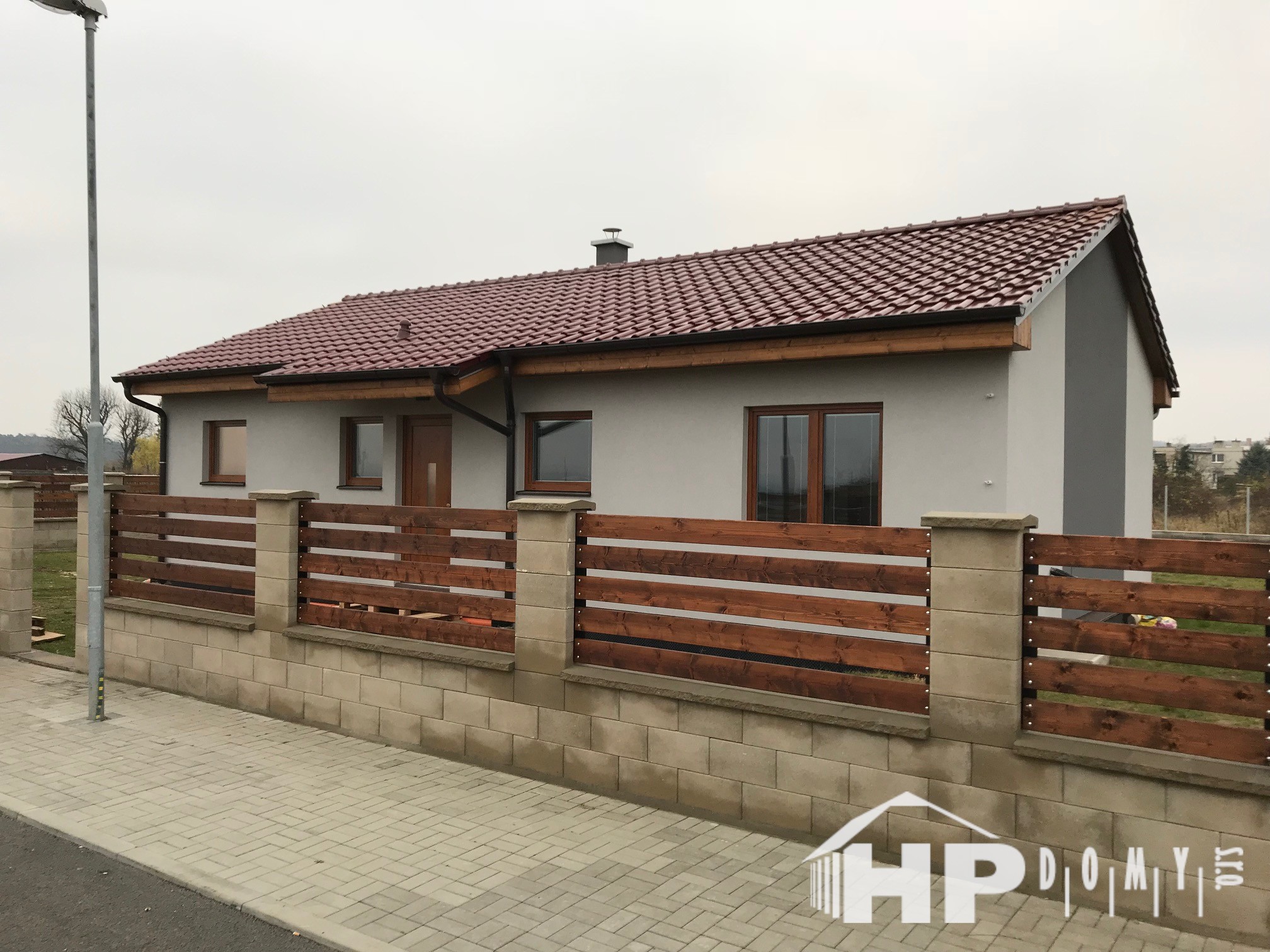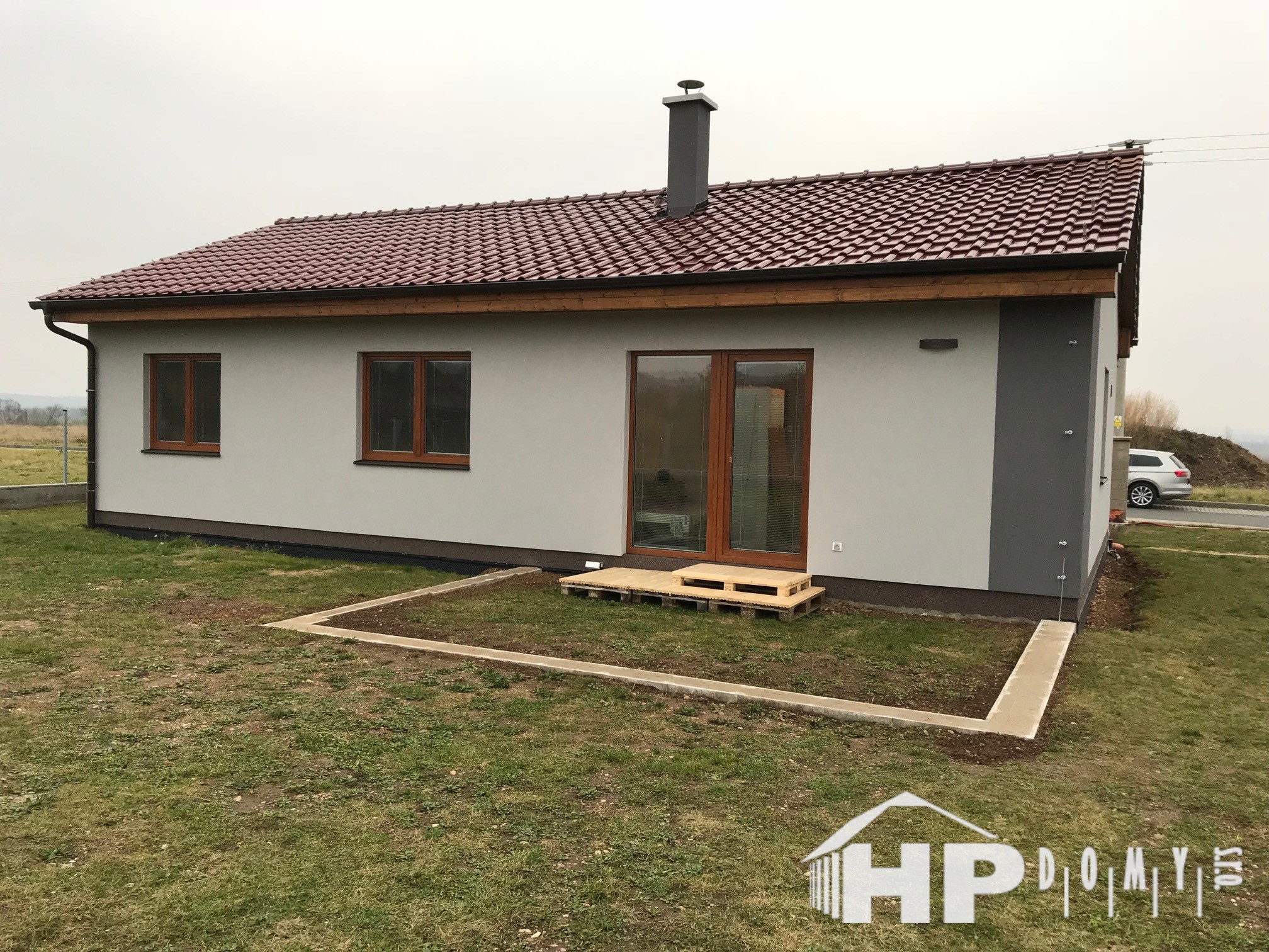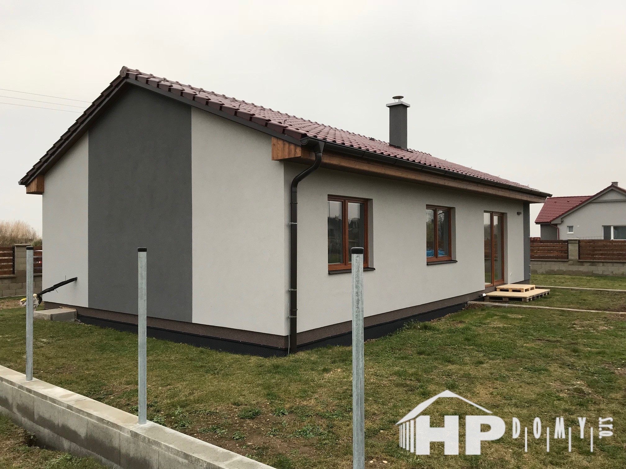 Dokončená realizace našeho oblíbeného typového bungalovu HP90 v obci Horní Beřkovice. Difuzně uzavřená dřevostavba s dispozicí 4+kk a užitnou plochou 90 m2 je ideální pro 4člennou rodinu. Propracovaná studie rodinného domu HP90 zaručuje vysokou kvalitu provedení spolu s ekonomicky přijatelným řešením – díky tomu je dům cenově dostupný opravdu pro každého. Dům nabízí prostorný obývací pokoj s kuchyňským koutem a spíží, kde je použito podlahové vytápění; ložnici, 2 dětské pokoje, prostornou koupelnu s vanou a sprchovým koutem, komfortní zádveří a technickou místnost se samostatným WC. Velké francouzské okno v obývacím pokoji zajistí dostatečné množství světla a pohodlný vstup na zahradu.