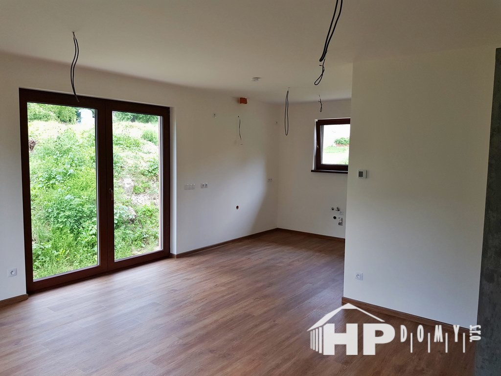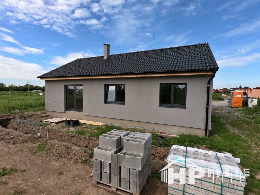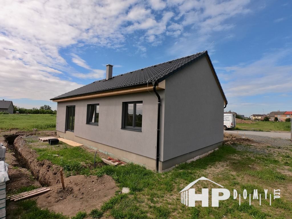 Difúzně uzavřená dřevostavba typového domu HP90 v Horní Temenici. Dům s dispozicí 4+kk a užitnou plochou 90 m2 je ideální pro čtyřčlennou rodinu.