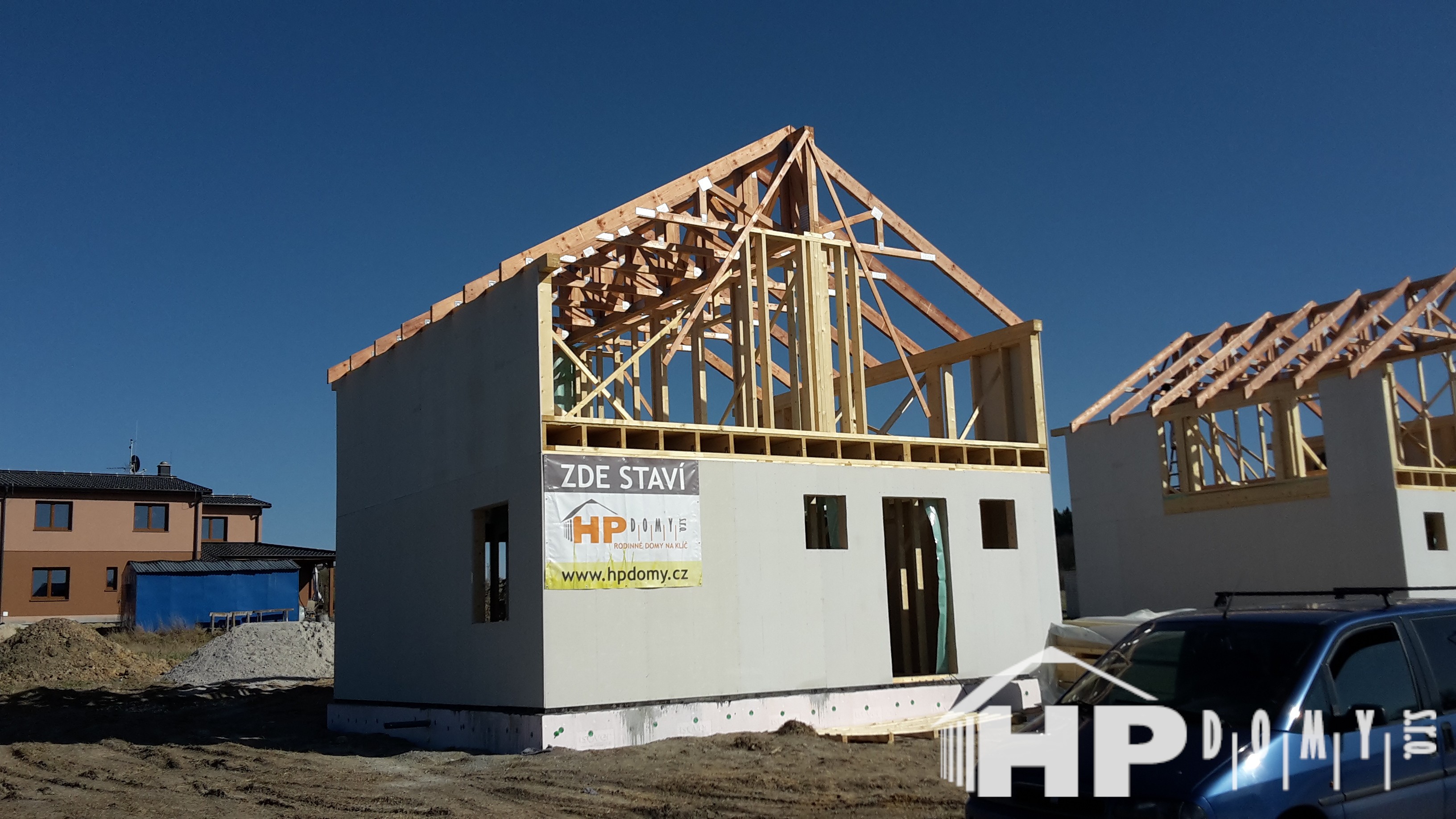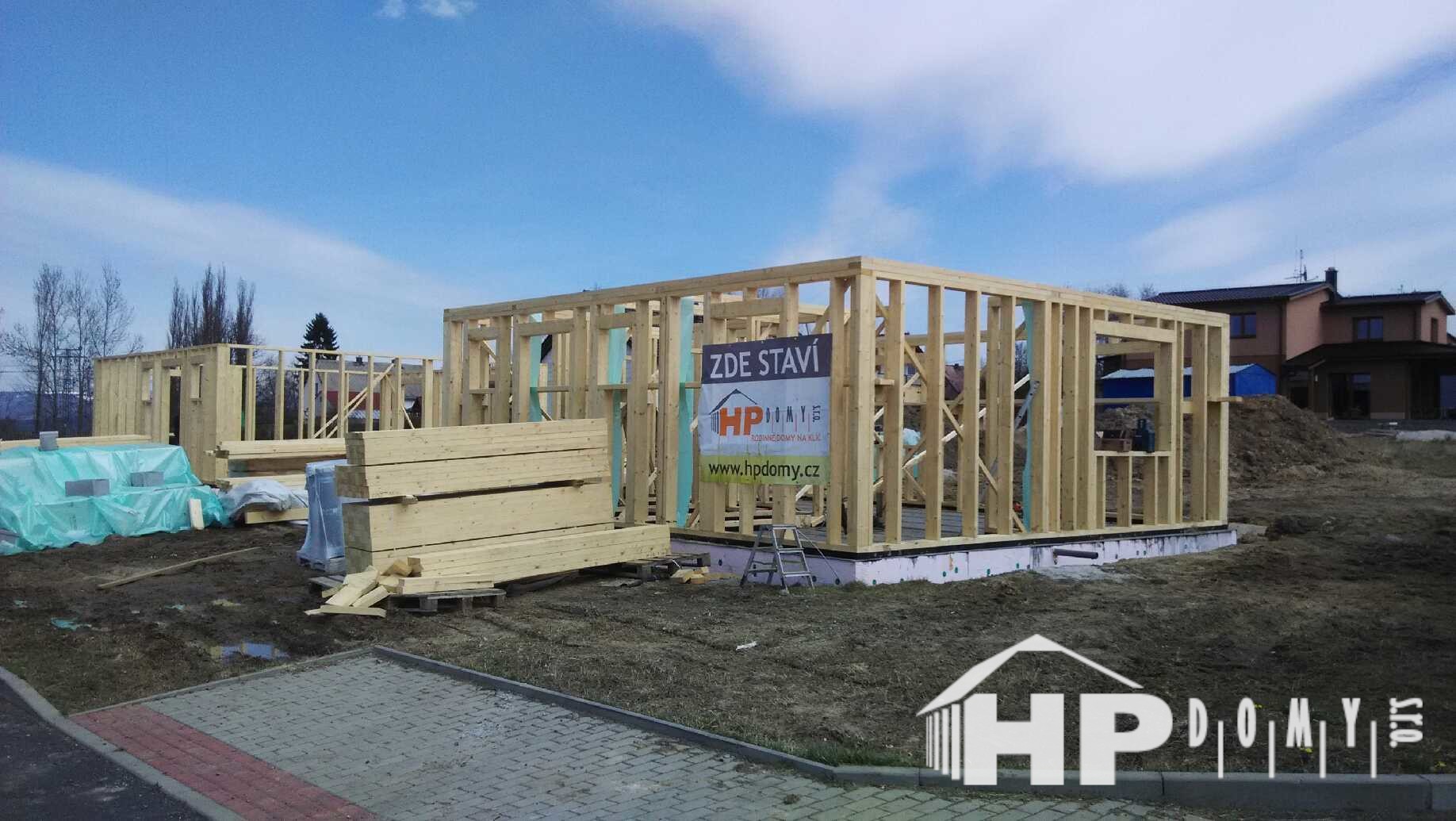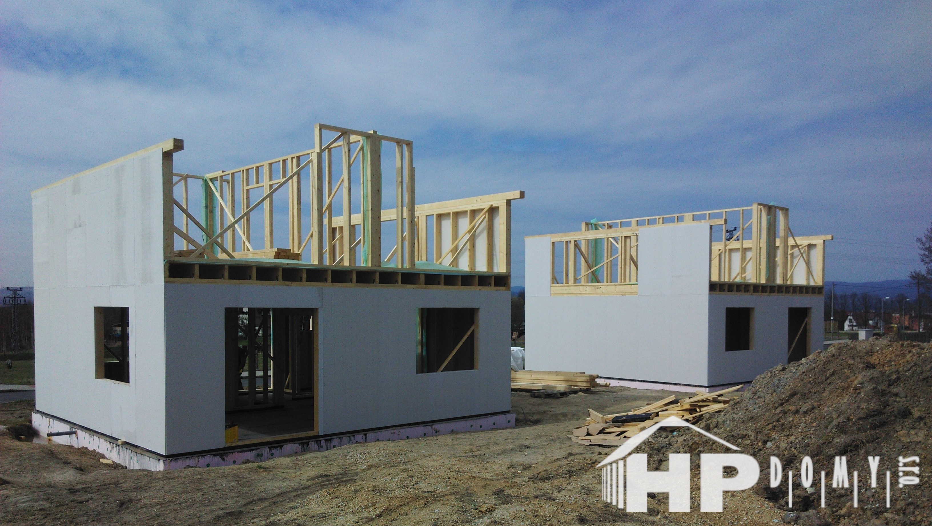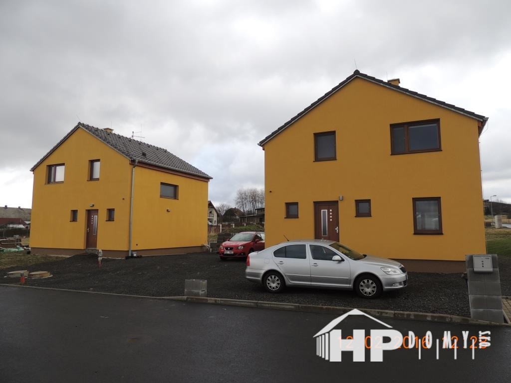 Dvě stejné dřevostavby patrových rodinných domů realizované v obci Hory na Karlovarsku.
