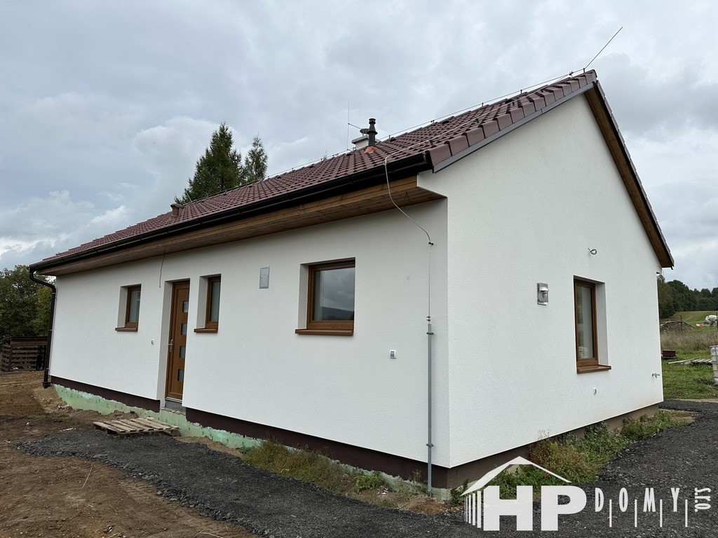 Dokončená realizace našeho oblíbeného typového bungalovu HP90 v Jablonném v Podještědí tentokrát ve zděném provedení.