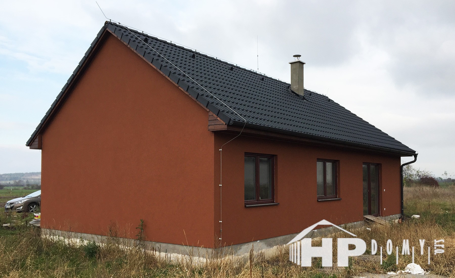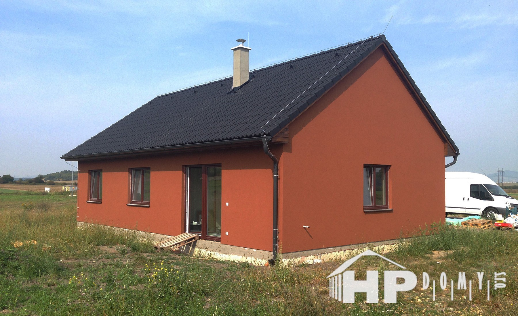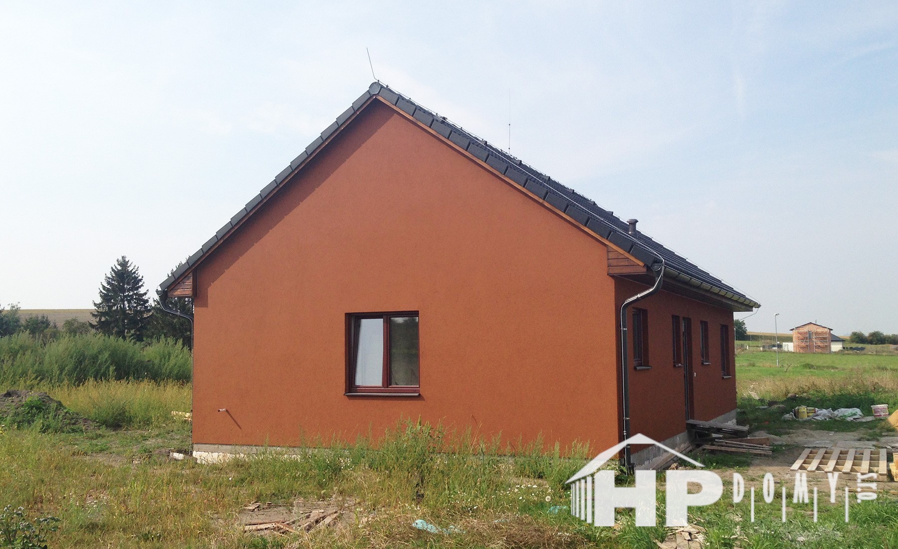 Dokončená realizace našeho oblíbeného typového bungalovu HP90 v obci Hrobce (Rohatce). Difuzně uzavřená dřevostavba s dispozicí 4+kk a užitnou plochou 90 m2 je ideální pro 4člennou rodinu. Propracovaná studie rodinného domu HP90 zaručuje vysokou kvalitu provedení spolu s ekonomicky přijatelným řešením – díky tomu je dům cenově dostupný opravdu pro každého. Dům nabízí prostorný obývací pokoj s kuchyňským koutem a spíží, kde je použito podlahové vytápění; ložnici, 2 dětské pokoje, prostornou koupelnu s vanou a sprchovým koutem, komfortní zádveří a technickou místnost se samostatným WC. Velké francouzské okno v obývacím pokoji zajistí dostatečné množství světla a pohodlný vstup na zahradu.