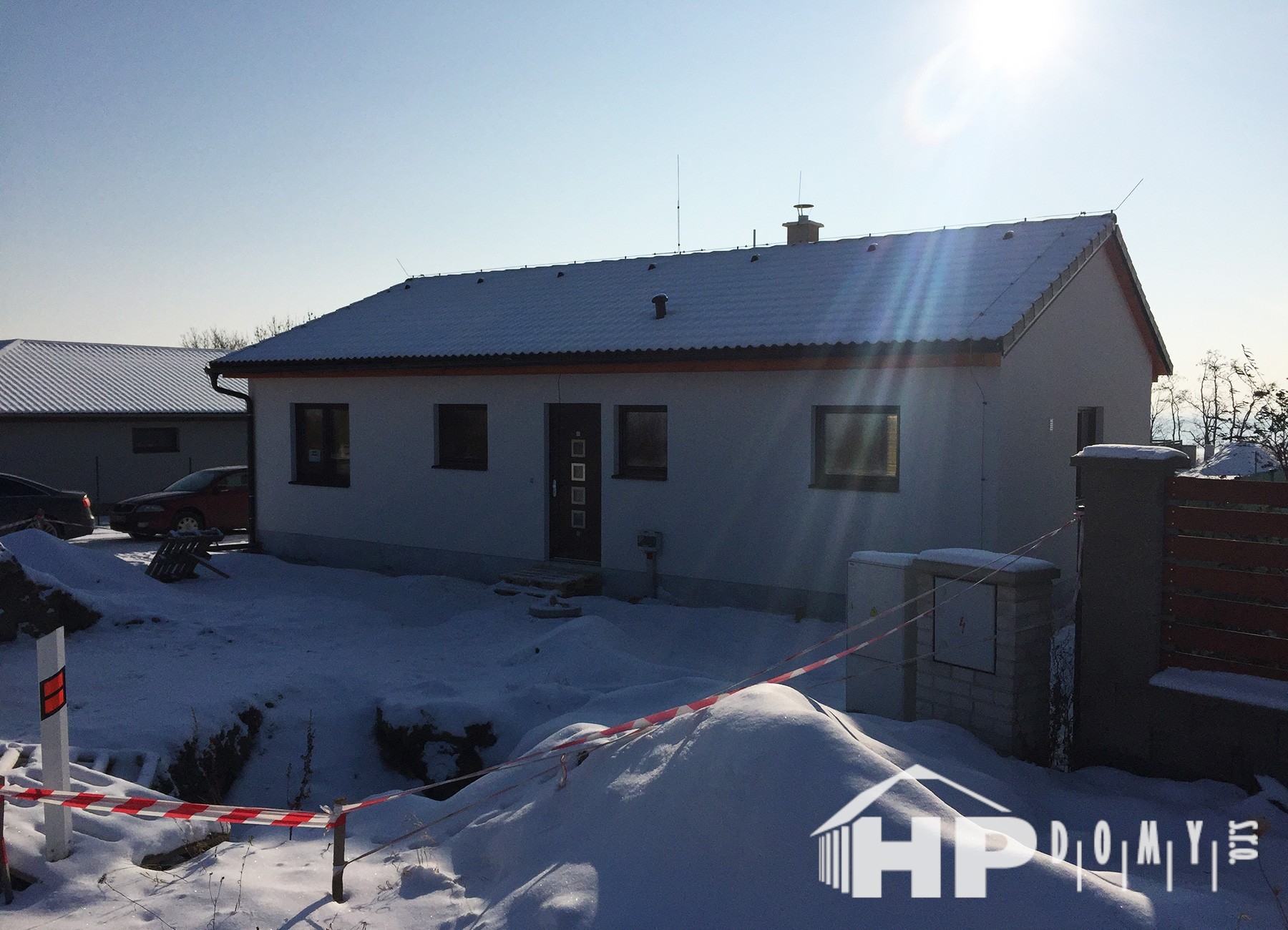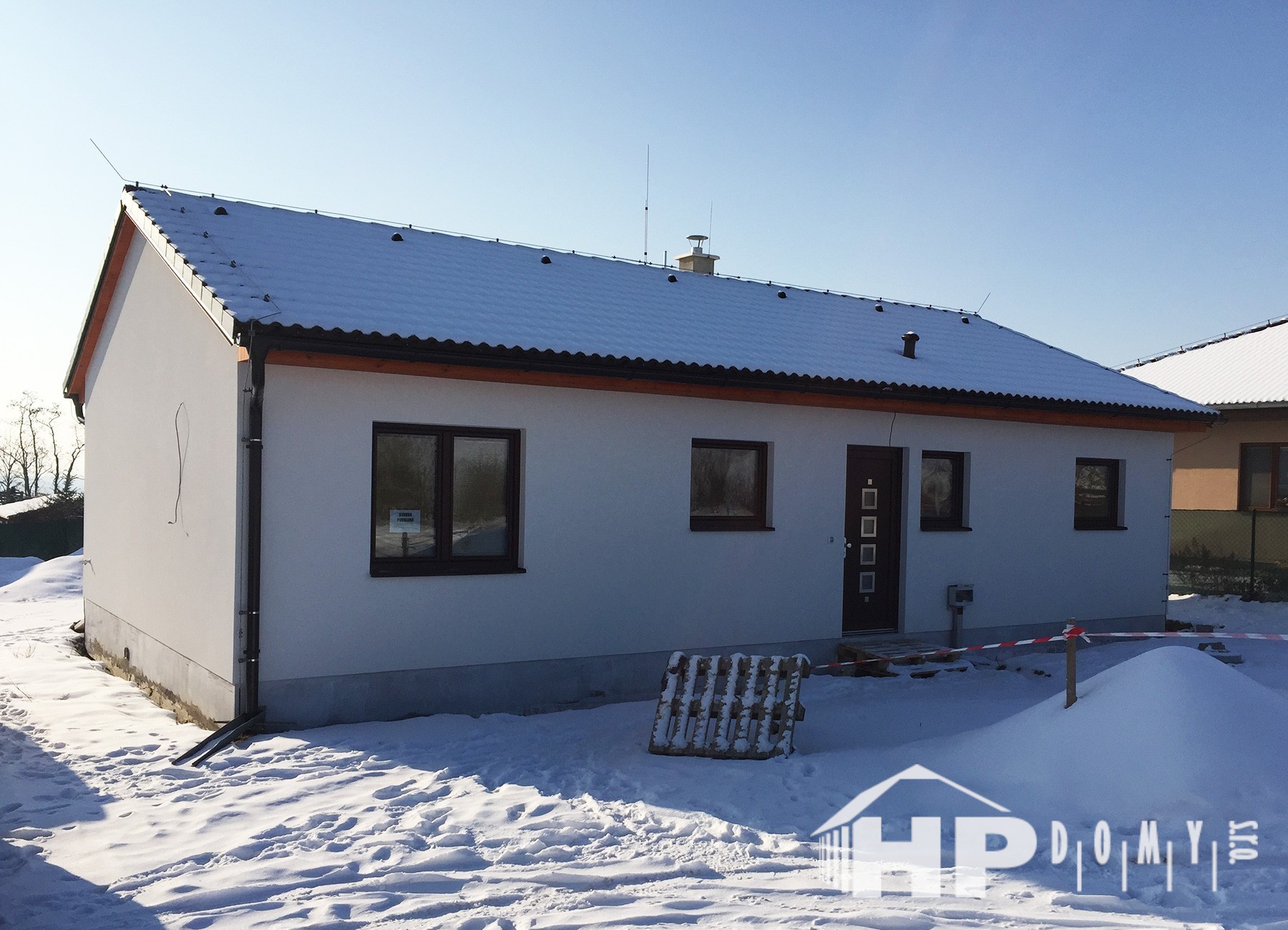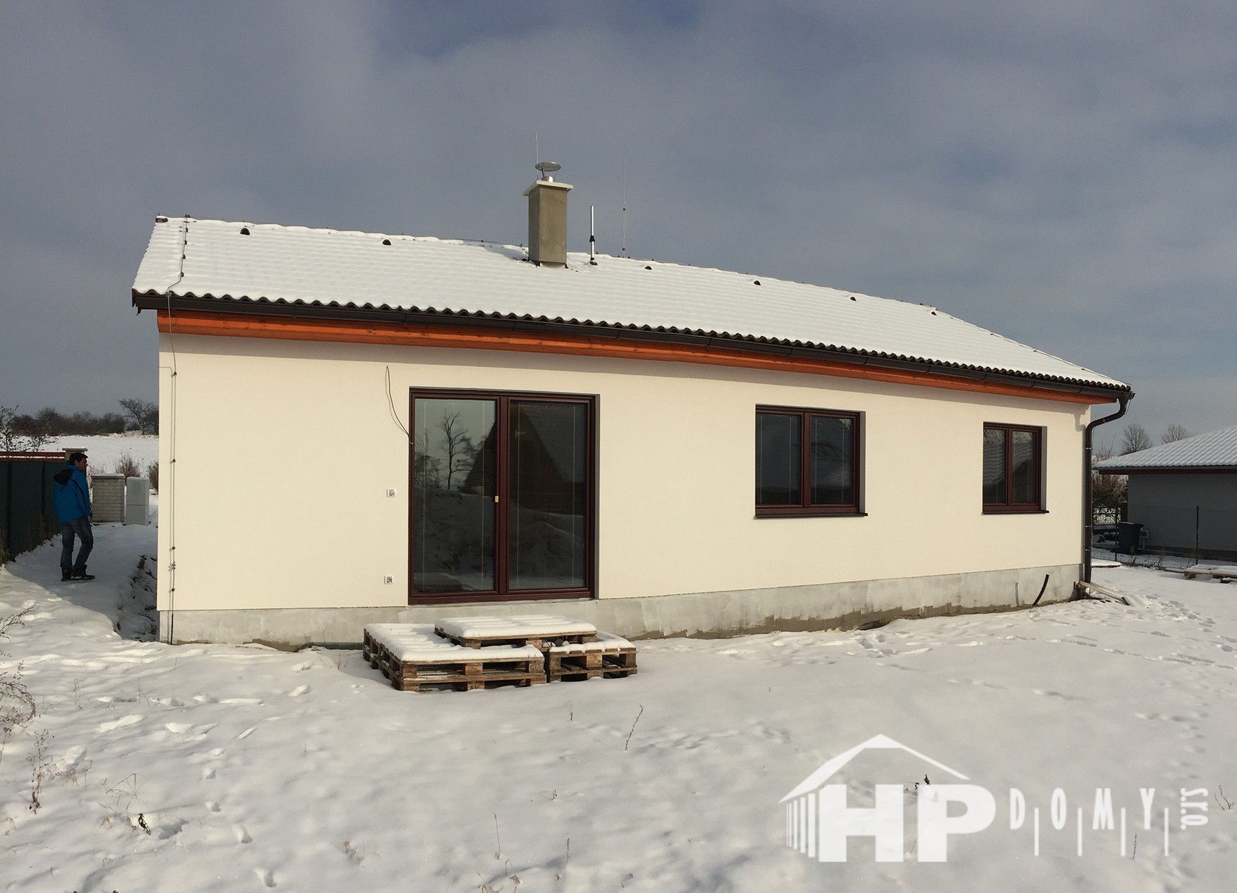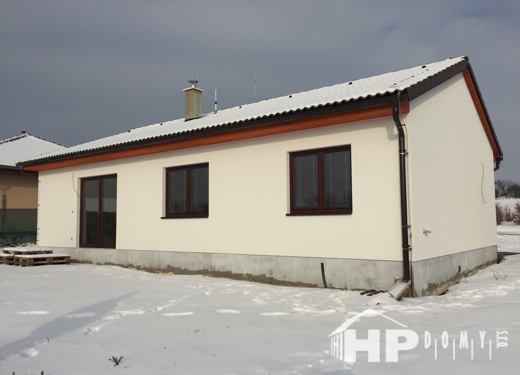 Dokončená realizace našeho oblíbeného typového bungalovu HP90 v obci Kly. Difuzně uzavřená dřevostavba s dispozicí 4+kk a užitnou plochou 90 m2 je ideální pro 4člennou rodinu. Propracovaná studie rodinného domu HP90 zaručuje vysokou kvalitu provedení spolu s ekonomicky přijatelným řešením – díky tomu je dům cenově dostupný opravdu pro každého. Dům nabízí prostorný obývací pokoj s kuchyňským koutem a spíží, kde je použito podlahové vytápění; ložnici, 2 dětské pokoje, prostornou koupelnu s vanou a sprchovým koutem, komfortní zádveří a technickou místnost se samostatným WC. Velké francouzské okno v obývacím pokoji zajistí dostatečné množství světla a pohodlný vstup na zahradu.