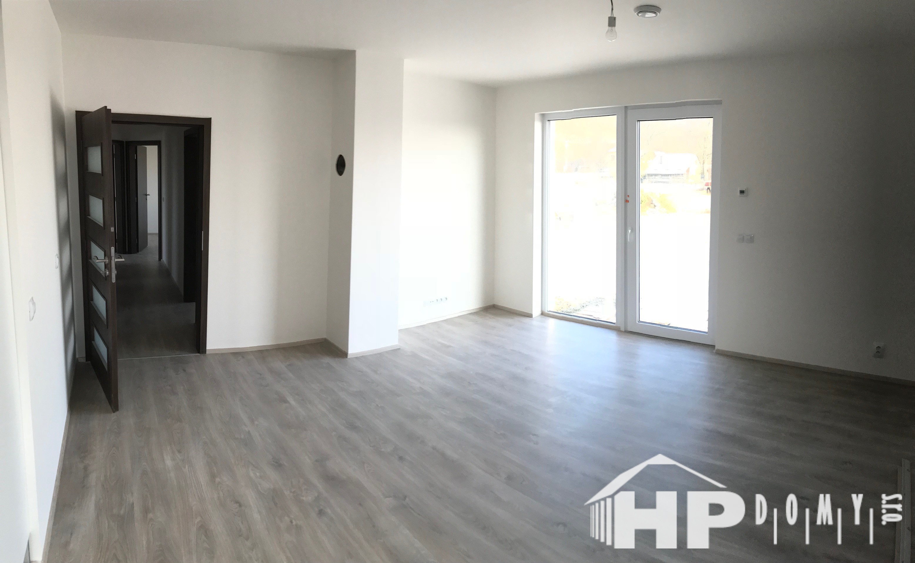 Velké francouzské okno v obývacím pokoji zajistí dostatečné množství světla a pohodlný vstup na zahradu.