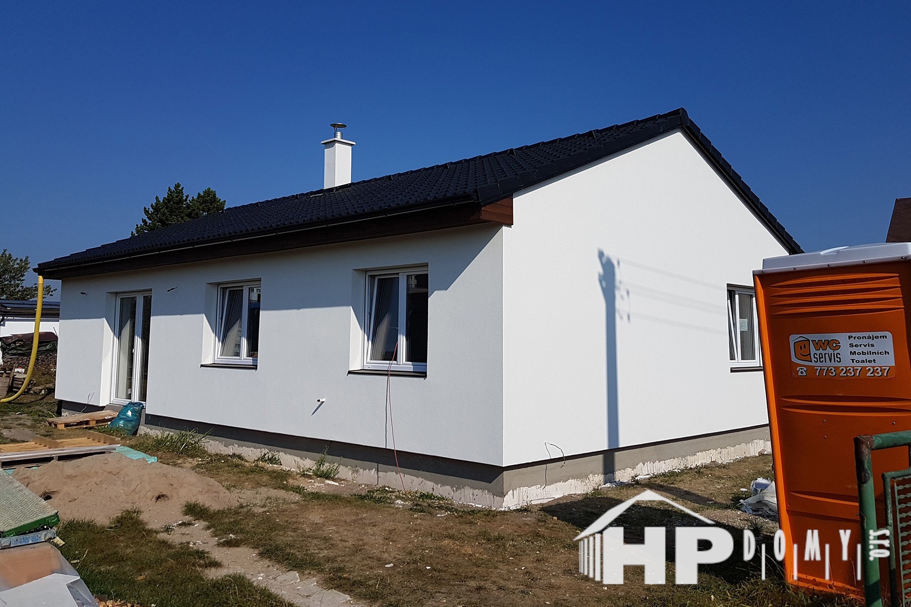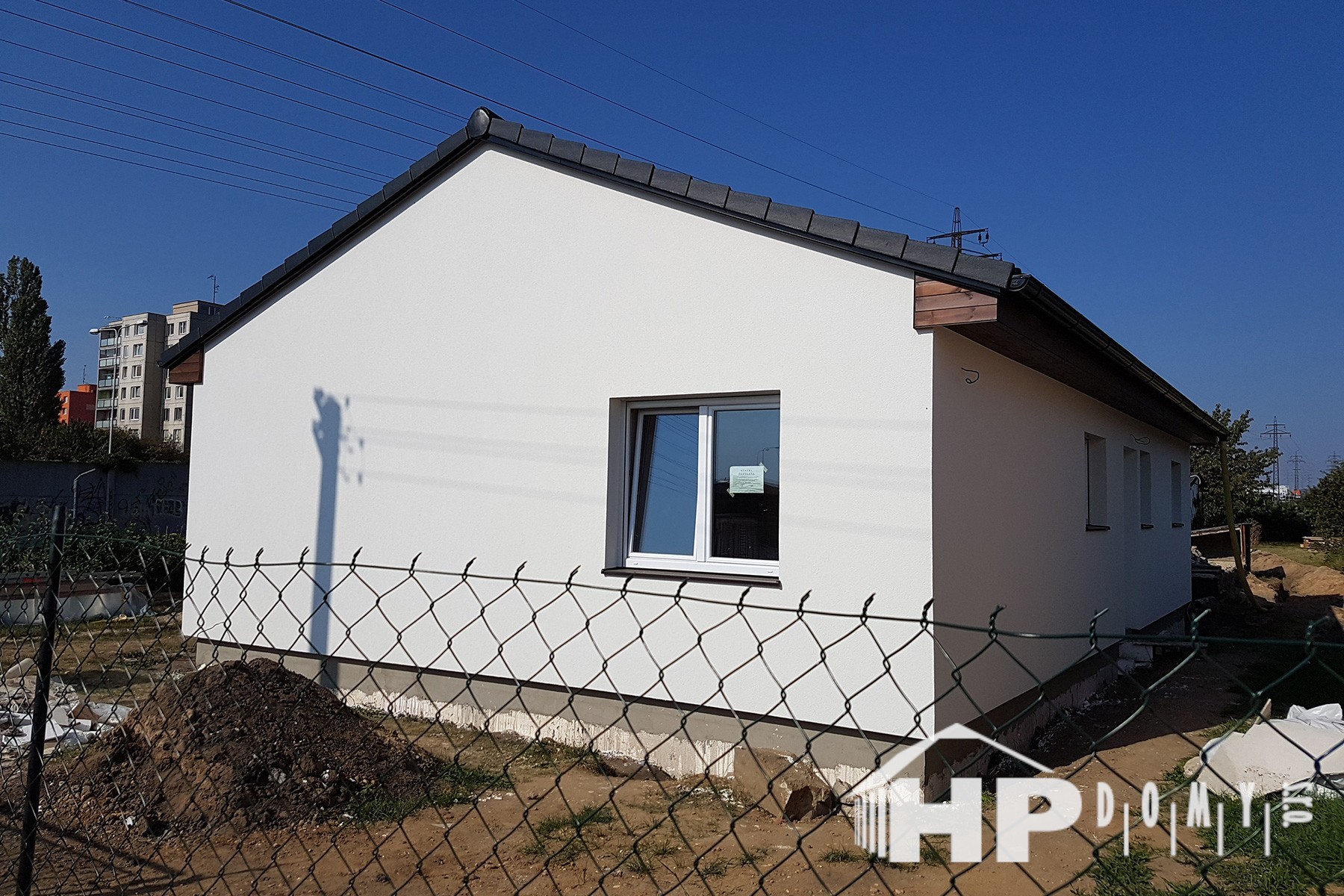 Dokončená realizace našeho oblíbeného typového bungalovu HP90 v obci Kosmonosy (Mladá Boleslav). Difuzně uzavřená dřevostavba s dispozicí 4+kk a užitnou plochou 90 m2 je ideální pro 4člennou rodinu. Propracovaná studie rodinného domu HP90 zaručuje vysokou kvalitu provedení spolu s ekonomicky přijatelným řešením – díky tomu je dům cenově dostupný opravdu pro každého. Dům nabízí prostorný obývací pokoj s kuchyňským koutem a spíží, kde je použito podlahové vytápění; ložnici, 2 dětské pokoje, prostornou koupelnu s vanou a sprchovým koutem, komfortní zádveří a technickou místnost se samostatným WC. Velké francouzské okno v obývacím pokoji zajistí dostatečné množství světla a pohodlný vstup na zahradu.