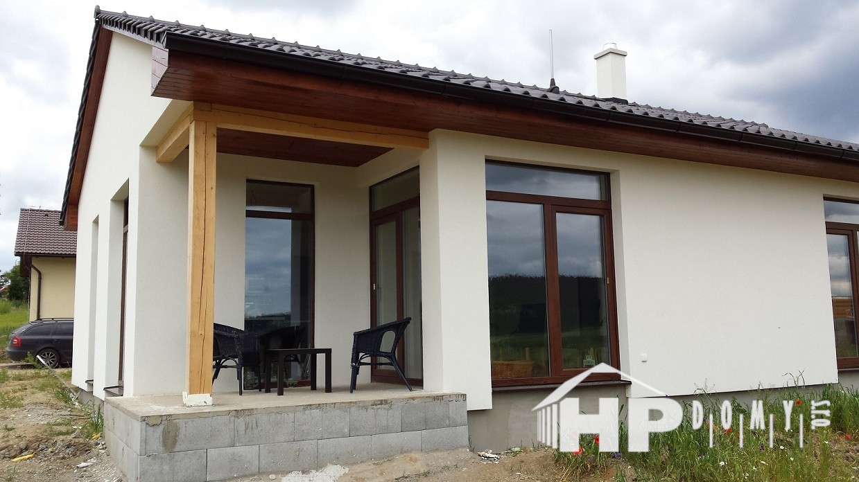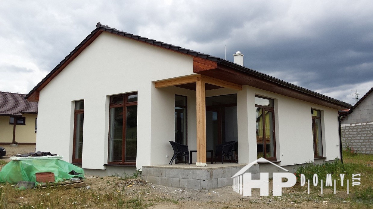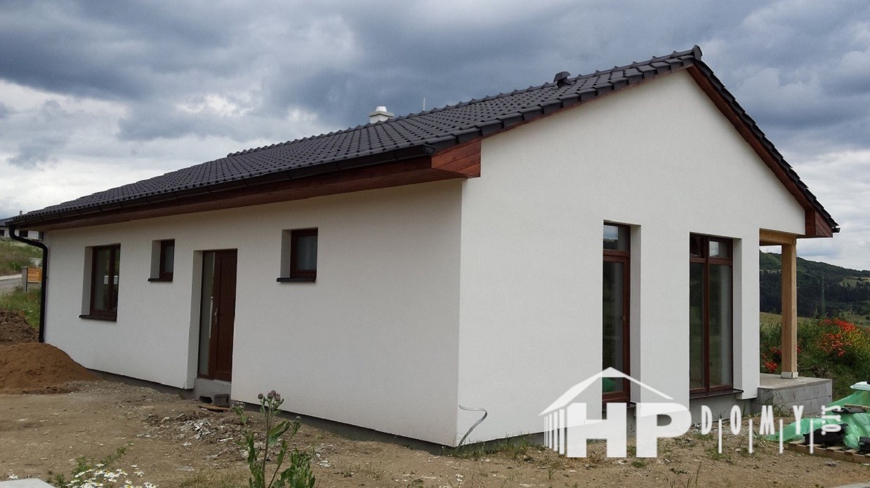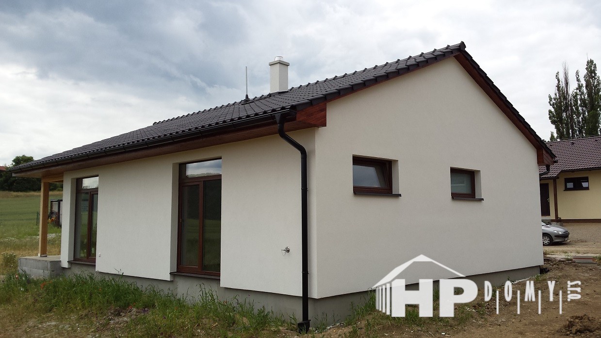 Difuzně-otevřený rodinný dům dle individuální návrhu s komfortně řešenou dispozicí 3+kk o užitné ploše 95 m2 s krytou venkovní terasou. Dominantou domu je hlavní obytný prostor s francouzskými okny do výšky stropů a podlahou z pravého mramoru. Dále se v domě nachází dvě ložnice a velkoryse dimenzovaná koupelna se solitérní vanou. Praktickou část domu tvoří samostatné WC s technickým koutem a samostatná prádelna. Vytápění domu zajišťují odporové topné kabely Fenix Ecofloor, pro příležitostné přitápění bude sloužit krbová vložka.