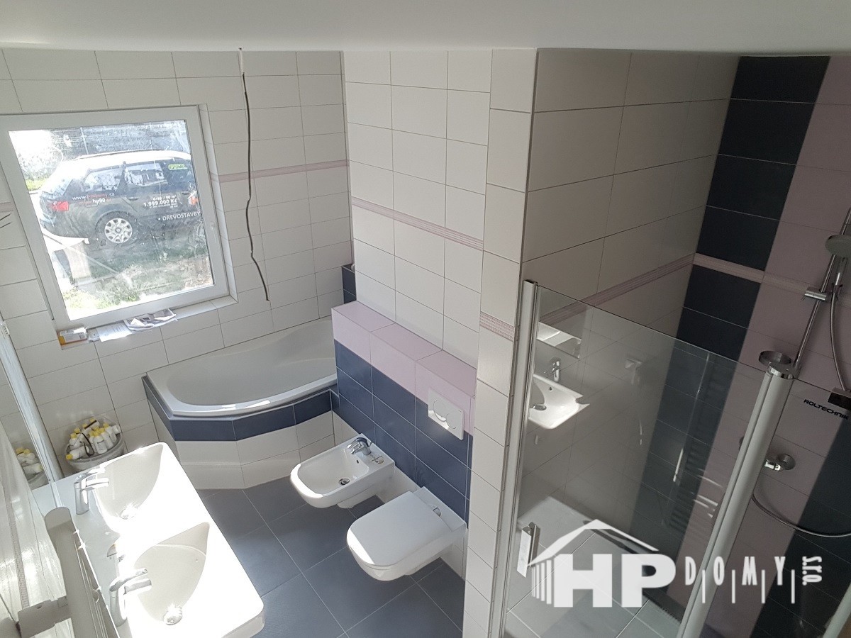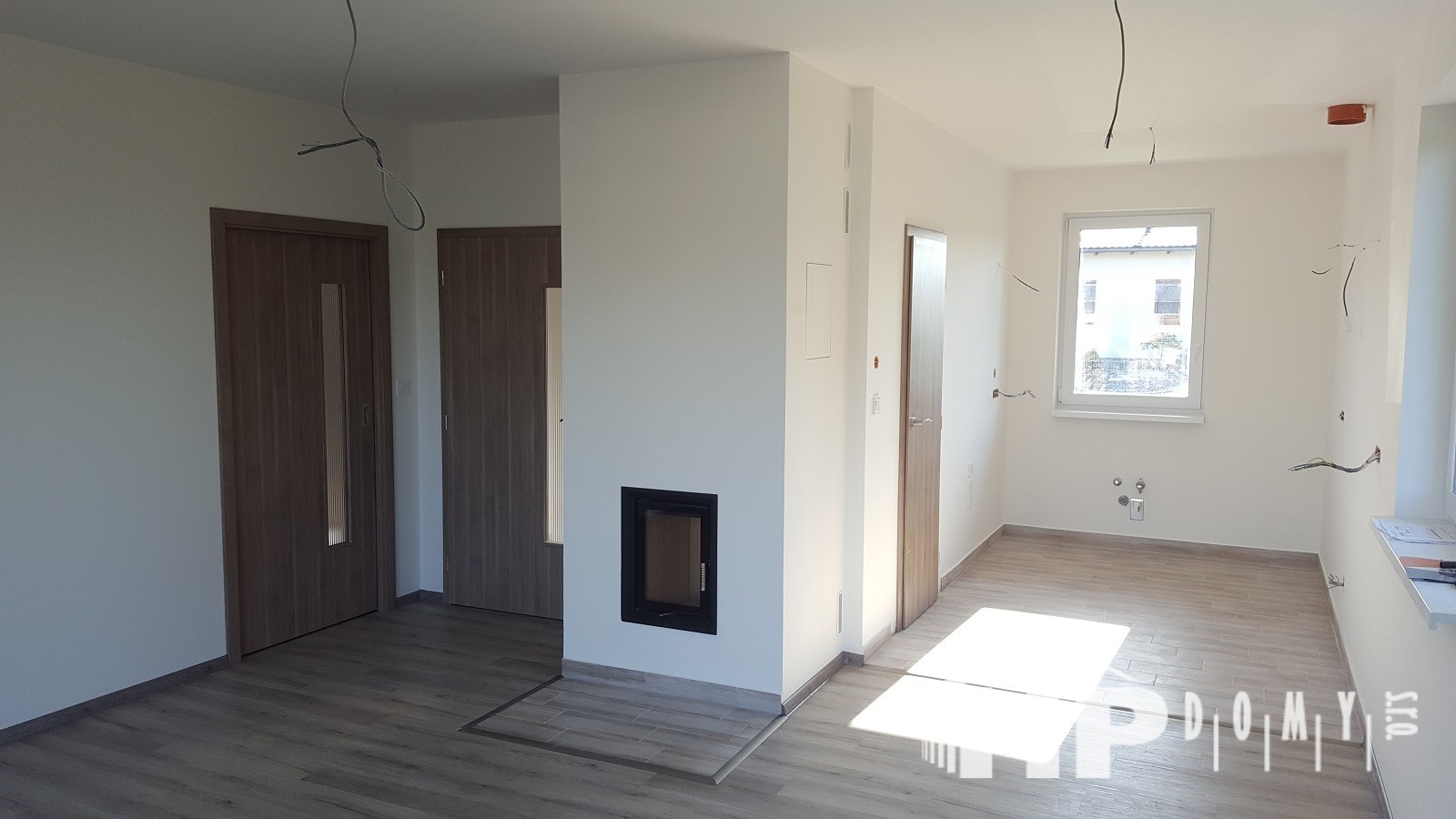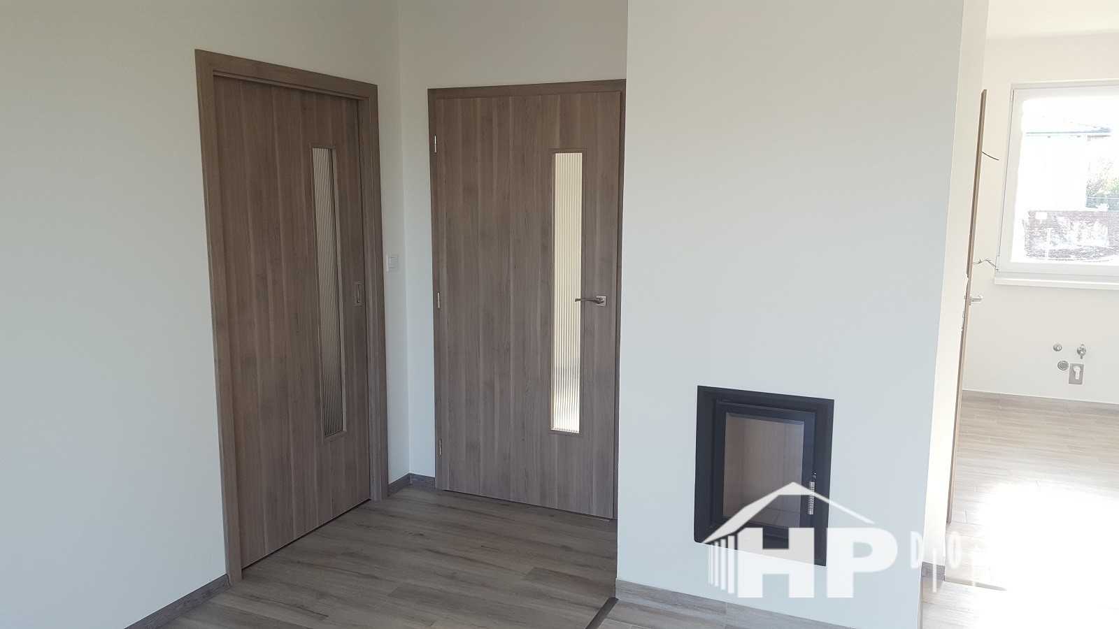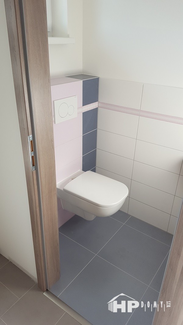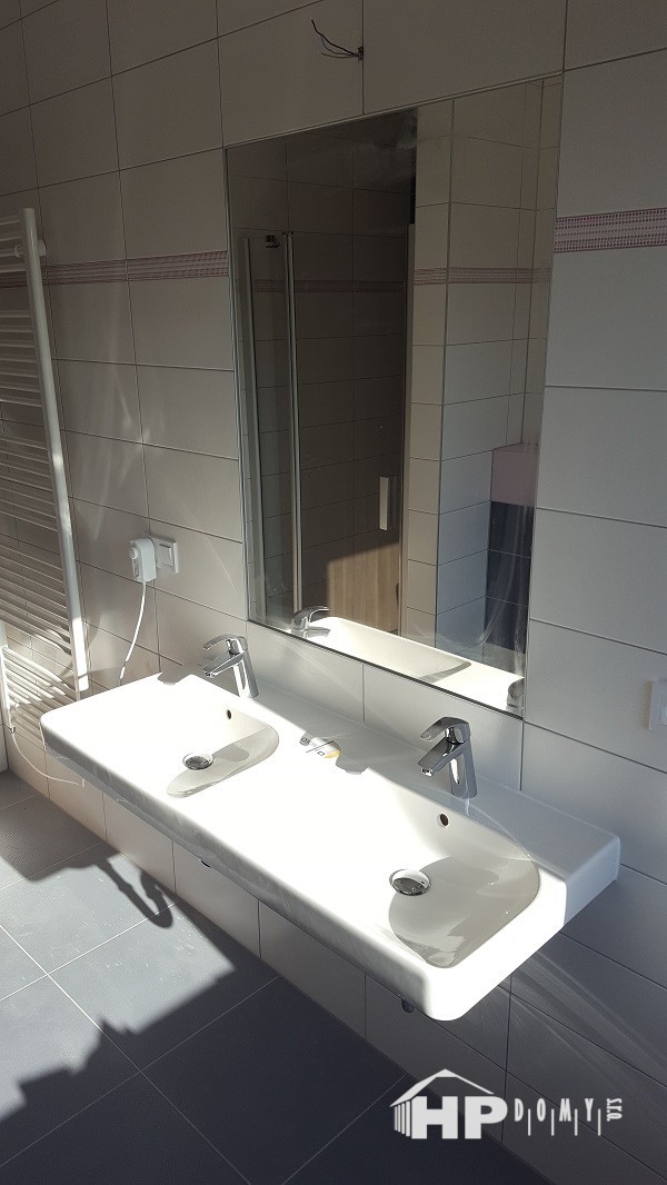 Stále oblíbenější bungalov s individuálními úpravami klienta, o celkové užitné ploše 94m2 a přesahem střechy v uličním i dvorním traktu. Dům byl vzhledem k lokalitě zvednut proti případným záplavám. Obsahuje komín s nadstandardní tepelně-akumulační krbovou obestavbou, podlahovým vytápěním v obývacím pokoji, kuchyni, koupelně a zádveří, posuvné dveře do pouzdra, designové prosklené interiérové dveře, vinylové podlahy, vyspádovanou dlažbu v technické místnosti a staticky upravenou terasu s nadstandardním prosklením do zahrady.