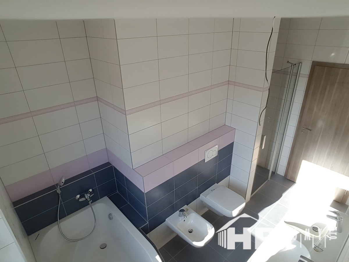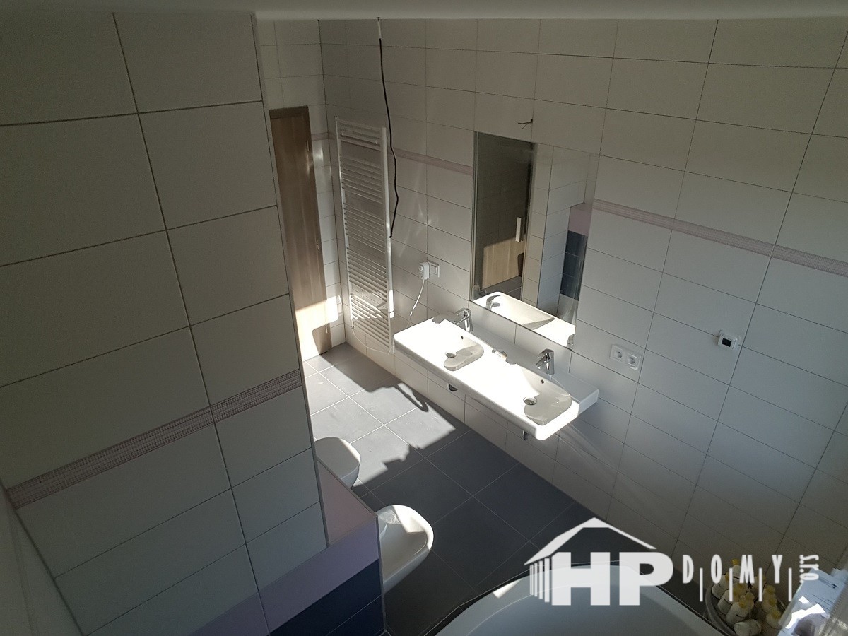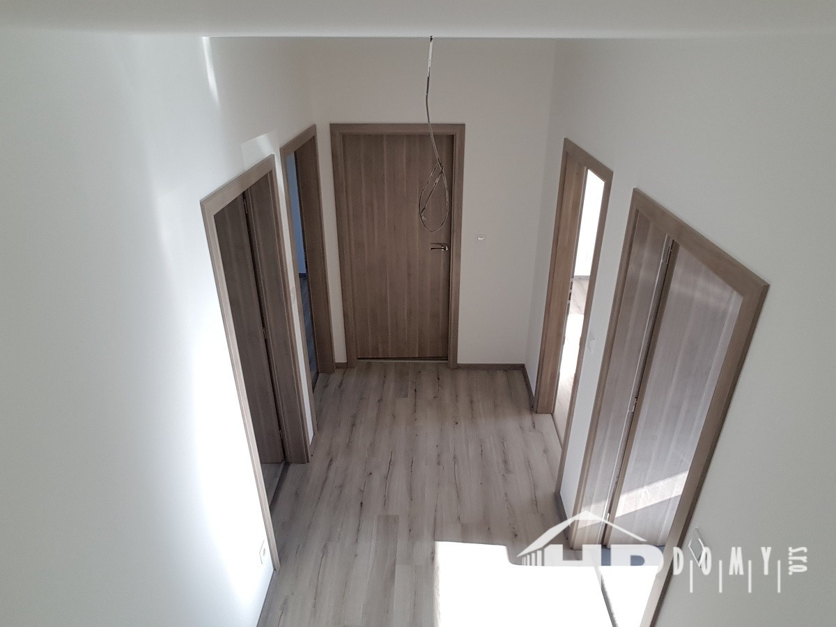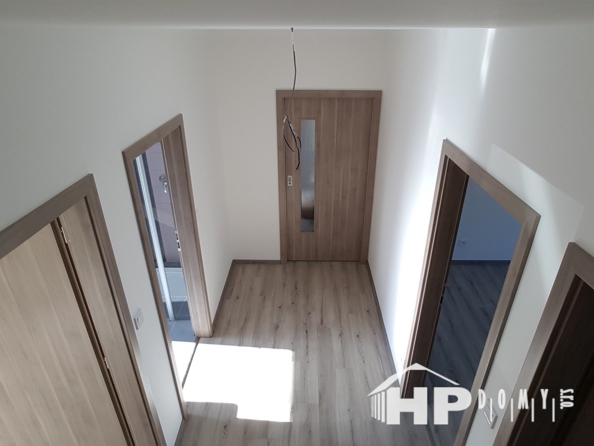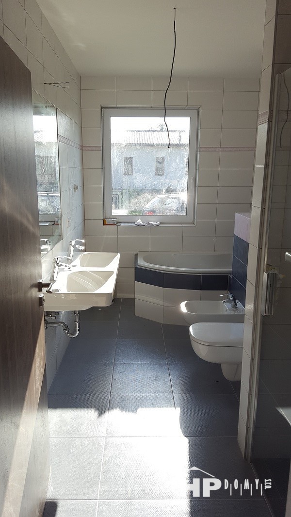 Stále oblíbenější bungalov s individuálními úpravami klienta, o celkové užitné ploše 94m2 a přesahem střechy v uličním i dvorním traktu. Dům byl vzhledem k lokalitě zvednut proti případným záplavám. Obsahuje komín s nadstandardní tepelně-akumulační krbovou obestavbou, podlahovým vytápěním v obývacím pokoji, kuchyni, koupelně a zádveří, posuvné dveře do pouzdra, designové prosklené interiérové dveře, vinylové podlahy, vyspádovanou dlažbu v technické místnosti a staticky upravenou terasu s nadstandardním prosklením do zahrady.