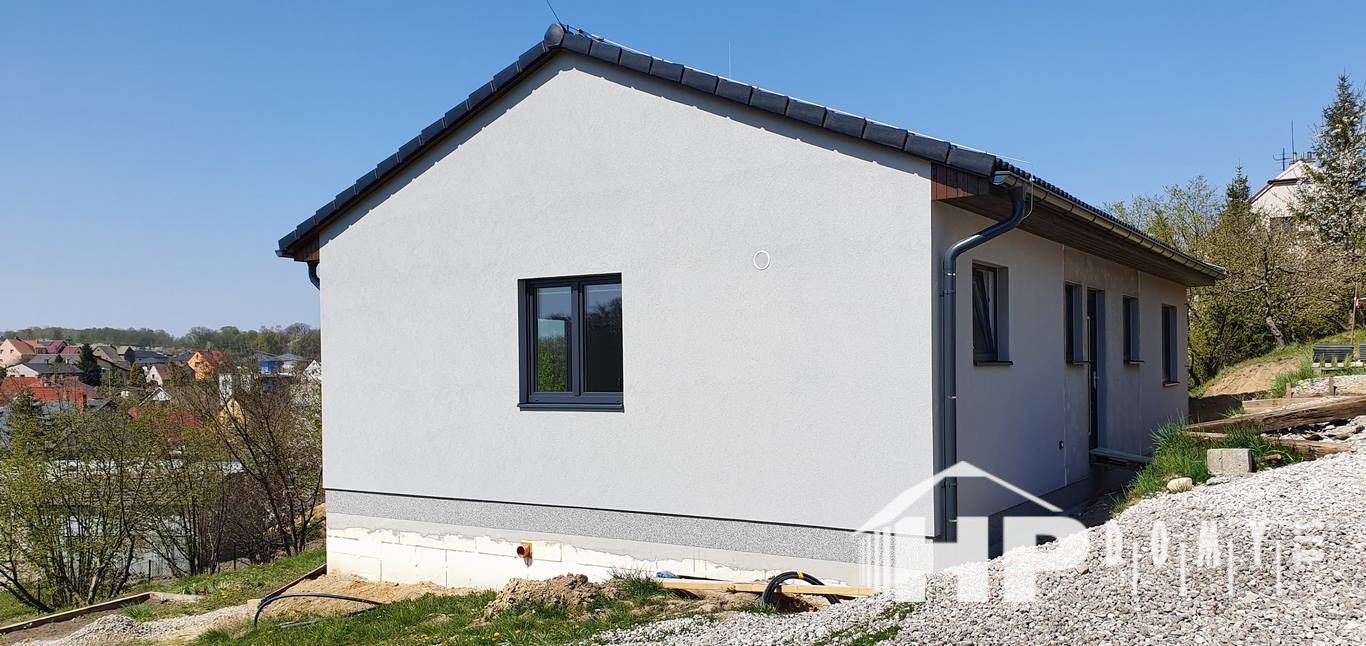 Dokončená stavba oblíbeného bungalovu HP90 o dispozici 4+kk v obci Markvartovice.