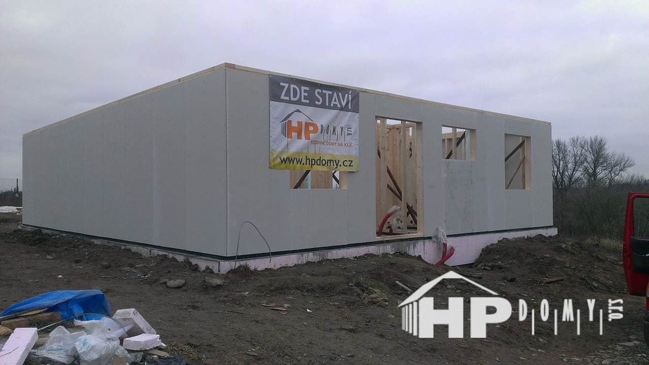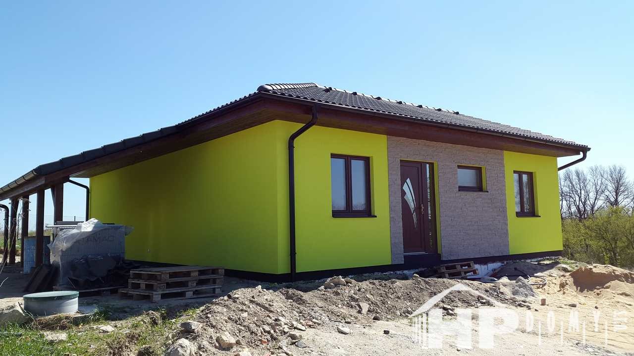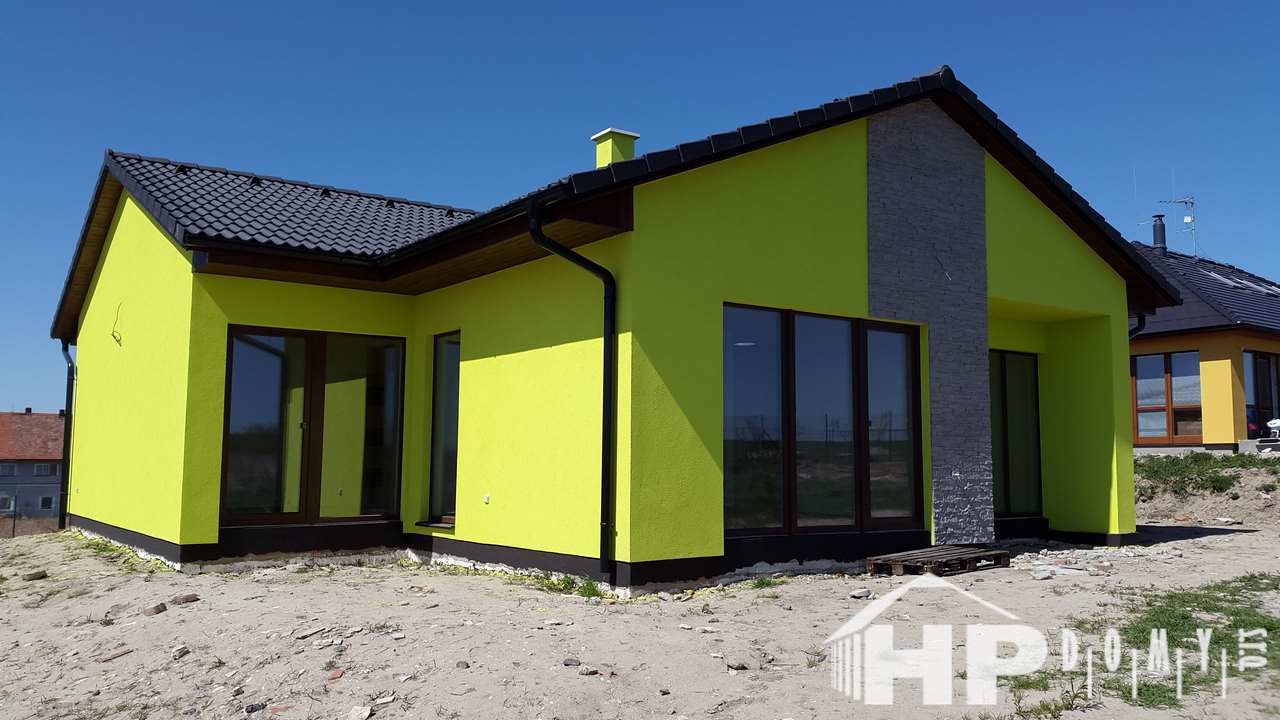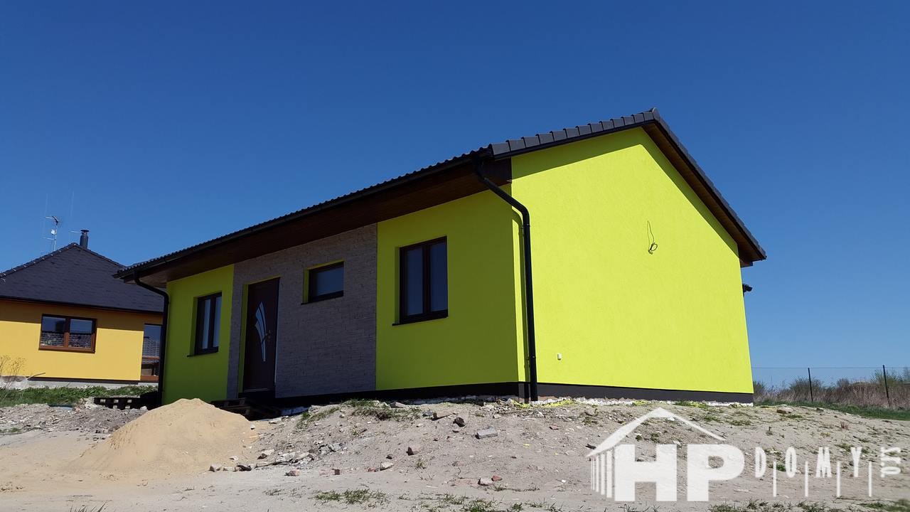 Oblíbený typový rodinný dům s garážovým stáním o dispozici 4+kk a užitné ploše 97 m2 v Milovicích. Dům je dispozičně upraven dle požadavků klientů, jsou zde dvě samostatné koupelny, technická místnost uprostřed domu je oddělena zašupovacími dveřmi. Dům má prostorný obývací pokoj s výměrou přes 28 m2, přičemž kuchyň se spíží je od obývacího pokoje vkusně oddělena. Dále jsou v domě tři samostatné ložnice. Velké množství francouzských oken zajišťuje příjemné oslunění domu s dostatečnými solárními zisky. V celém domě je osazeno teplovodní podlahové vytápění, doplněné o krbová kamna k příležitostnému dotopu. Na domě budou dále dokončeny fasádní obklady s imitací štípaného kamene.