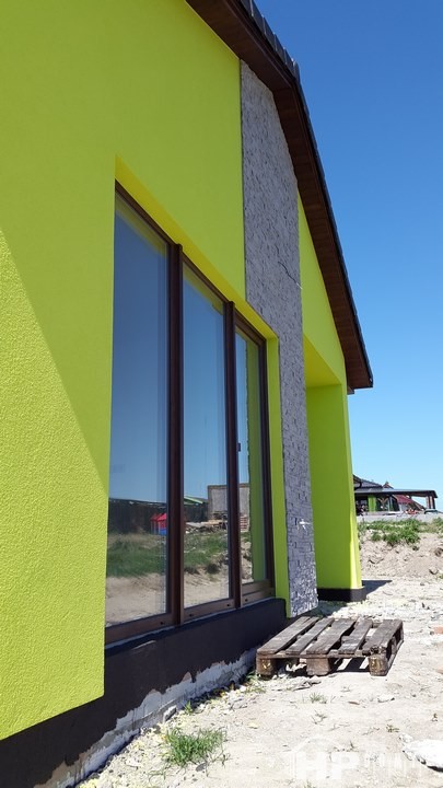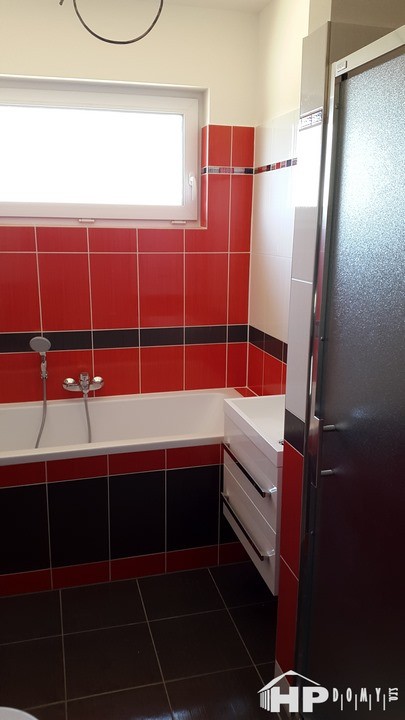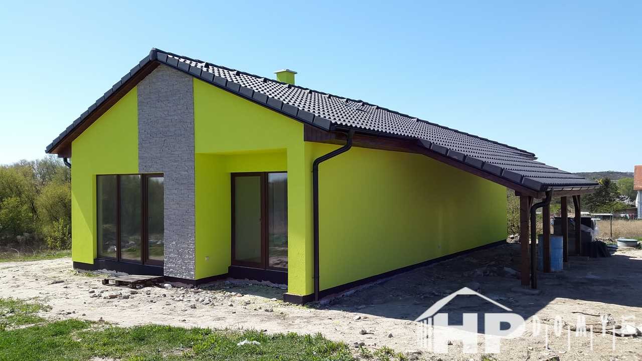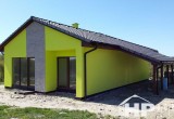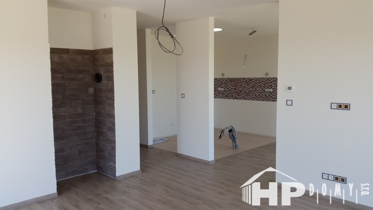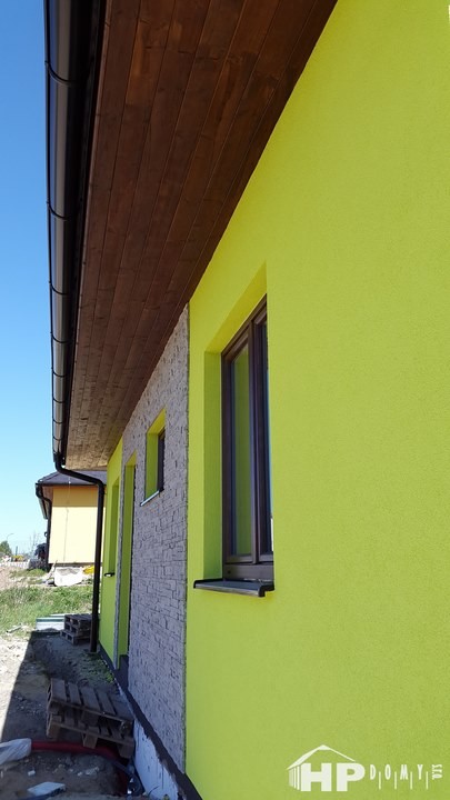 Oblíbený typový rodinný dům s garážovým stáním o dispozici 4+kk a užitné ploše 97 m2 v Milovicích. Dům je dispozičně upraven dle požadavků klientů, jsou zde dvě samostatné koupelny, technická místnost uprostřed domu je oddělena zašupovacími dveřmi. Dům má prostorný obývací pokoj s výměrou přes 28 m2, přičemž kuchyň se spíží je od obývacího pokoje vkusně oddělena. Dále jsou v domě tři samostatné ložnice. Velké množství francouzských oken zajišťuje příjemné oslunění domu s dostatečnými solárními zisky. V celém domě je osazeno teplovodní podlahové vytápění, doplněné o krbová kamna k příležitostnému dotopu. Na domě budou dále dokončeny fasádní obklady s imitací štípaného kamene.