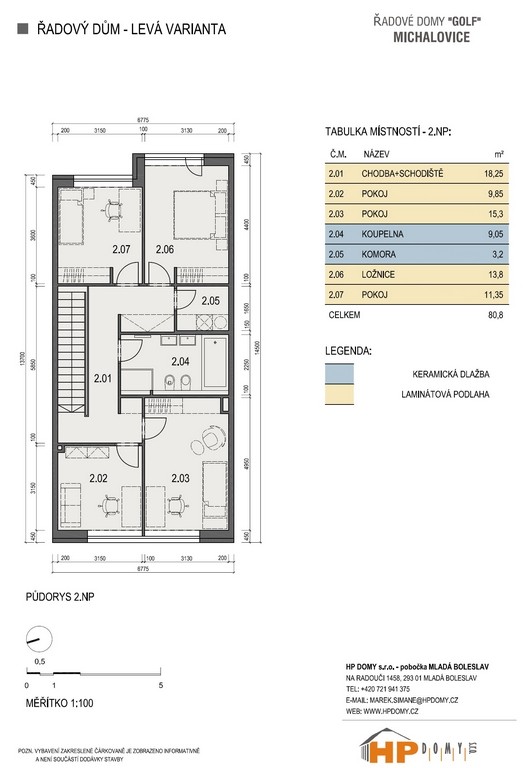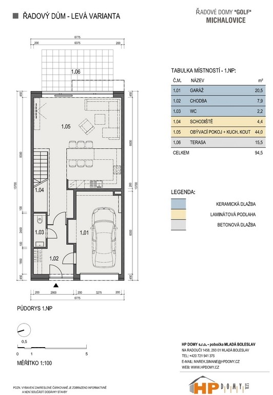 Celý projekt 10 řadových domů se nachází na pozemku s jihovýchodní orientací zahrad a je prostorově uspořádán do jednoho bloku. Všechny domy mají přístup ze zahrad do přilehlého parku. Přístup k domům bude zajištěn po stávající asfaltové komunikaci. Samozřejmostí je napojení domů na veškeré inženýrské sítě – voda, kanalizace a elektřina. Všechny domy budou dvoupodlažní s velmi příjemně a na uspořádání komfortně řešenou dispozicí 5+kk a do parteru umístěnou garáží s technickým koutem a se vstupem do obytné části. Další možnost parkování je před garáží. Celková užitná plocha je u všech deseti domů shodná – 156 m2. Užitná plocha je dále rozšířena o terasu s výměrou 15,5 m2.