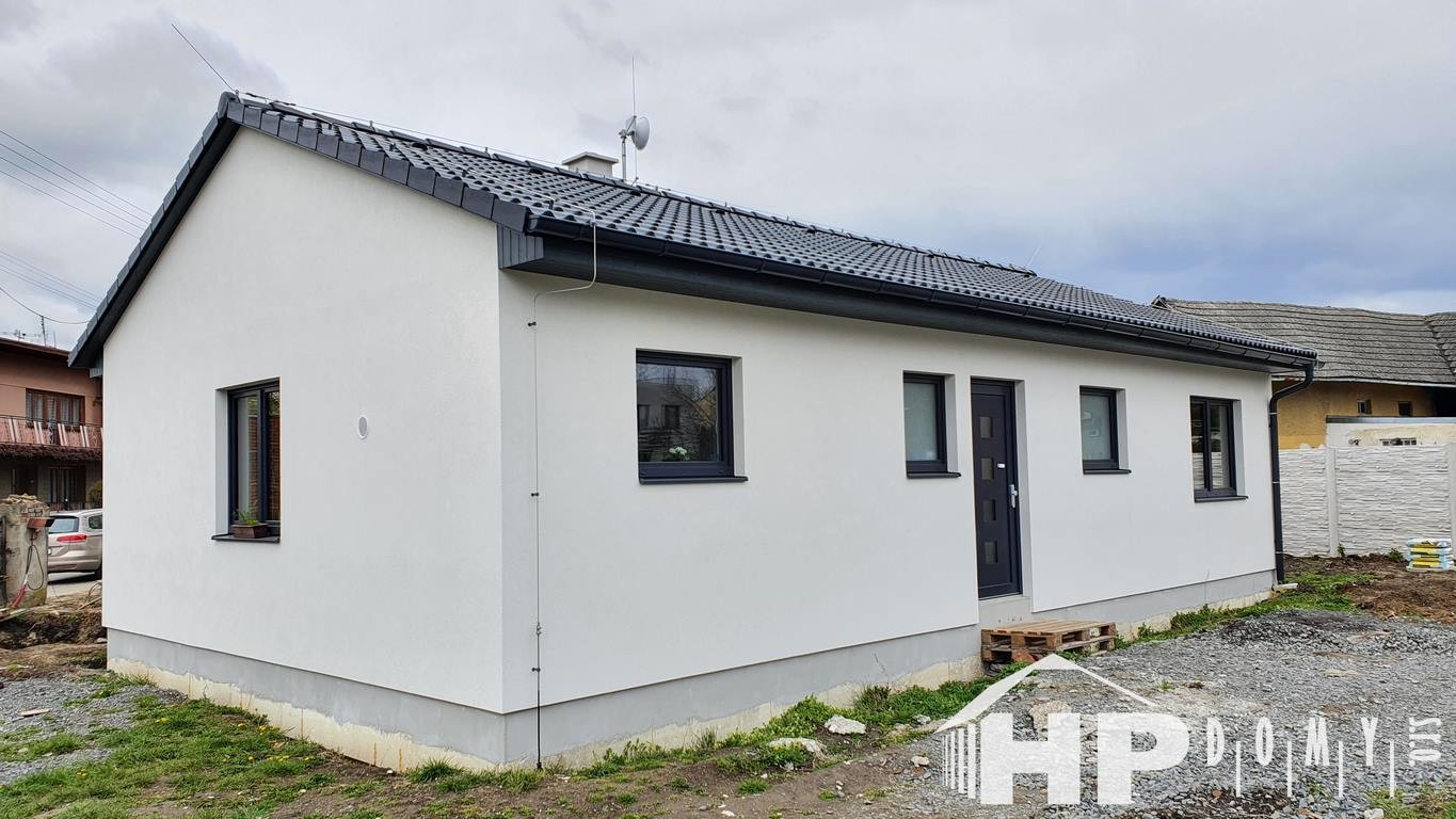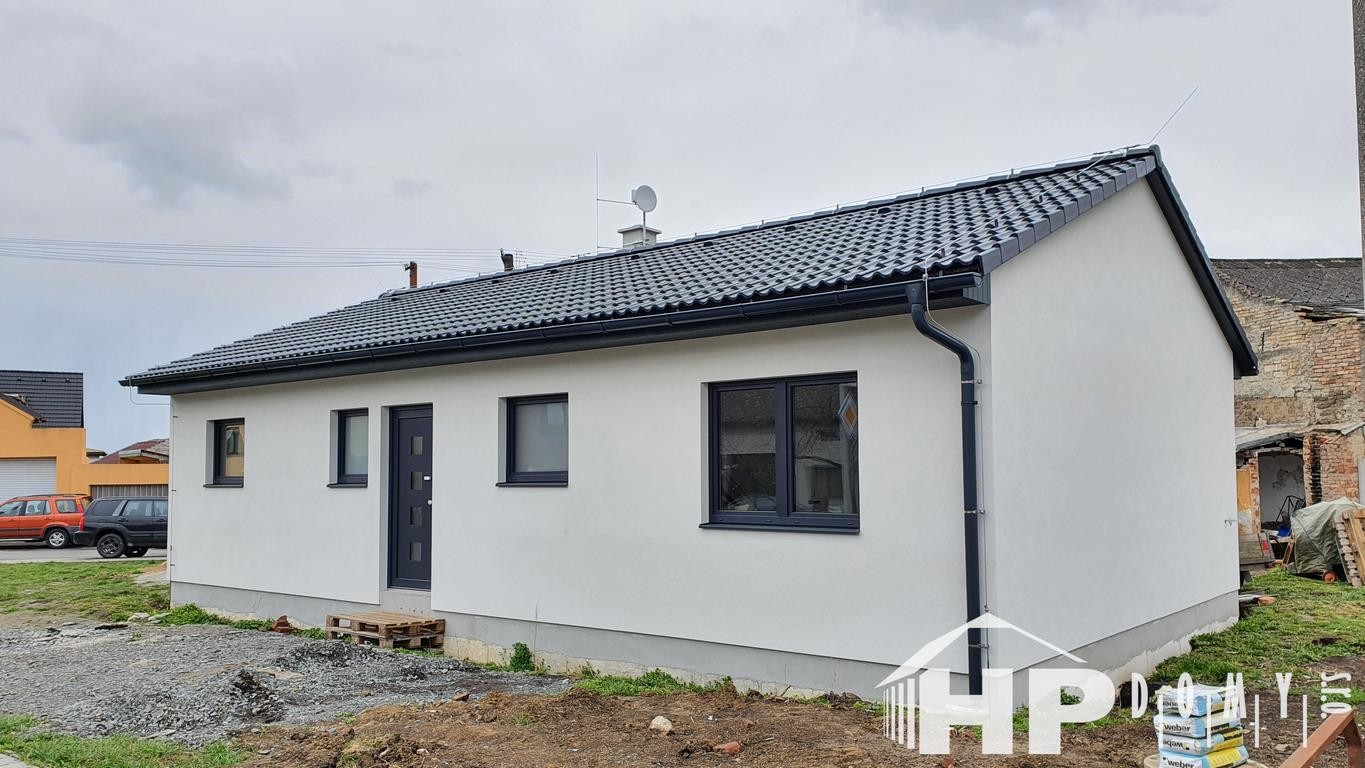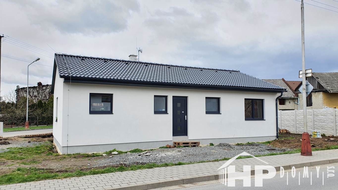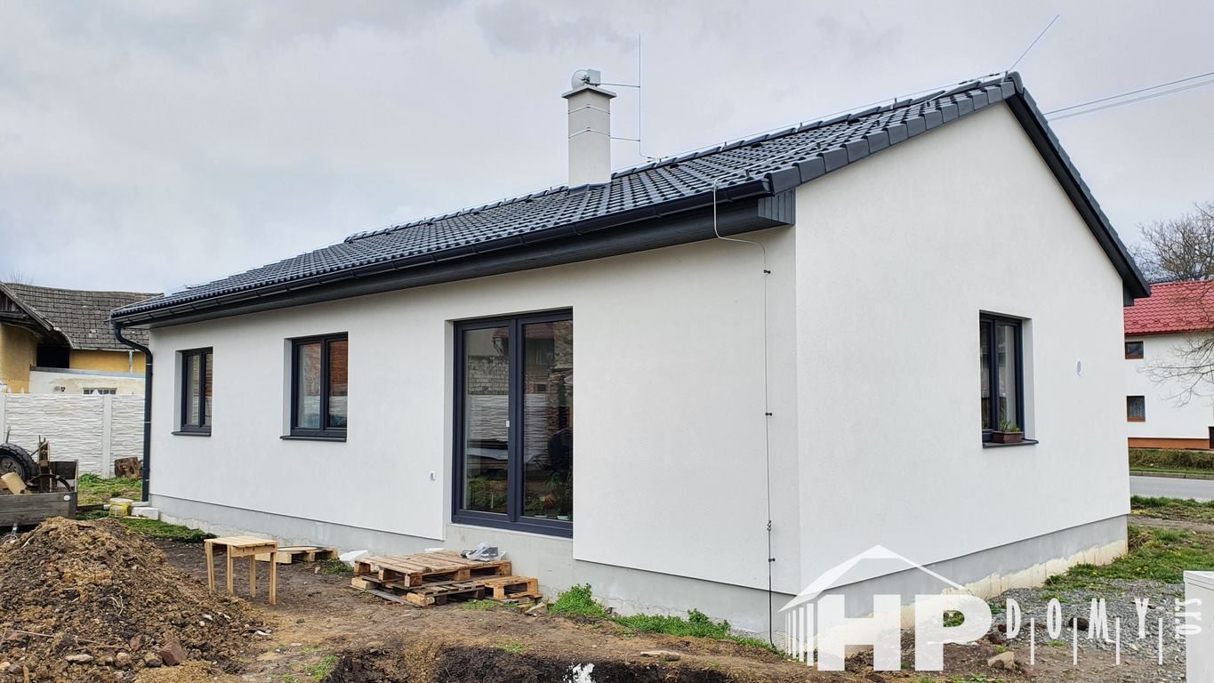 Dokončená stavba oblíbeného bungalovu HP90 o dispozici 4+kk a rozloze 90 metrů čtverečních v Němčicích.