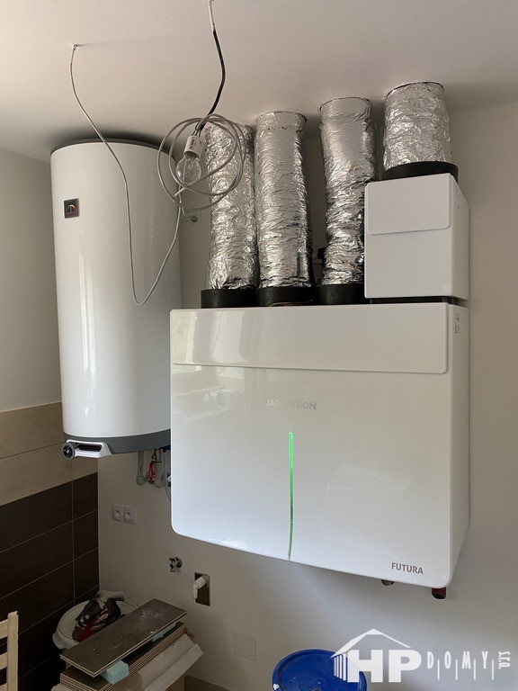 Dokončená realizace našeho oblíbeného typového bungalovu HP90 v Nové Pace. Difuzně uzavřená dřevostavba s dispozicí 4+kk a užitnou plochou 90 metrů čtverečních. Zajímavostí u této realizace je instalace centrálního větrání s rekuperací vzduchu – na přání investora byla dodána rekuperační jednotka Jablotron Futura L s funkcí cool breeze, která zajišťuje ohřátí nebo ochlazení čerstvě přiváděného vzduchu.