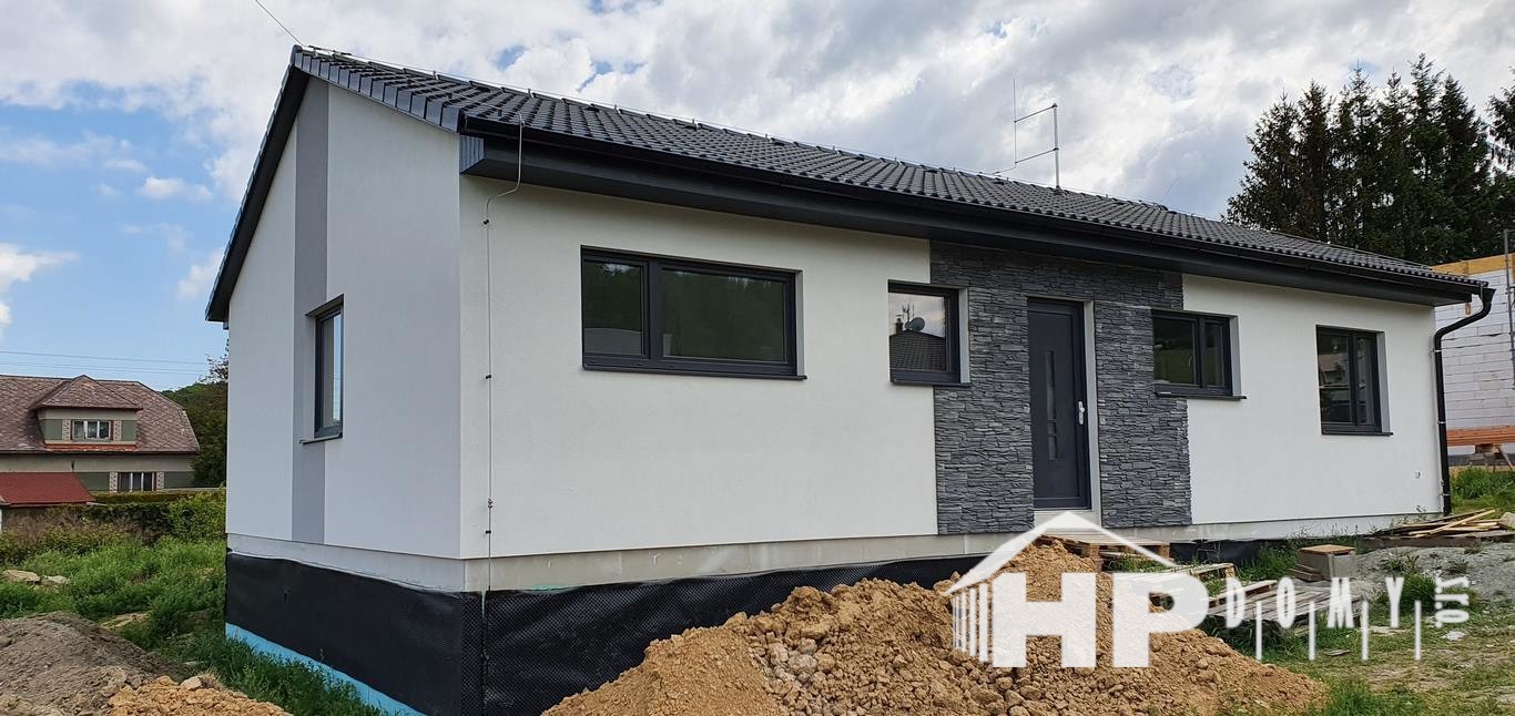 Dokončená stavba bungalovu HP110 o rozloze 110 metrů čtverečních v Novém Malíně.