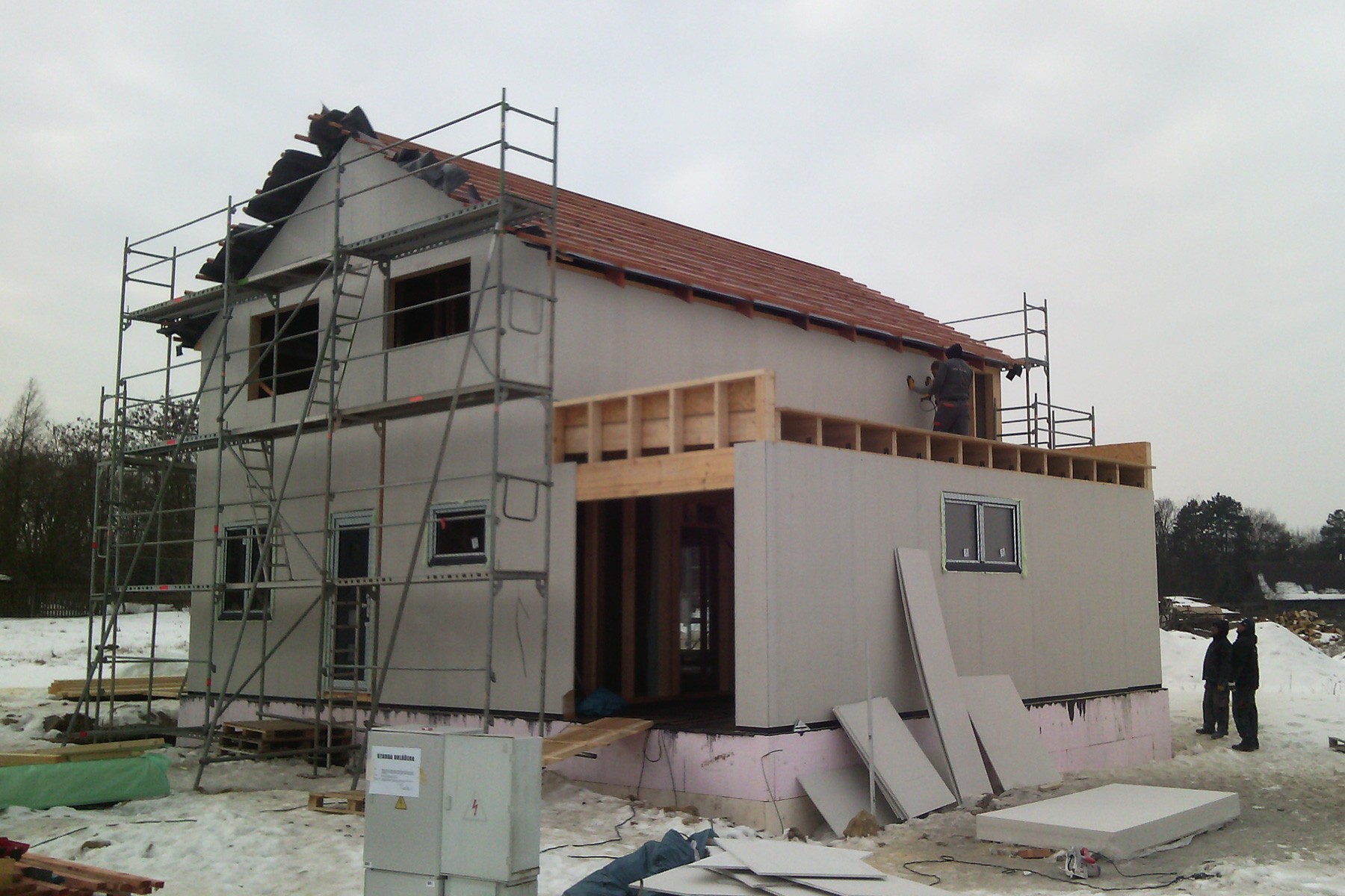 Patrová dřevostavba s dispozicí 5+kk s garáží a celkovou užitnou plochou 155 m2 v obci Písková Lhota.