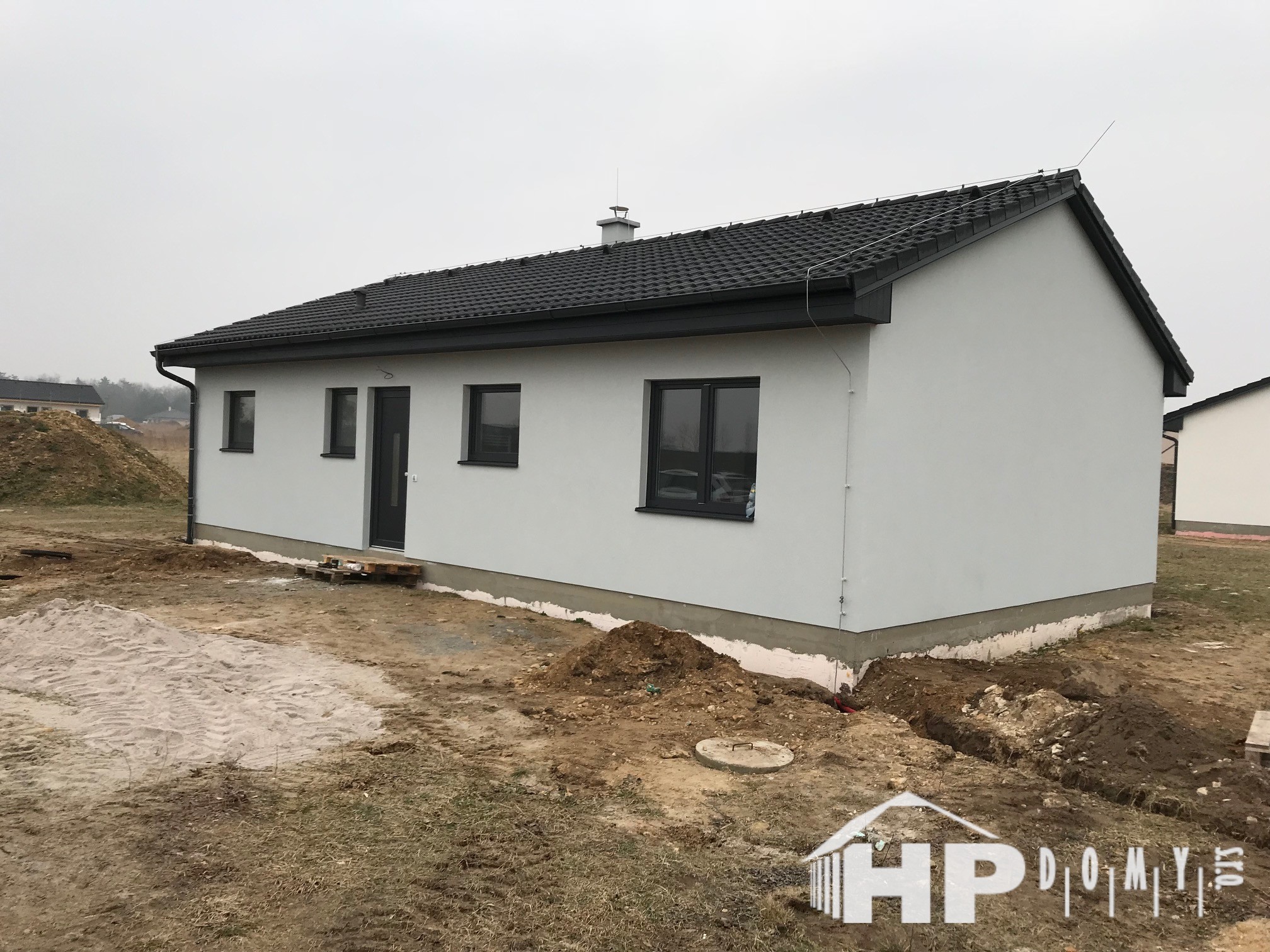 Dřevostavba s dispozicí 4+kk v Pískové Lhotě. Jde o bungalov HP 90 o výměře 90 metrů čtverečních.
