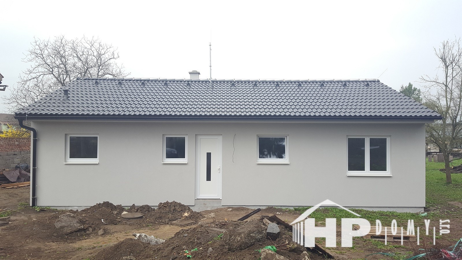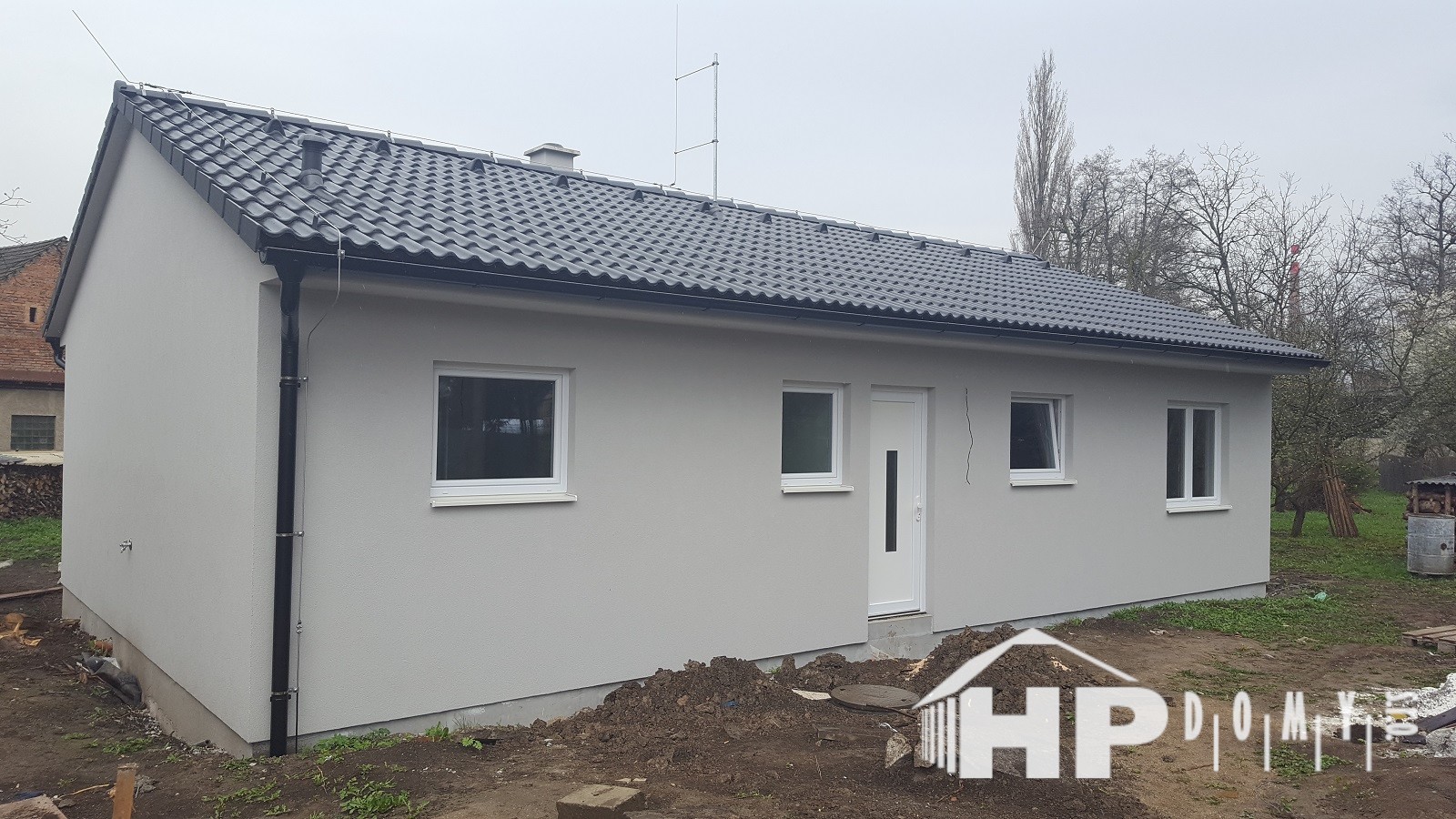 Dokončená realizace našeho oblíbeného typového bungalovu HP90 v obci Prosenice u Přerova. Difuzně uzavřená dřevostavba s dispozicí 4+kk a užitnou plochou 90 m2 je ideální pro 4člennou rodinu. Propracovaná studie rodinného domu HP90 zaručuje vysokou kvalitu provedení spolu s ekonomicky přijatelným řešením – díky tomu je dům cenově dostupný opravdu pro každého. Dům nabízí prostorný obývací pokoj s kuchyňským koutem a spíží, kde je použito podlahové vytápění; ložnici, 2 dětské pokoje, prostornou koupelnu s vanou a sprchovým koutem, komfortní zádveří a technickou místnost se samostatným WC. Velké francouzské okno v obývacím pokoji zajistí dostatečné množství světla a pohodlný vstup na zahradu.