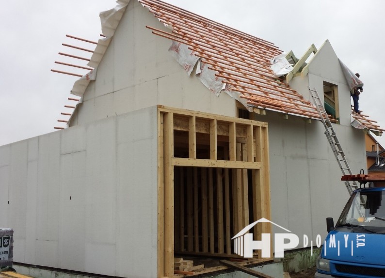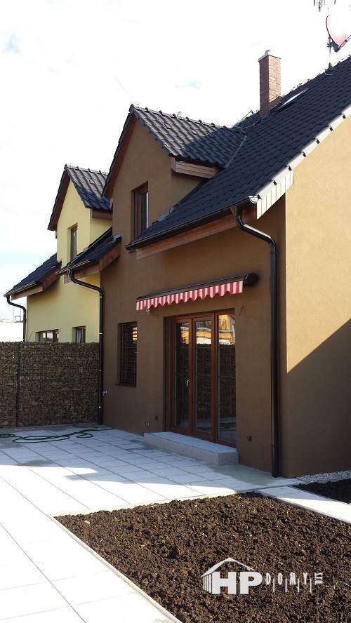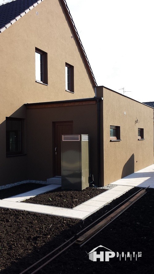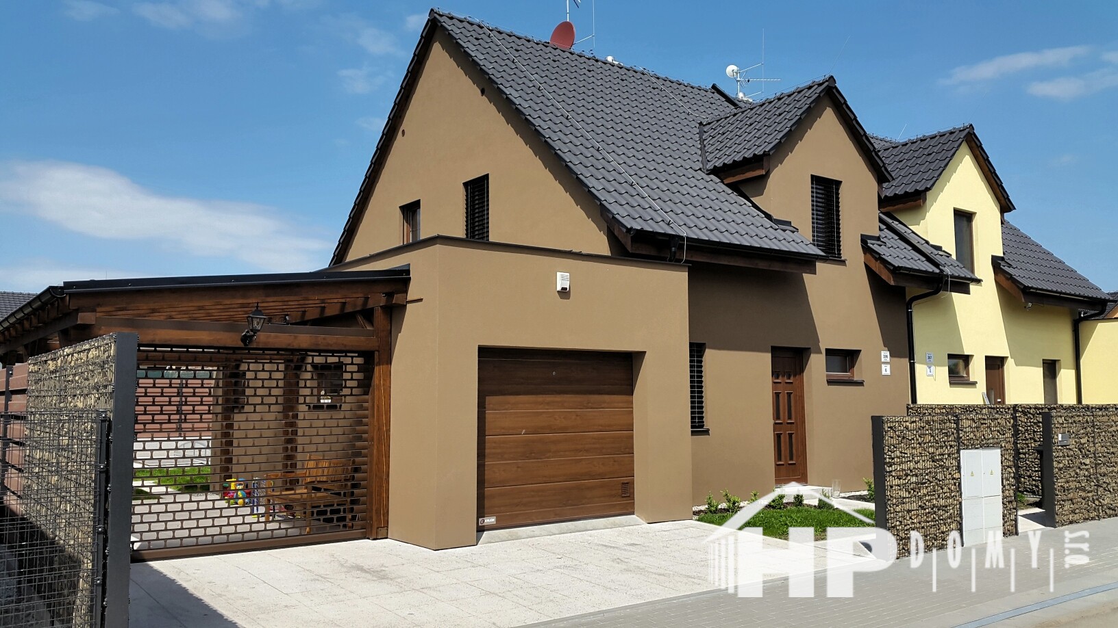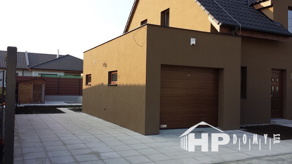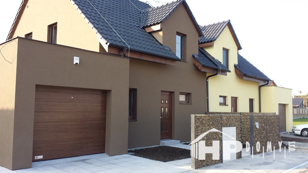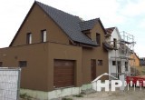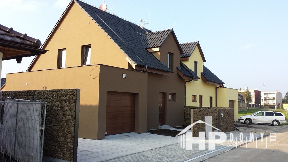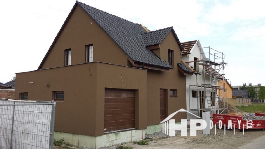 Výstavba dvojdomu 2x 5+kk s garáží v Prostějově – Krasicích. Celková užitná plocha každého z domů je 132,5 m2.