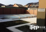 Krytý venkovní bazén potažen speciální bazénovou folií pískové barvy a vybaven solizační jednotkou, pH automatikou, protiproudem a LED osvětlením.