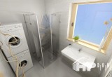 Jeden z domů je vybavena moderními technologiemi – tepelné čerpadlo s teplovodním podlahovým vytápěním, řízené větrání – rekuperace, exteriérové žaluzie, centrální vysavač, stylová krbová kamna, designové obklady koupelny a WC, vinylové podlahy, oboustranný dekor oken a vstupních dveří, navýšení tloušťky jednotlivých tepelných izolací.