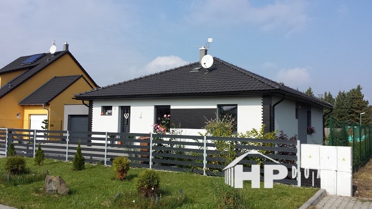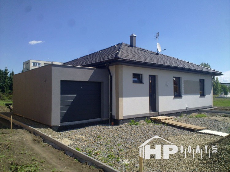 Dobře řešený bungalov s přistavěnou garáží a krytou terasou.