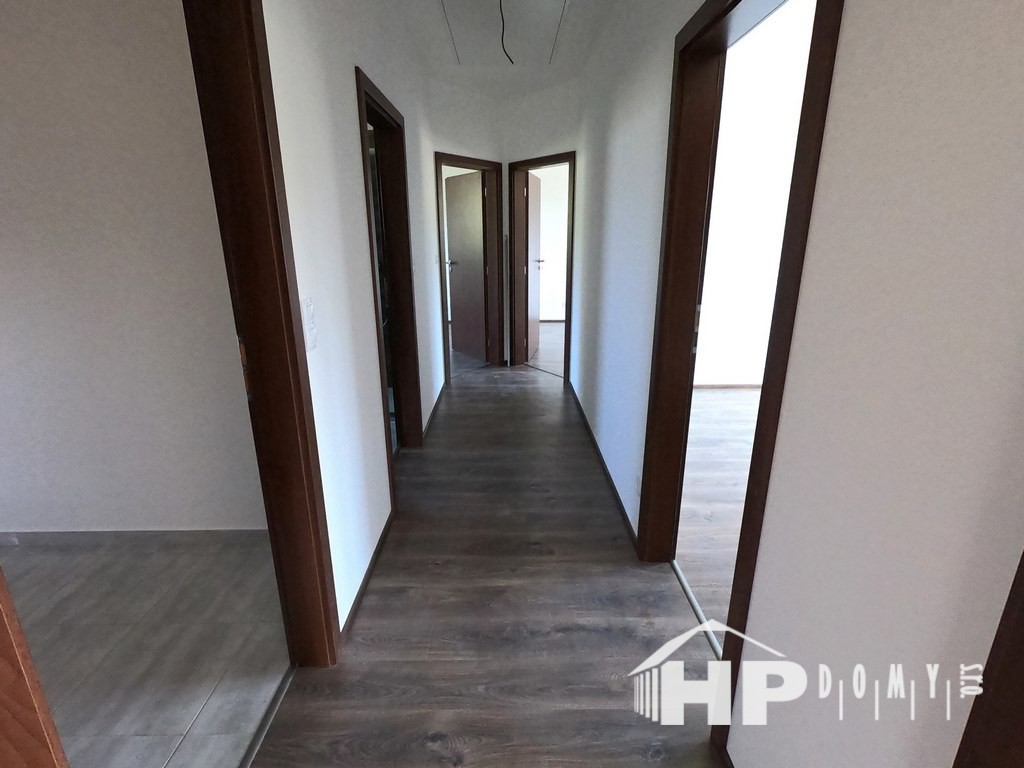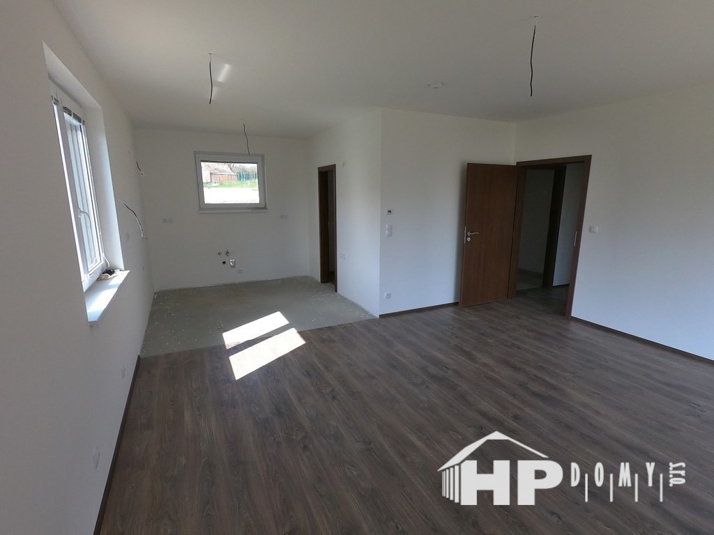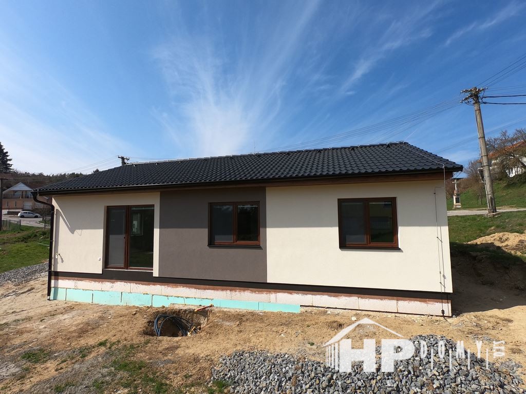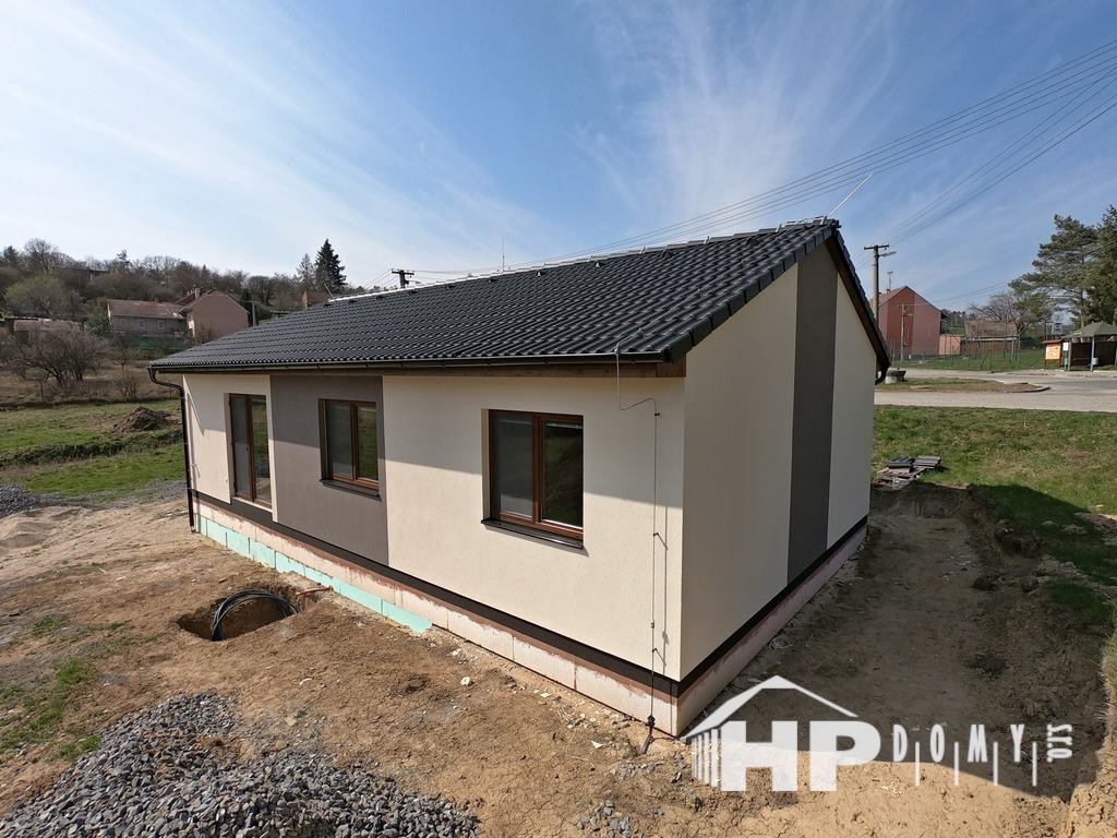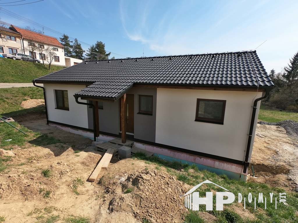 Dokončená dřevostavba bungalovu v obci Radslavice, okres Vyškov. Jde o model HP 90 o výměře 90 metrů čtverečních.