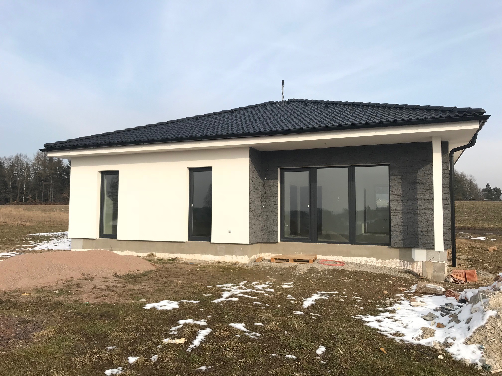 Realizace zděného bungalovu s individuální dispozicí 4+kk a užitnou plochou 97 m2 v obci Rtyně v Podkrkonoší.
