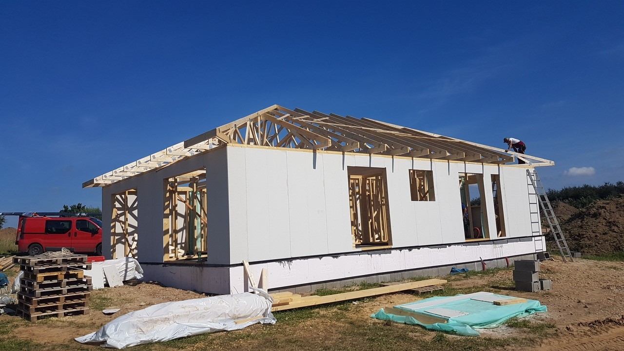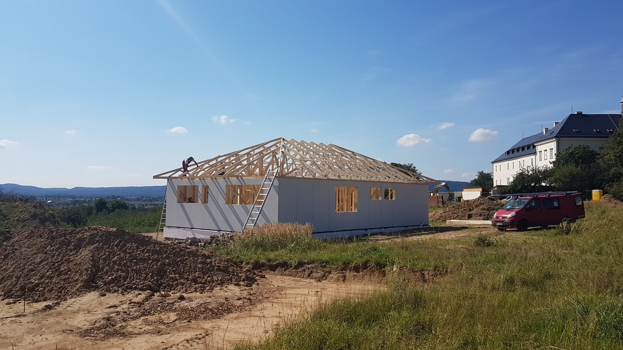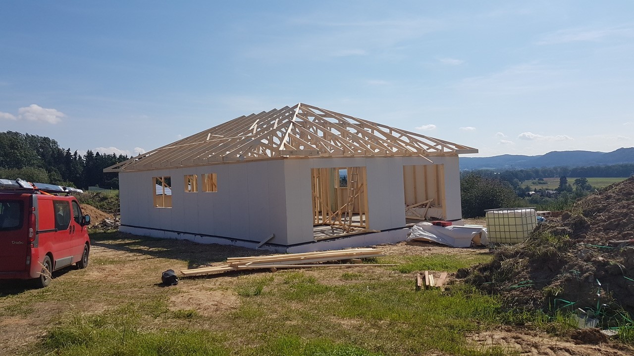 Difúzně uzavřená dřevostavba bungalovu s individuální dispozicí 5+kk a užitnou plochou 125,6 m2 v obci Svijany.