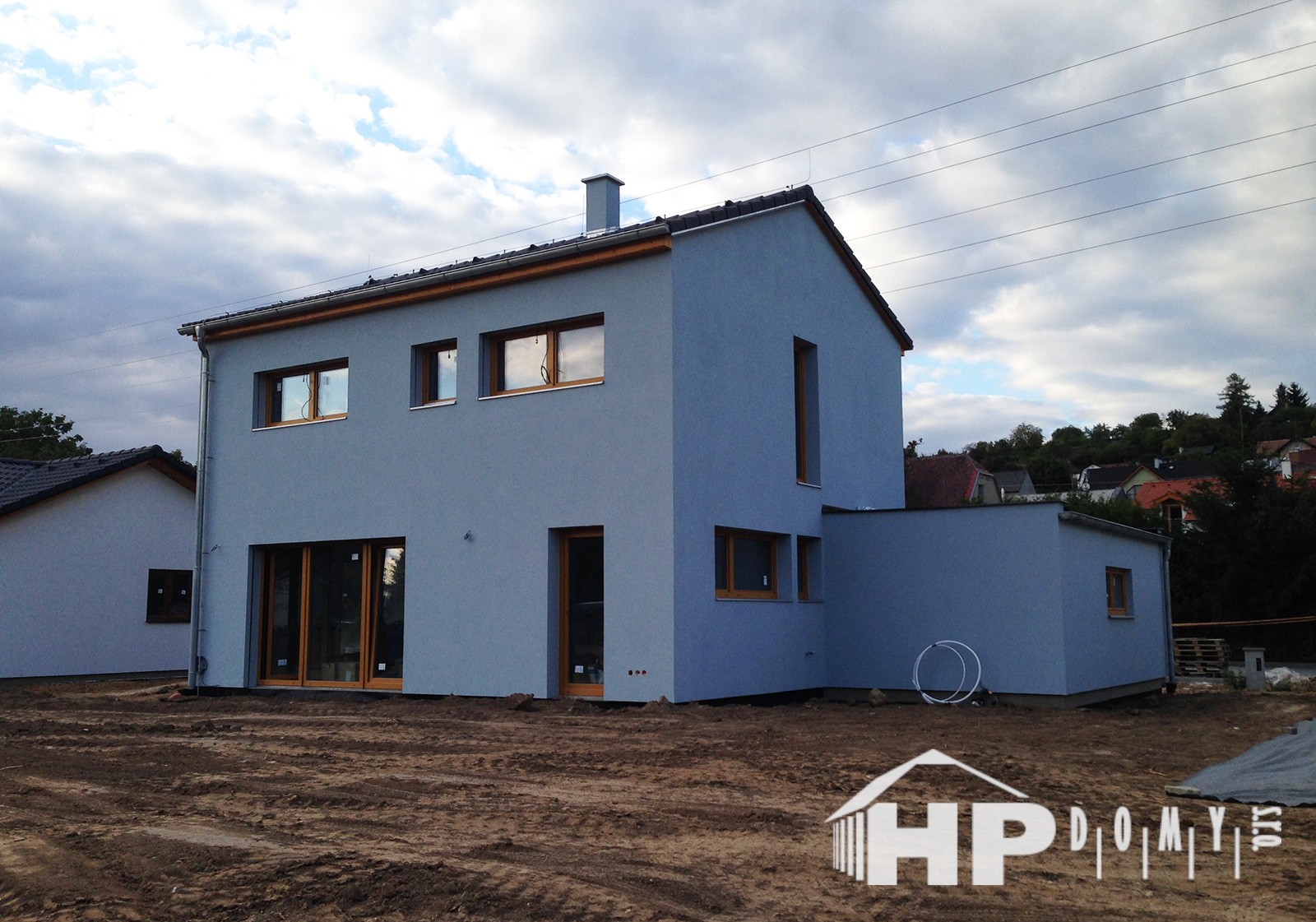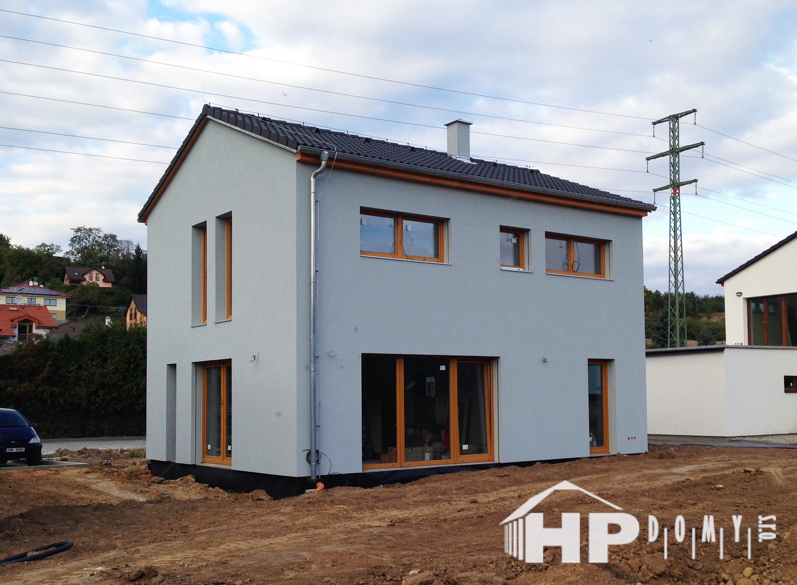 Patrový dům 5+kk s užitnou plochou 106 m2 + garáží 19 m2 v obci Tuchoměřice, Praha-západ. Jedná se o difúzně uzavřenou dřevostavbu moderního vzhledu se sedlovou střechou a s plnohodnotným 2. patrem. V 1. NP se nachází zádveří se vstupem do technické místnosti, koupelny a pracovny, dále komfortní obýací pokoj s kuchyňským koutem a spíží. 2. NP tvoří noční část domu s hlavní ložnicí se šatnou, 2 pokoji, koupelnou a samostatným WC. Dům je vybaven teplovodním vytápěním, které je napojeno na tepelné čerpadlo voda-vzduch. O kvalitní větrání se pak stará centrální systém pasivní rekuperace. Obytné místnosti domu jsou orientovány na jih – v létě zajišťují jejich stínění el. ovládané exteriérové žaluzie, v zimě pak orientace domu garantuje slušné solární zisky.