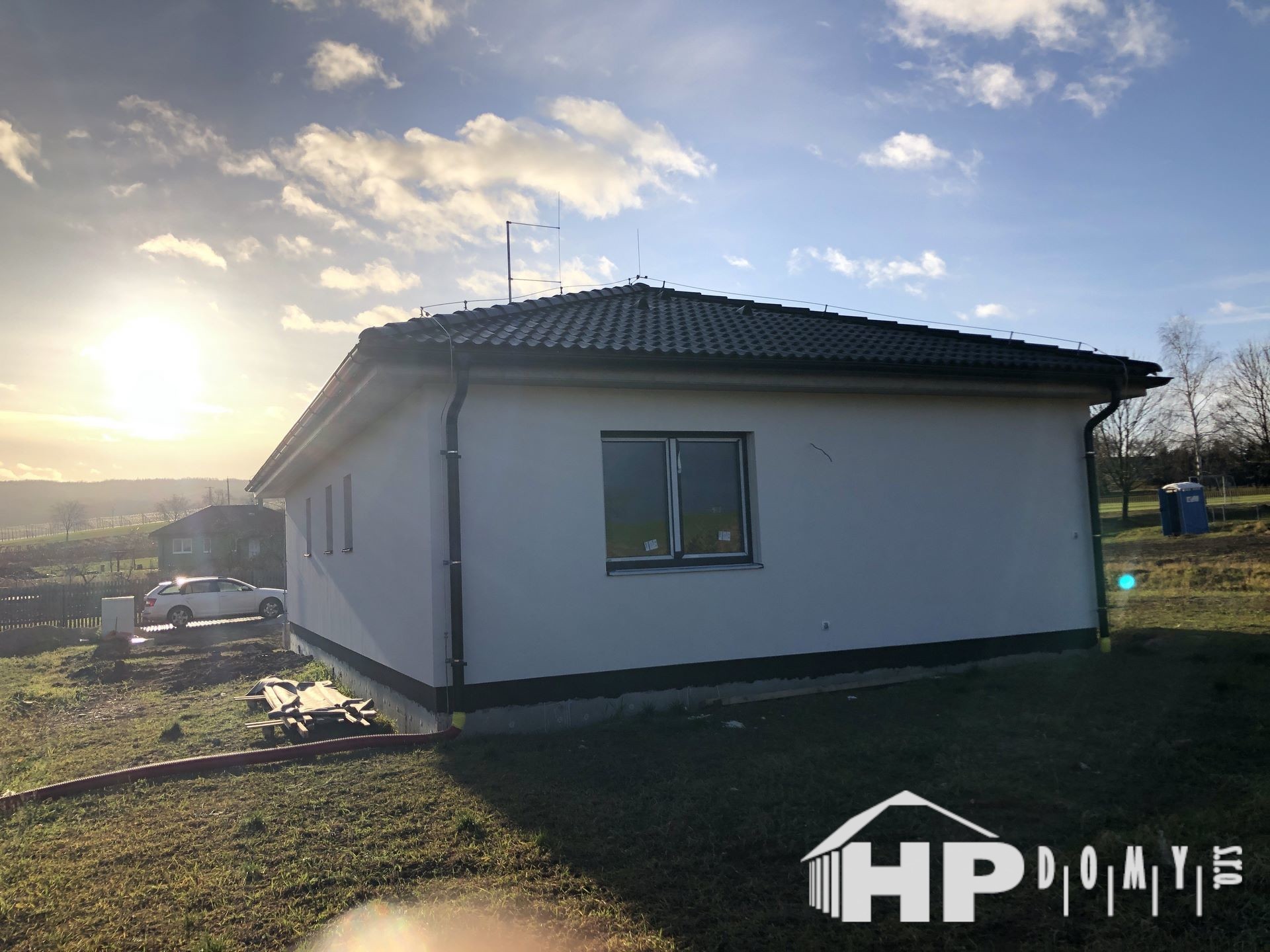 dřevostavby bungalovu 4+kk s užitnou plochou 101 m2 v obci Tuchořice.
