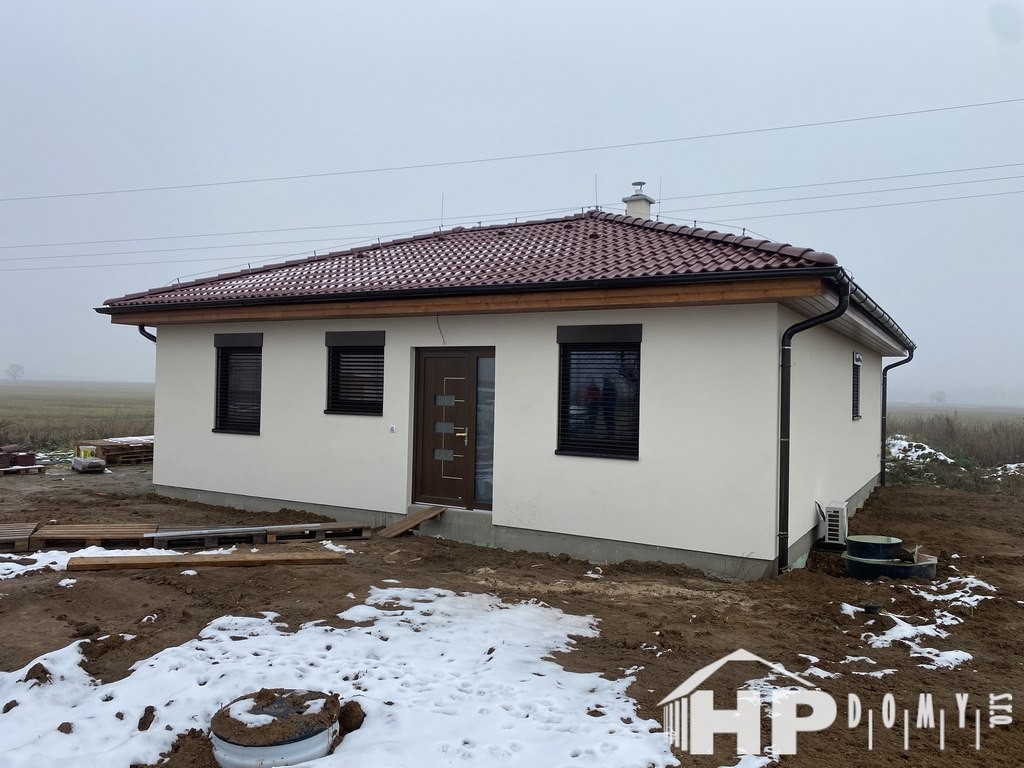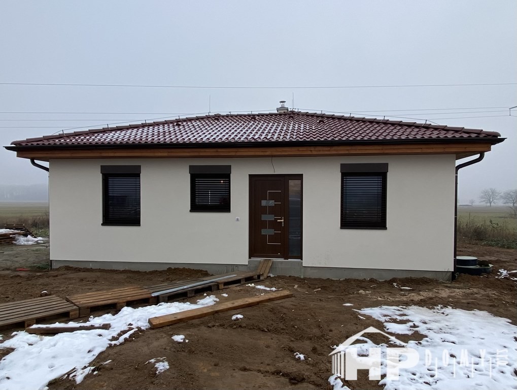 Dokončená realizace individuálně navržené dřevostavby bungalovu v obci Tůně u Nechanic o užitné ploše celkem 98 m2 s dispozicí 4+kk.