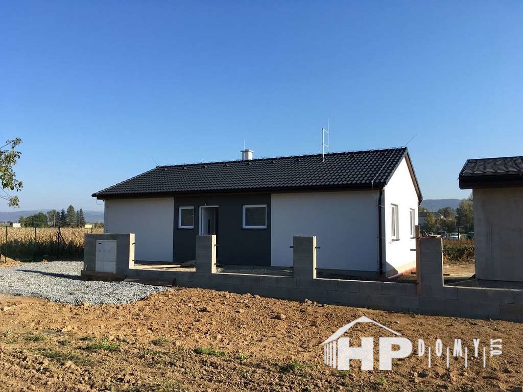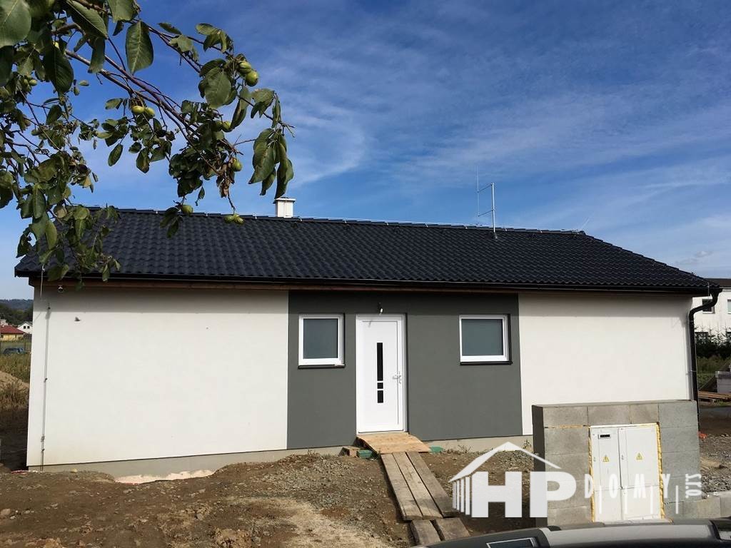 Dokončená realizace našeho oblíbeného typového bungalovu HP90. Difuzně uzavřená dřevostavba s dispozicí 4+kk a užitnou plochou 90 m2 je ideální pro 4člennou rodinu.