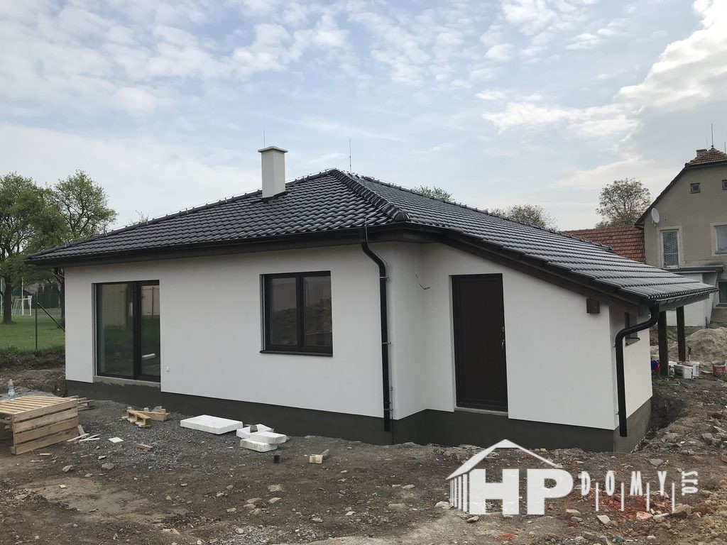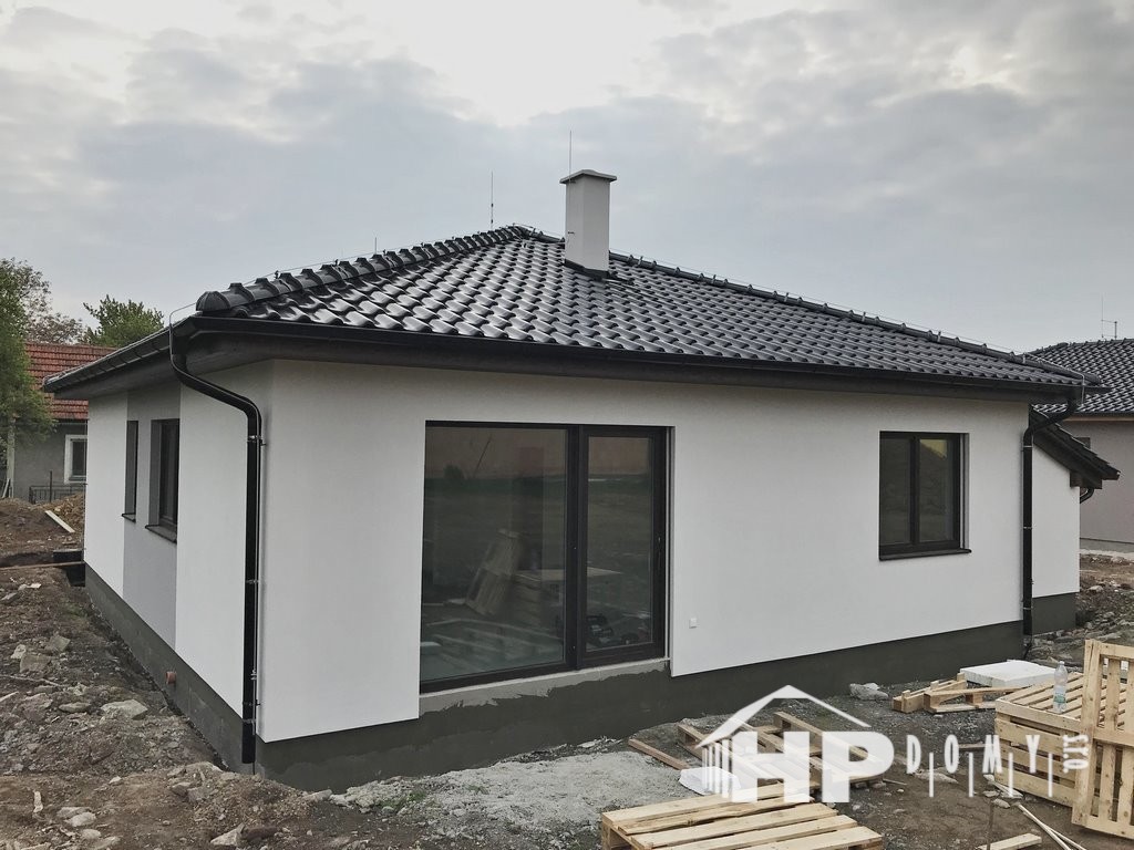 Bungalov 4+kk s venkovním skladem a krytým parkovacím stáním. Užitná plocha domu je 110 metrů čtverečních.