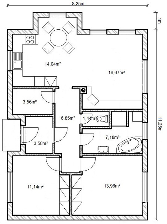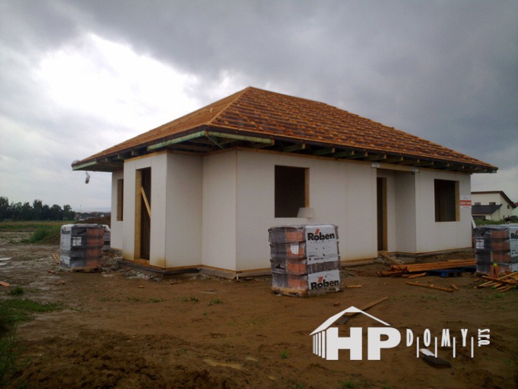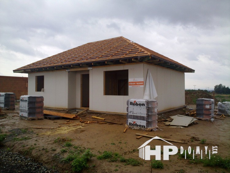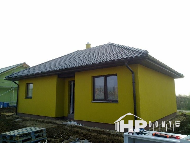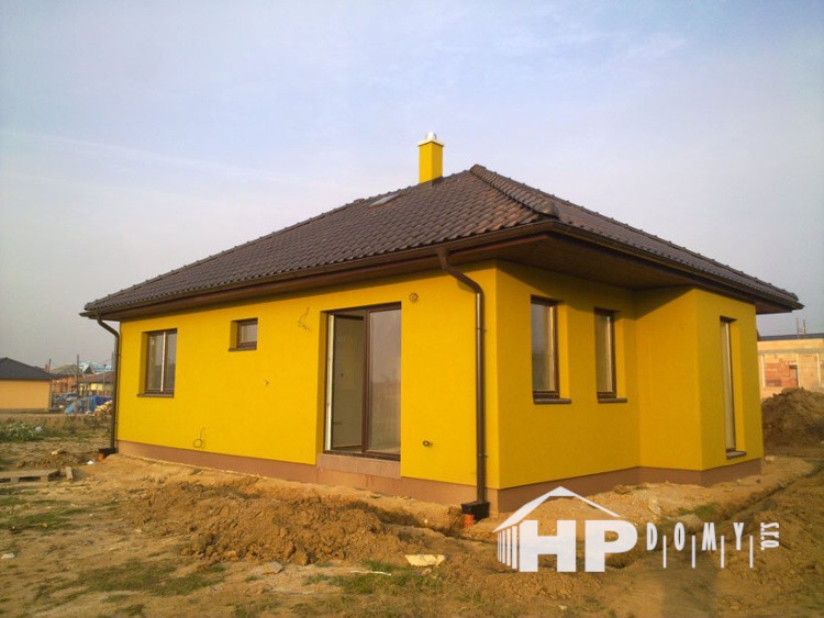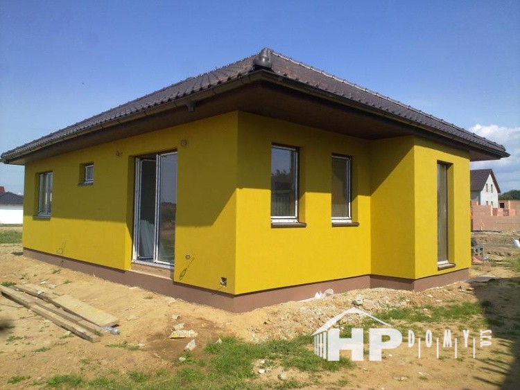 Bungalov s dostatečnou vnitřní plochou vzhledem k velikosti dispozice.