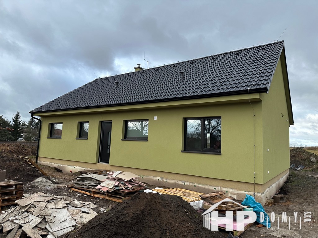 Dokončená realizace dřevostavby modelového bungalovu HP110 o dsipozici 5+kk v obci Vitiněves.